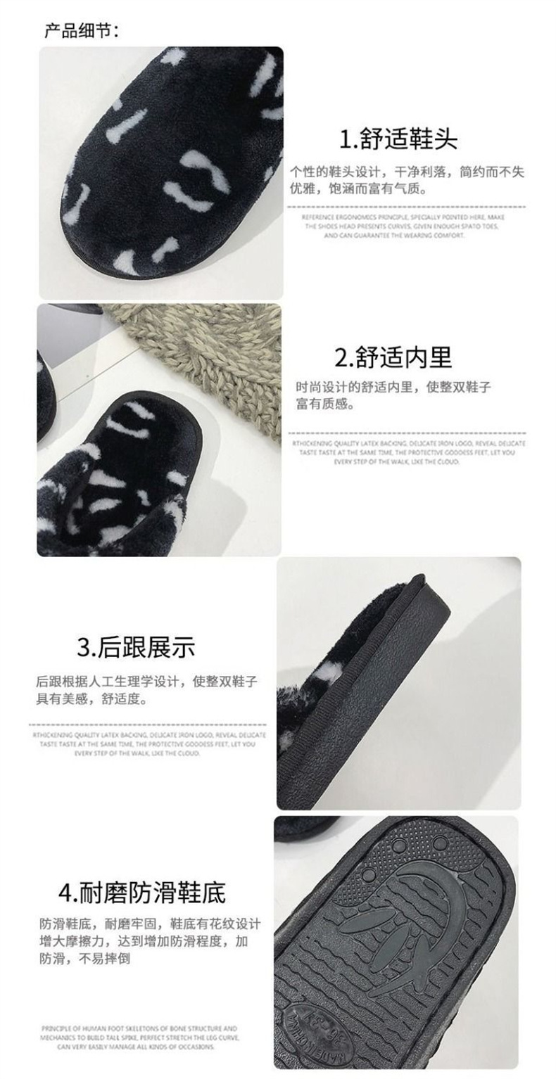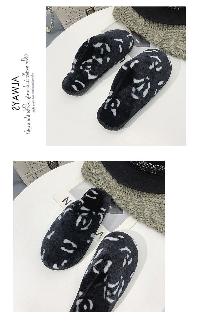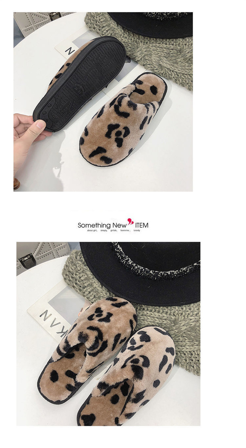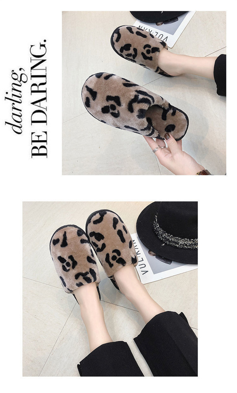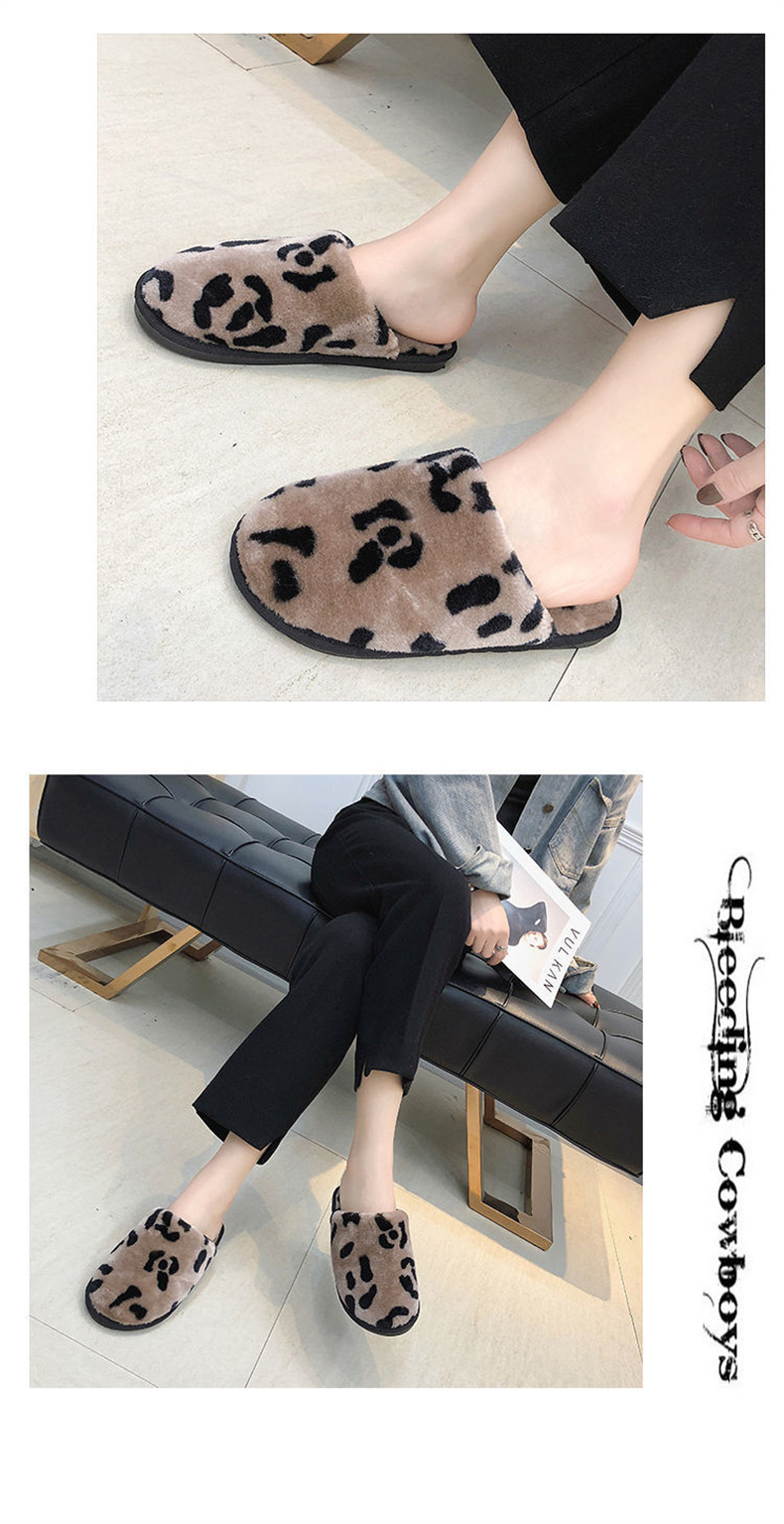 호피무늬 보온 미끄럼 방지 솜털 슬리퍼