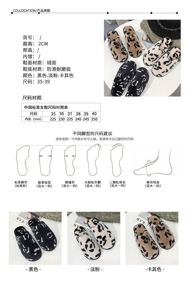 冬季棉拖女包头韩版豹纹款时尚大方潮流居家保暖防滑女士棉绒女拖