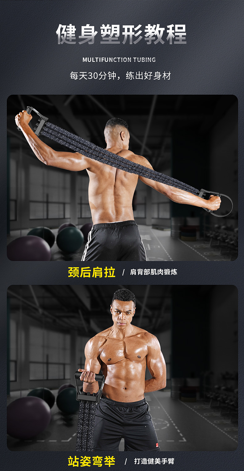 新品多功能拉力器家用扩胸器男健身器材练肩拉背神器臂力胸肌训练