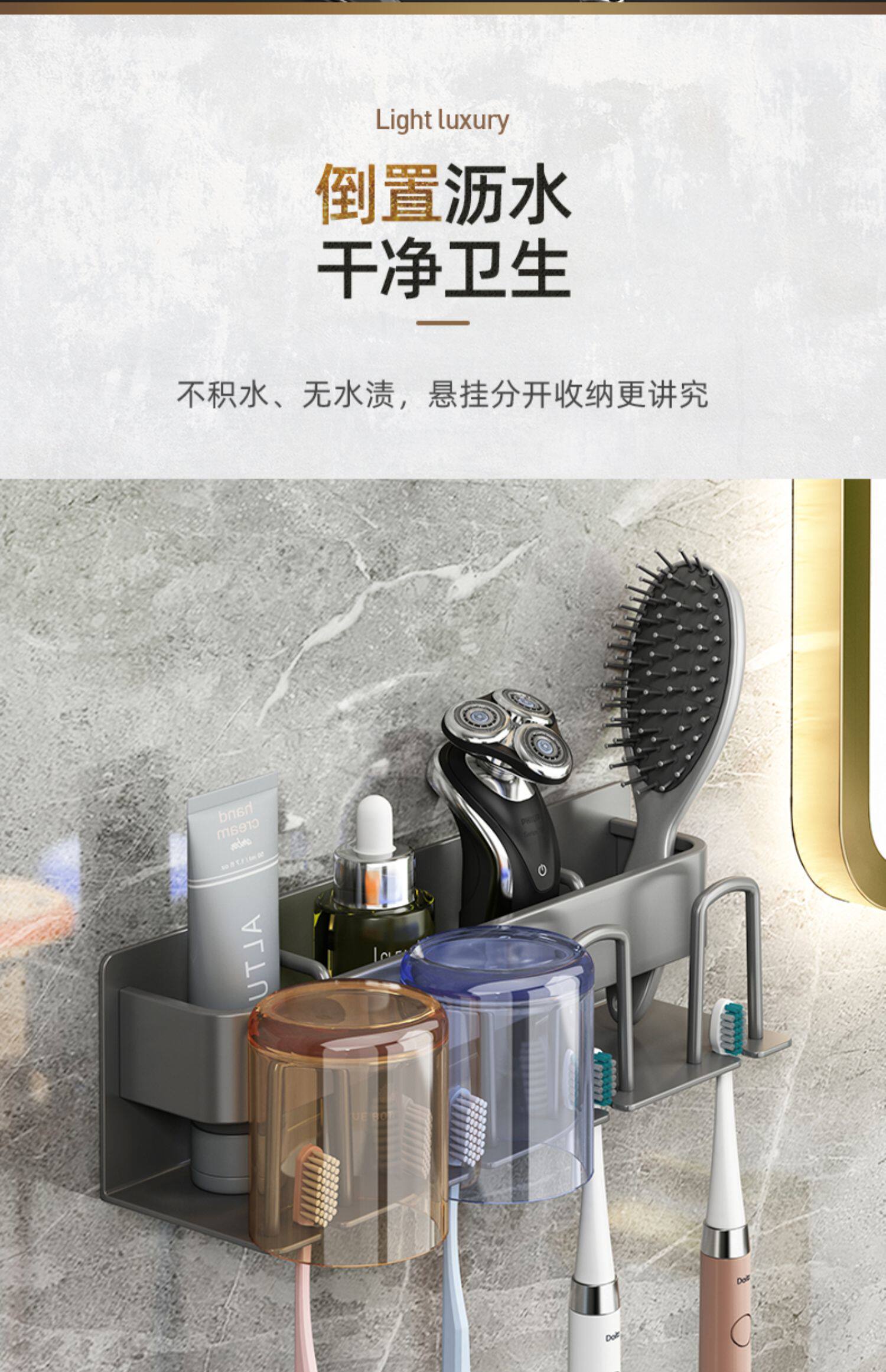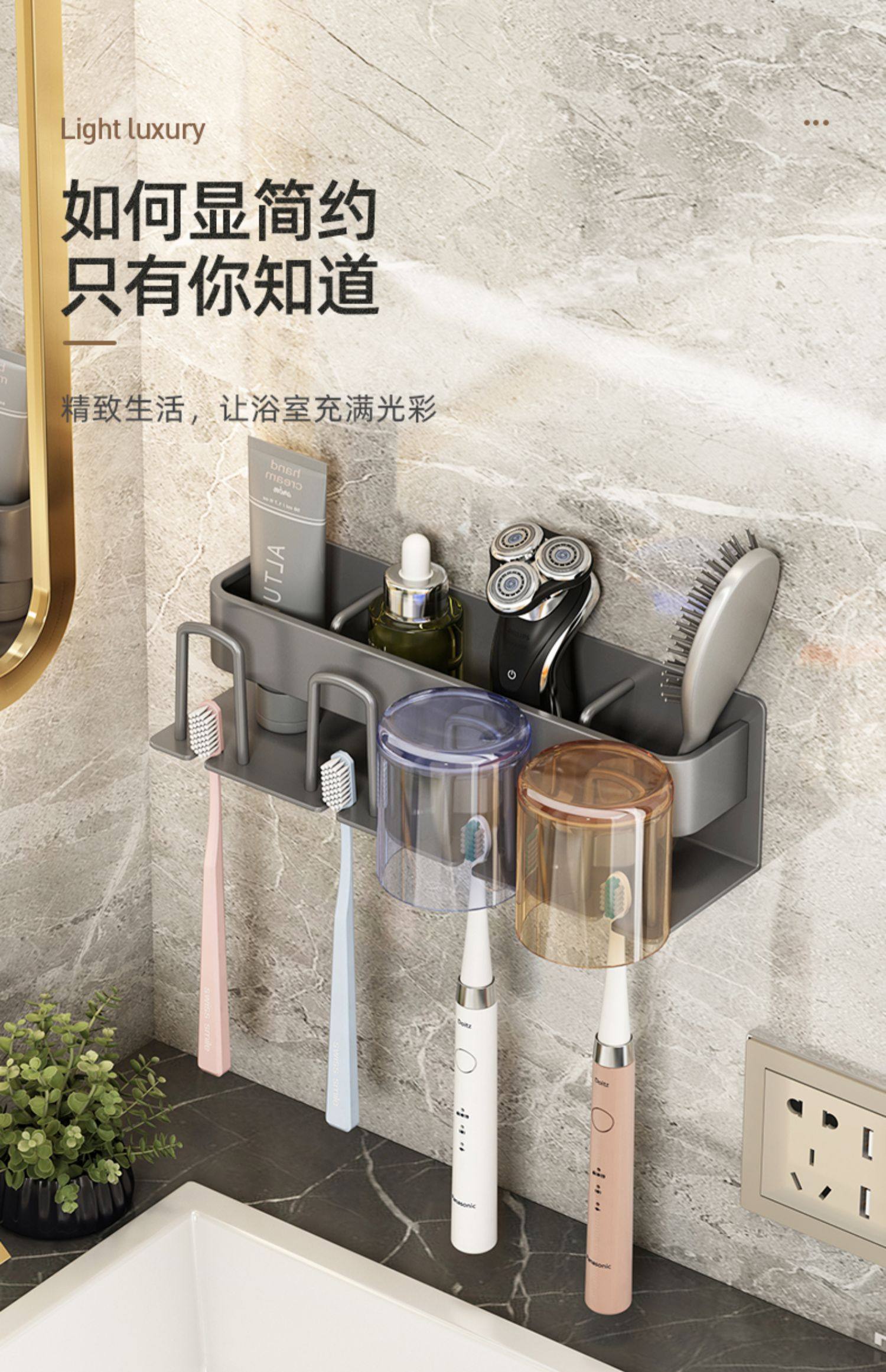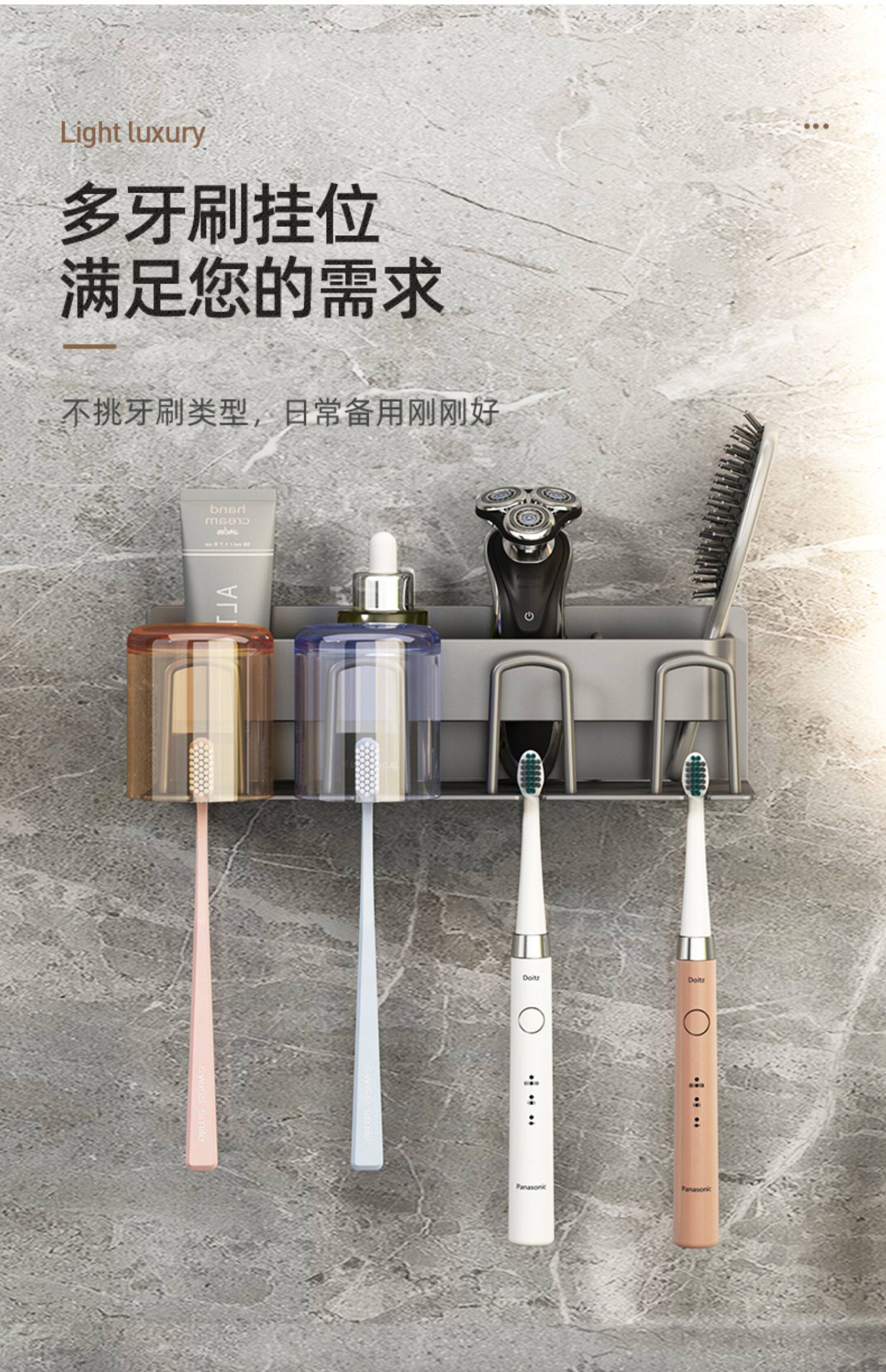 牙刷置物架免打孔枪灰卫生间漱口杯刷牙杯收纳壁挂式电动牙刷架子