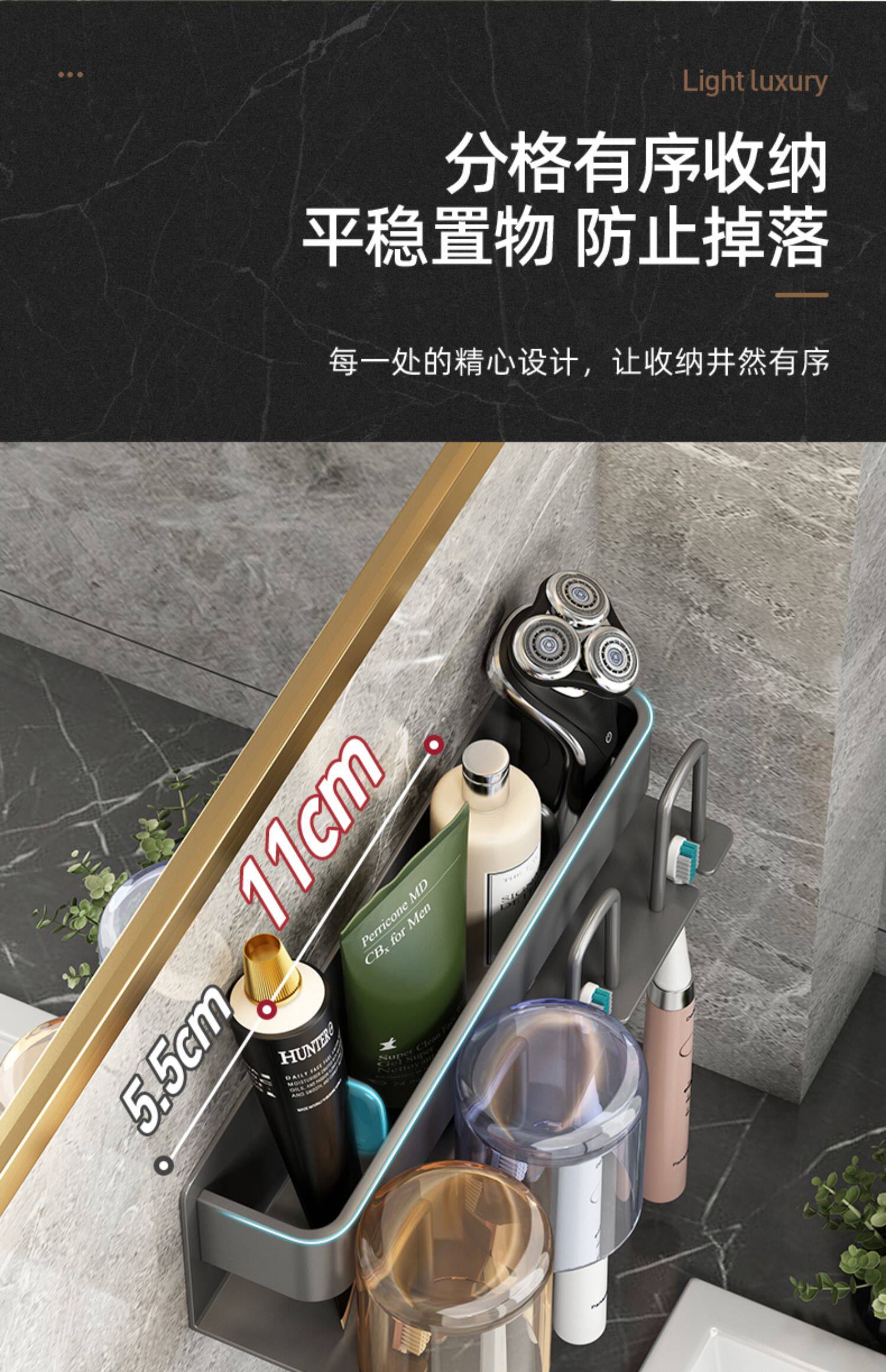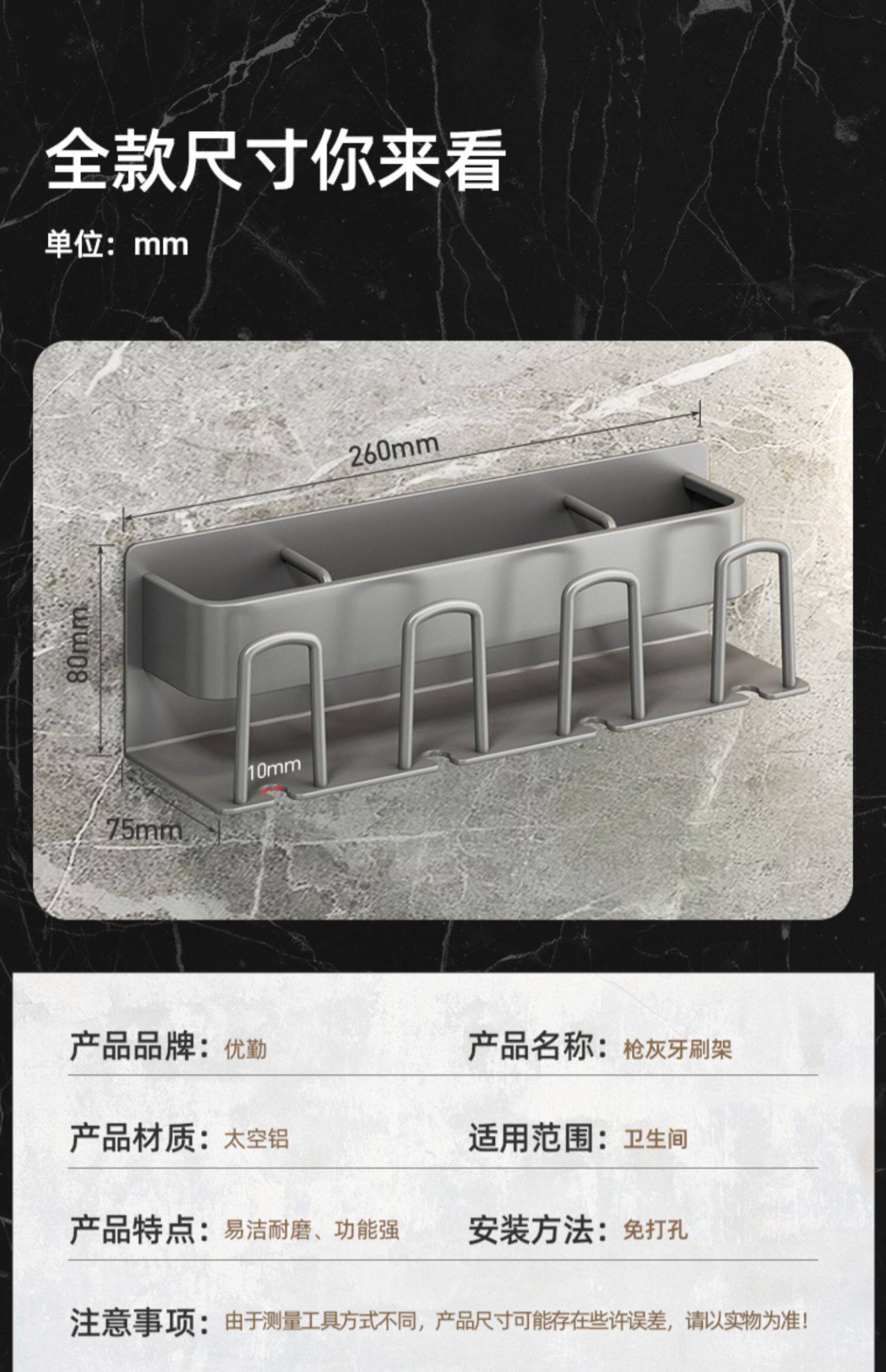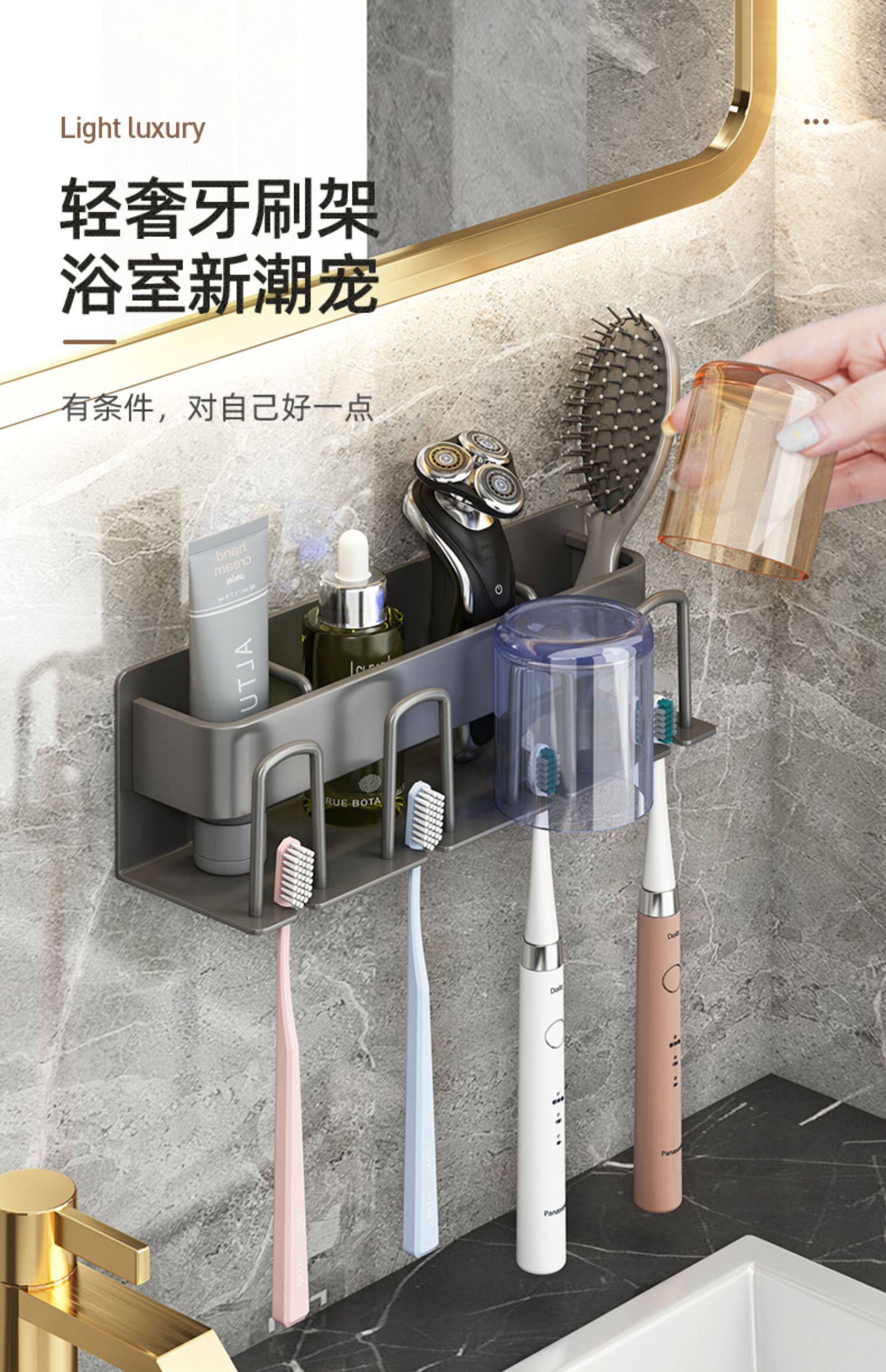 牙刷置物架免打孔枪灰卫生间漱口杯刷牙杯收纳壁挂式电动牙刷架子