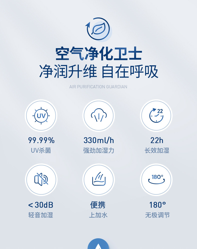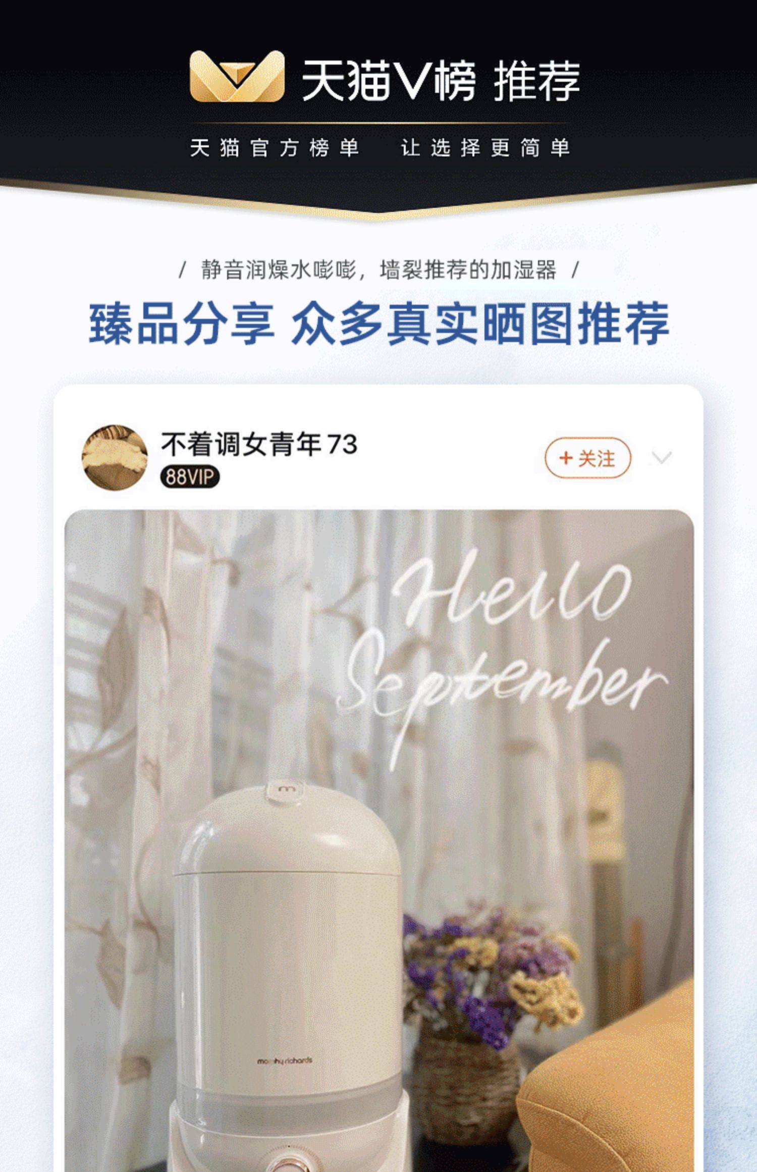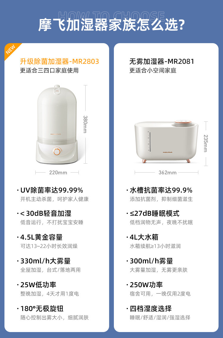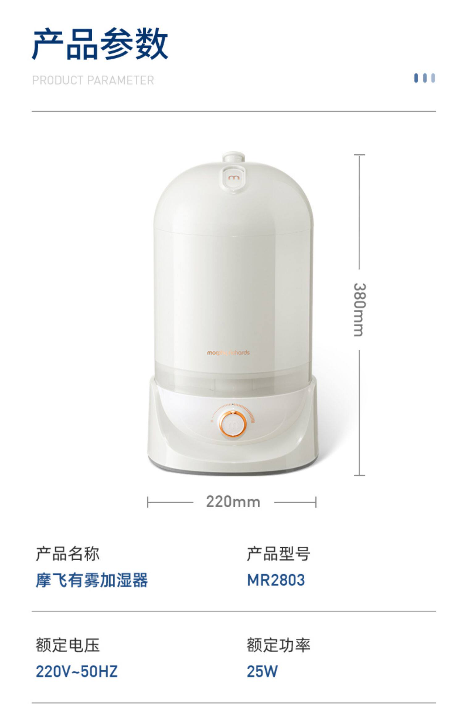 摩飞加湿器家用静音卧室小型孕妇婴儿办公桌面空气除菌喷雾大容量