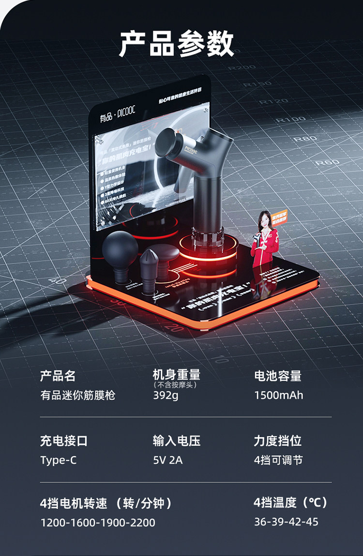 picooc有品mini筋膜枪专业级热敷肌肉颈膜枪筋膜放松按摩器按摩枪