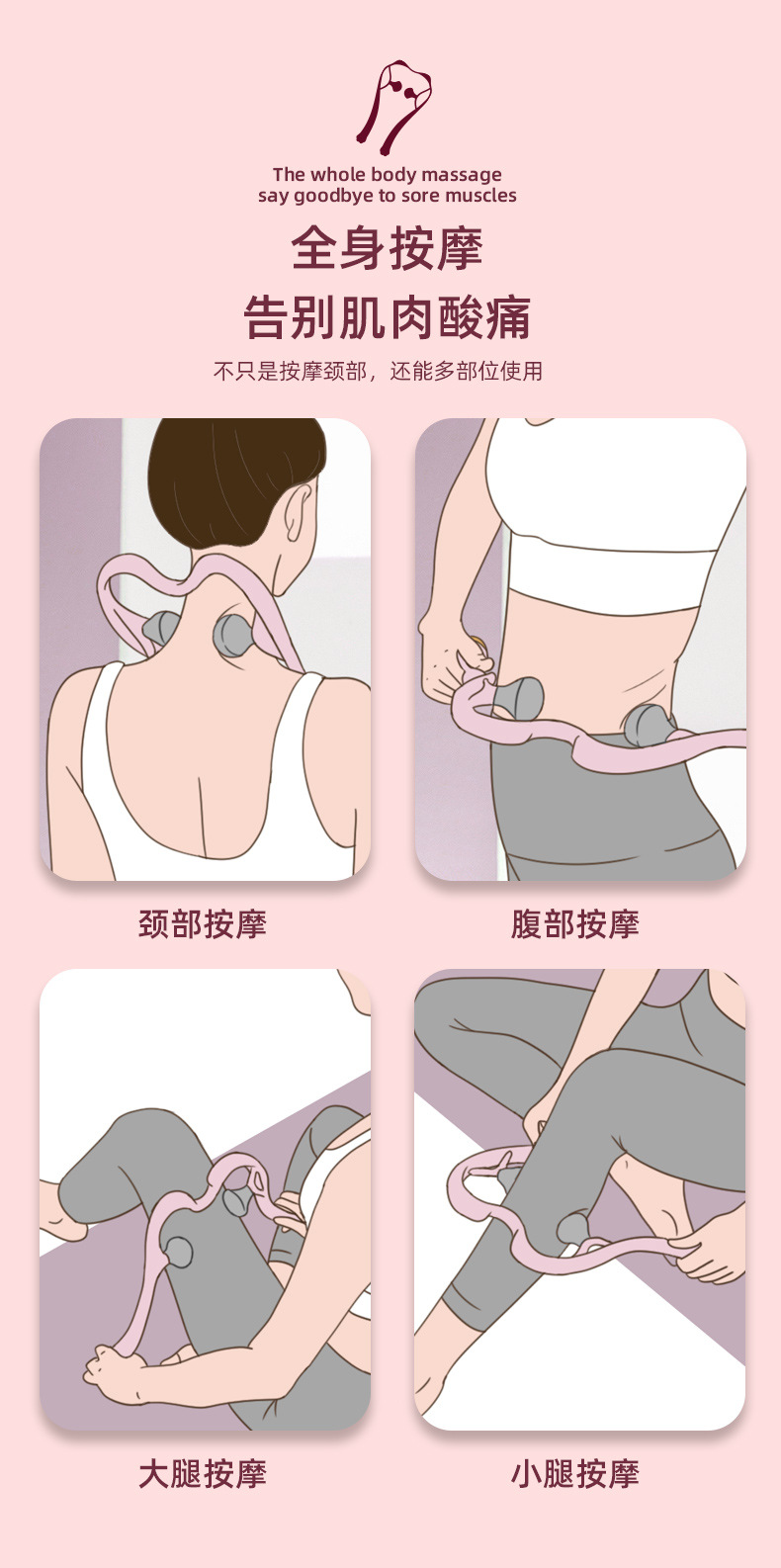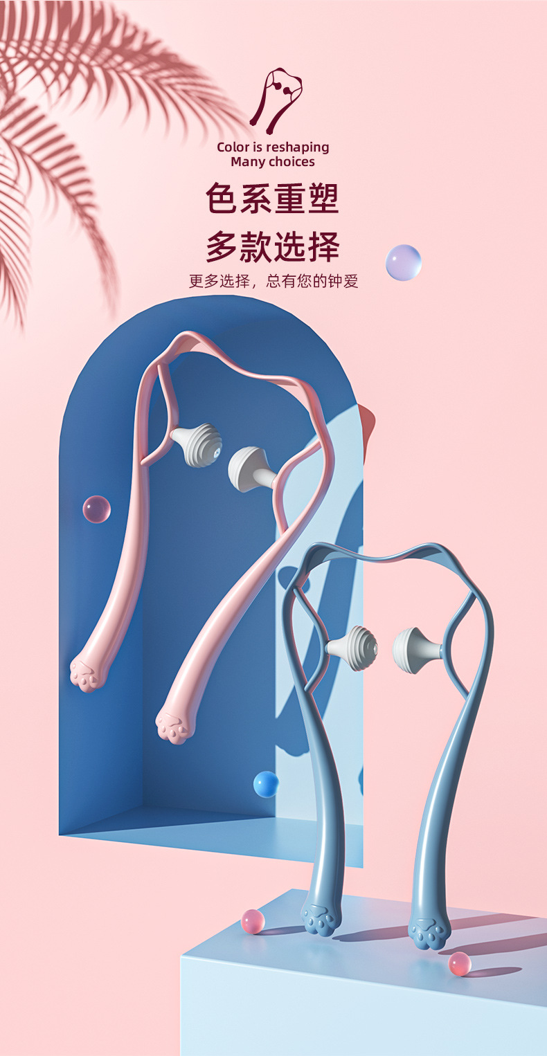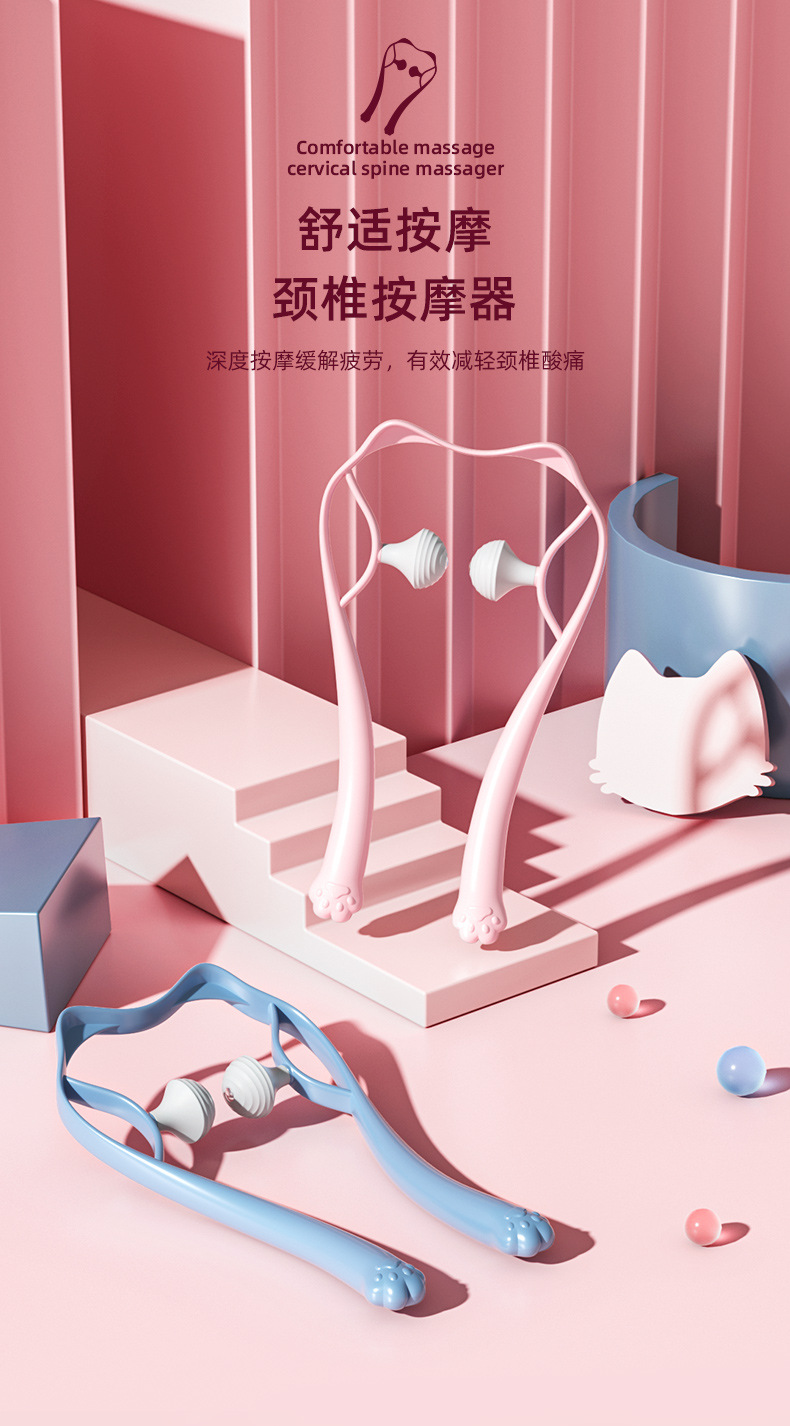 新款颈椎按摩器手动迷你双球按压肩颈疏通仪家用夹脖子颈部按摩器