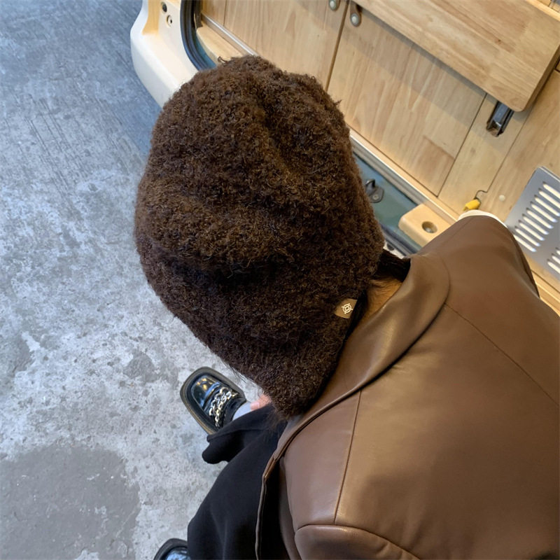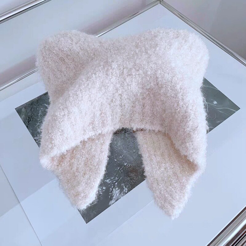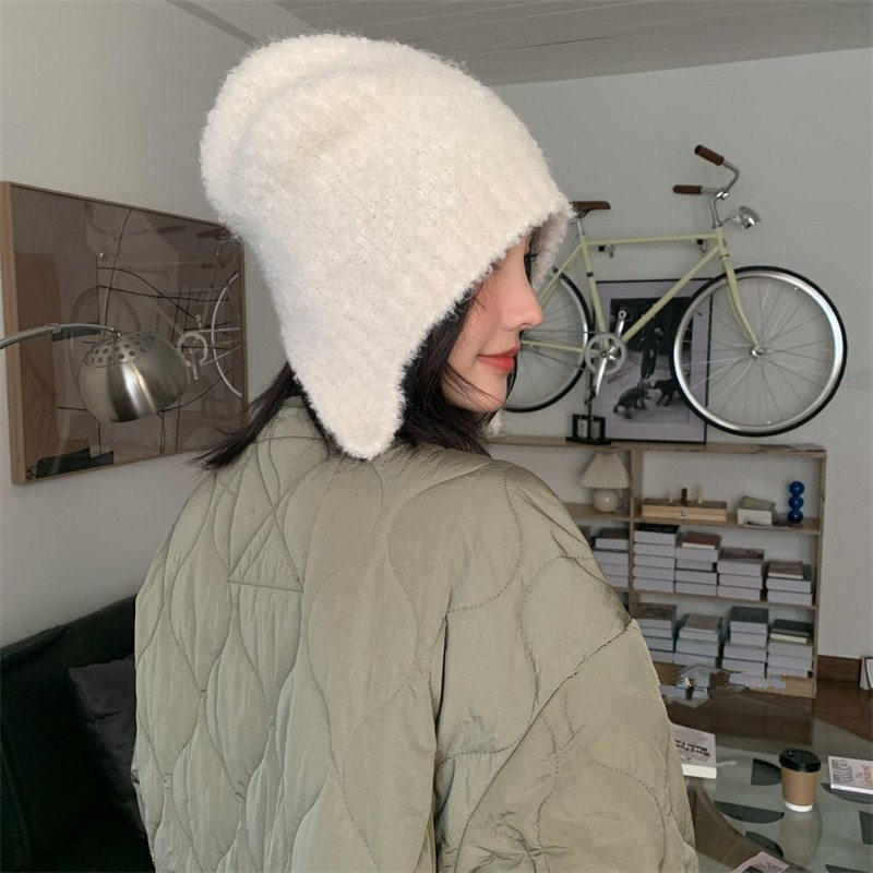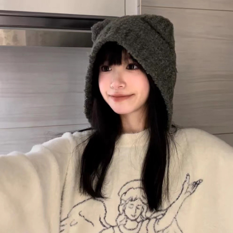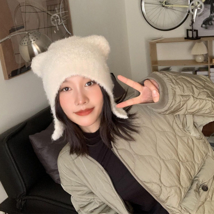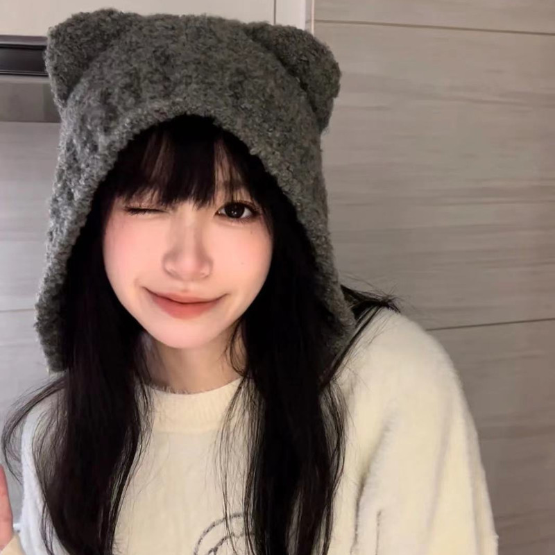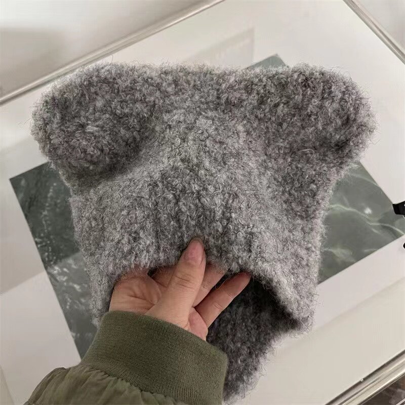 韩国ins灰熊熊立耳毛绒帽子冬季女生可爱保暖日系护耳针织毛线帽