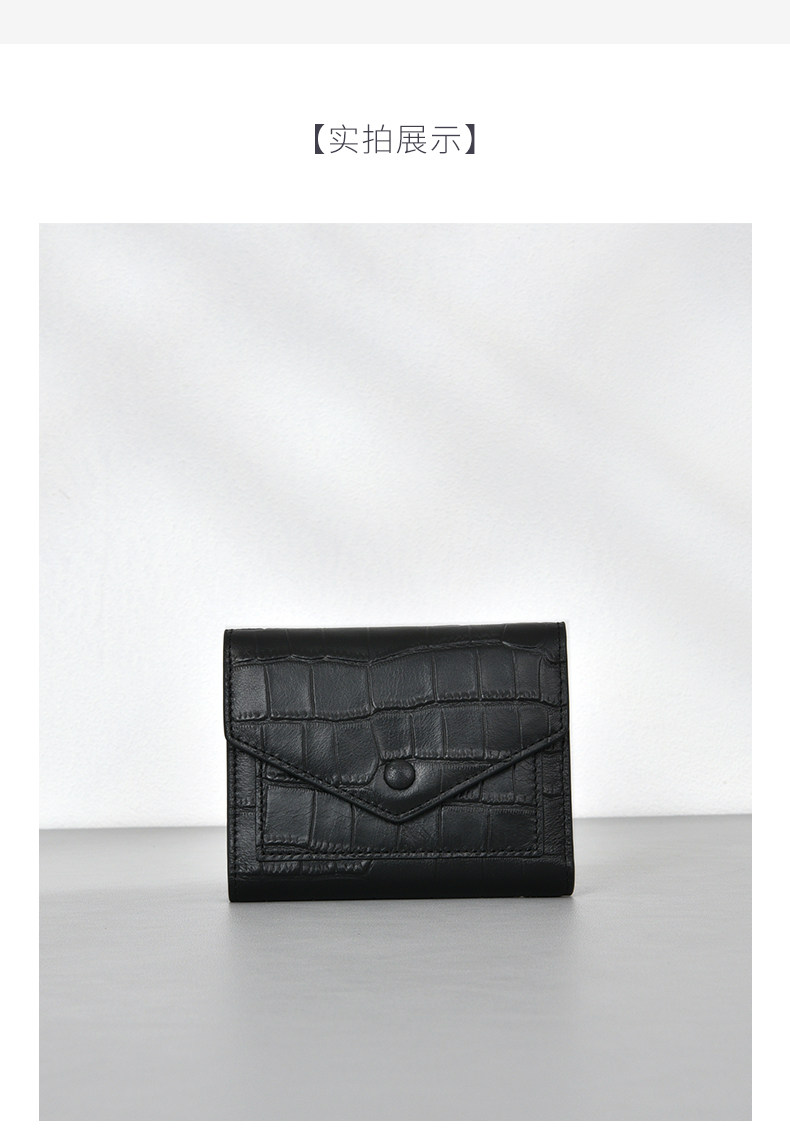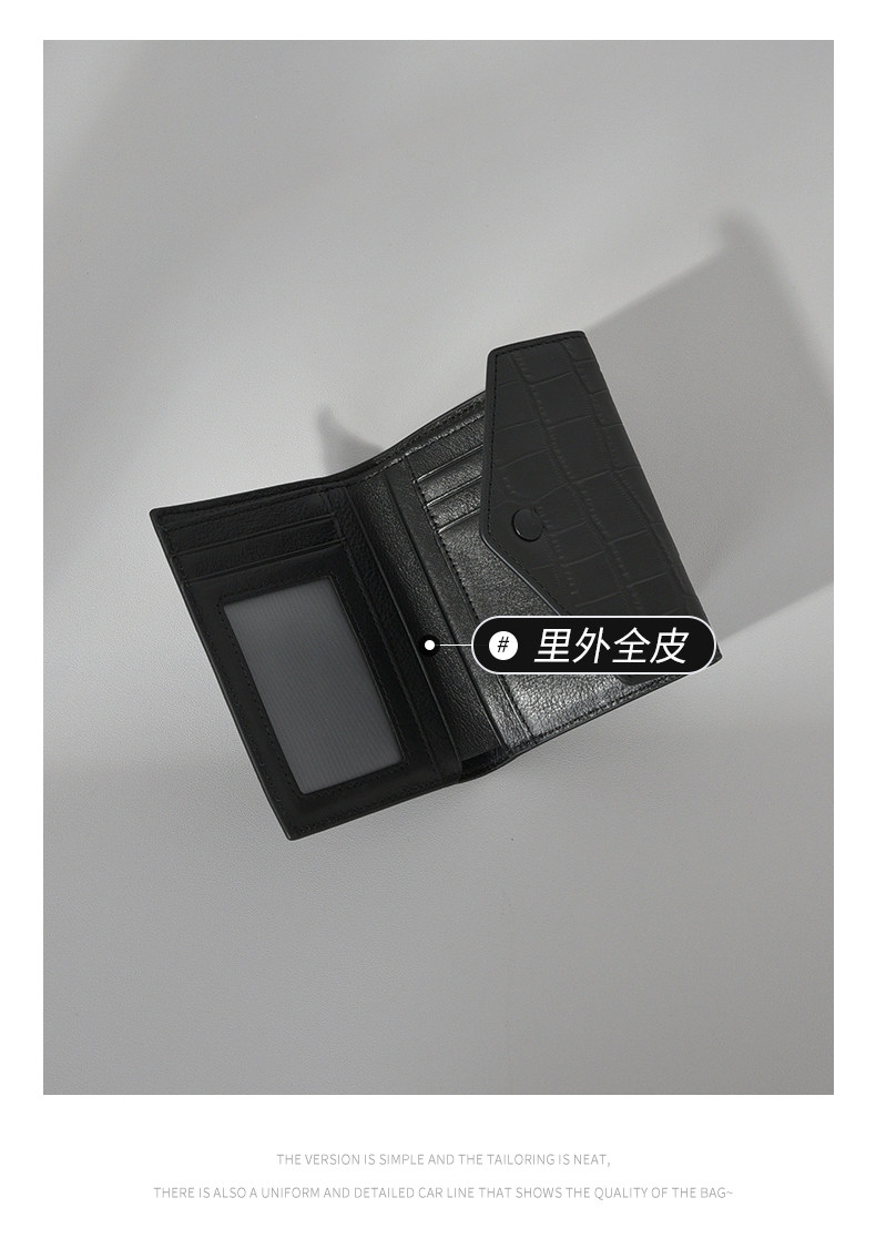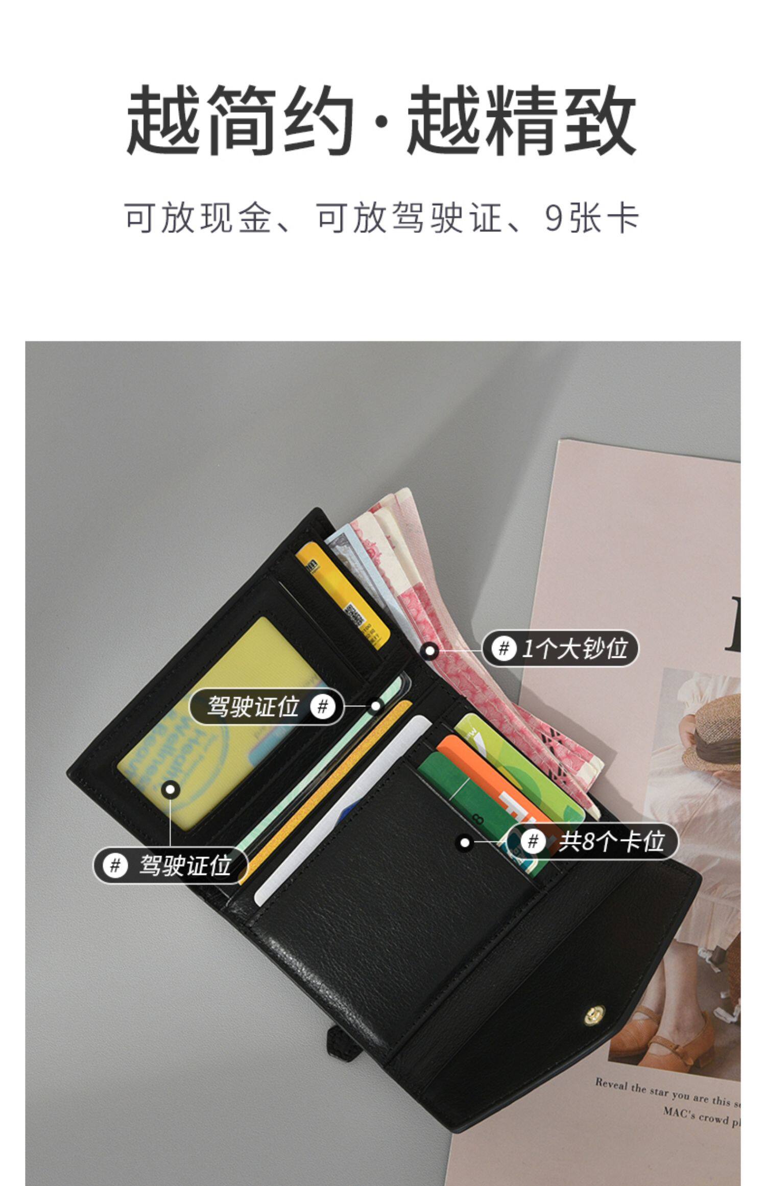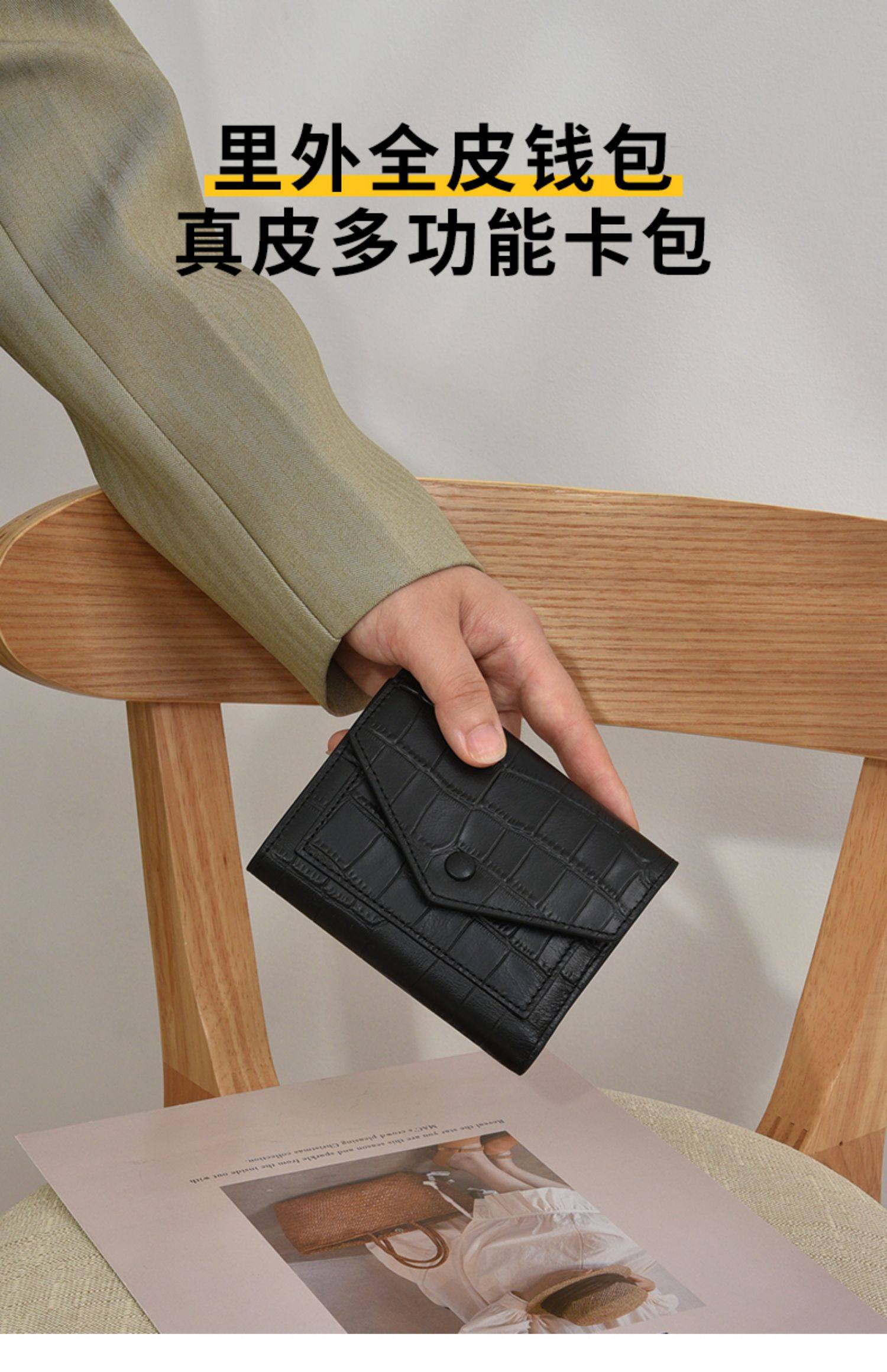 真皮短款钱包女小众设计质感折叠卡包钱夹一体包2023新款时尚小巧