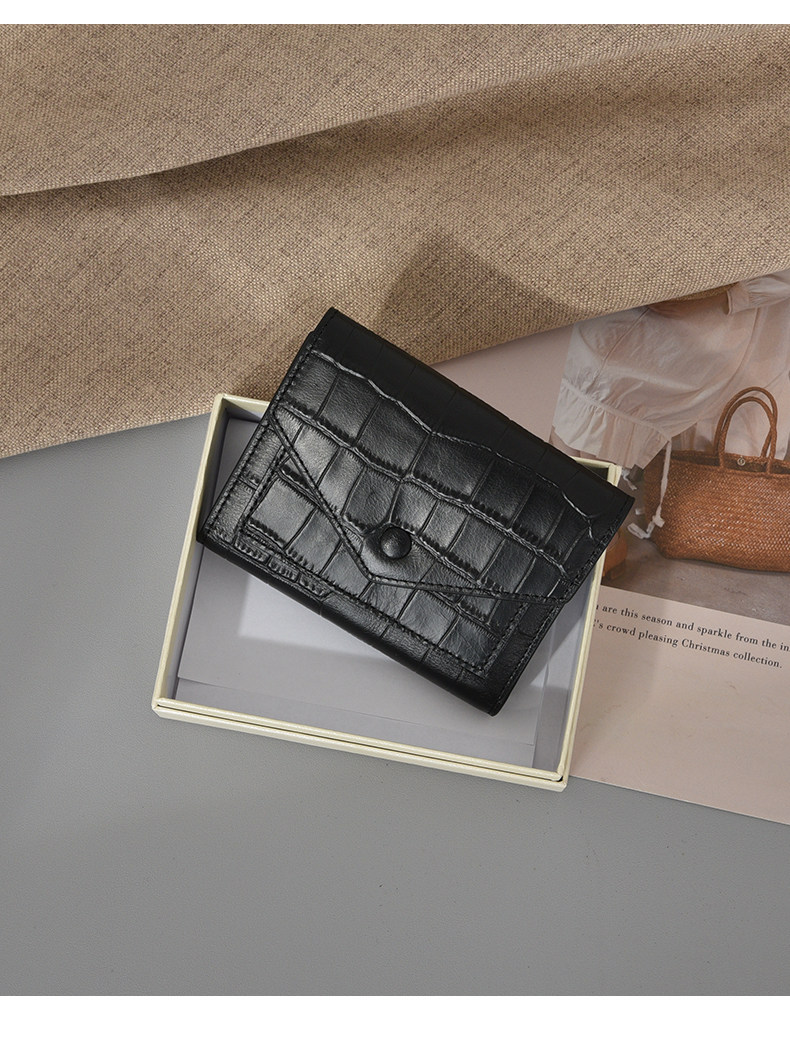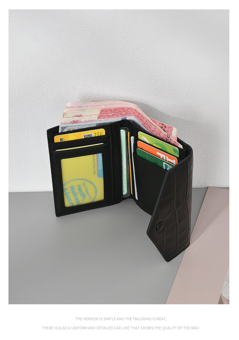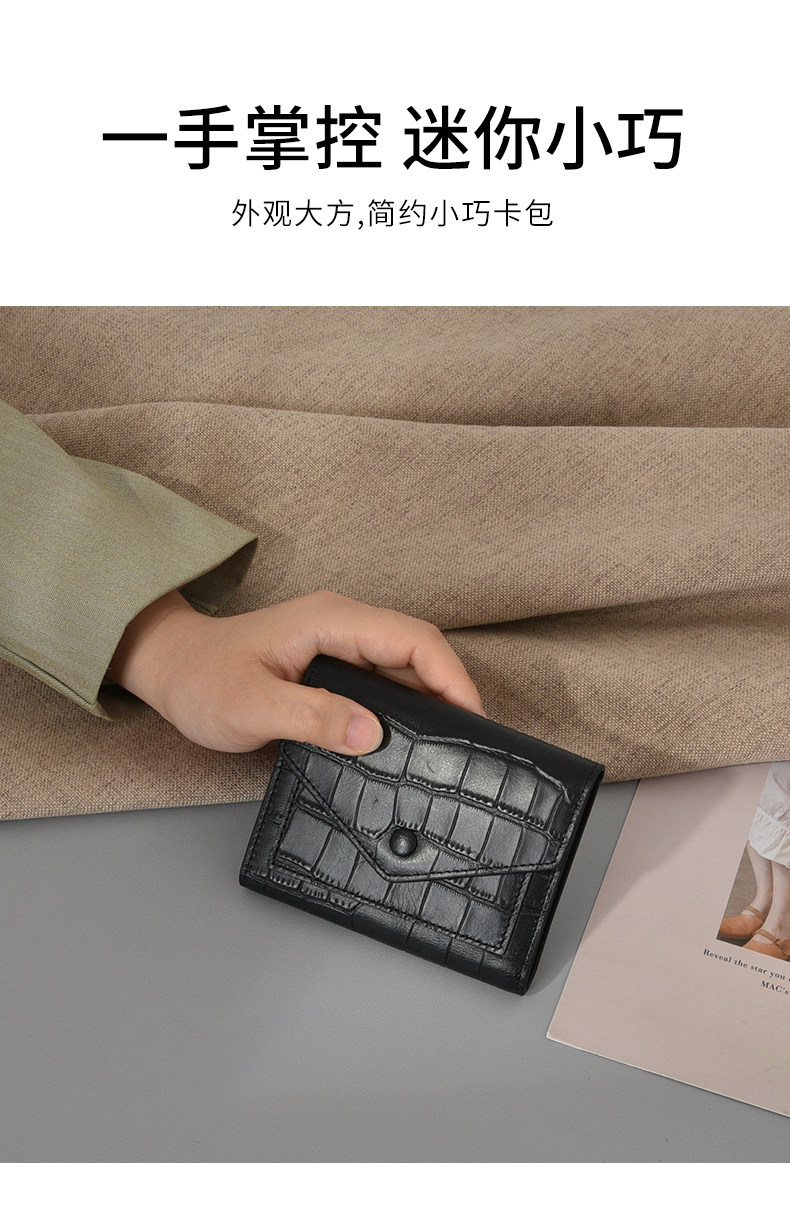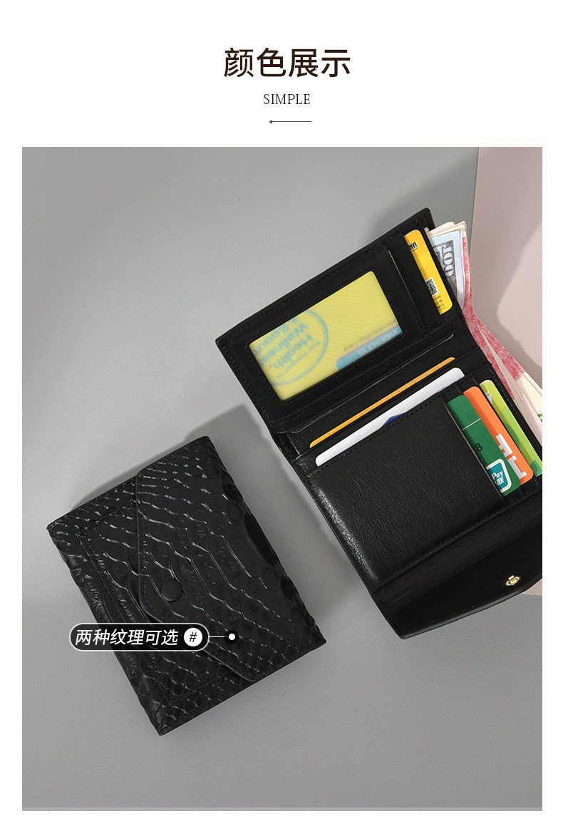 真皮短款钱包女小众设计质感折叠卡包钱夹一体包2023新款时尚小巧