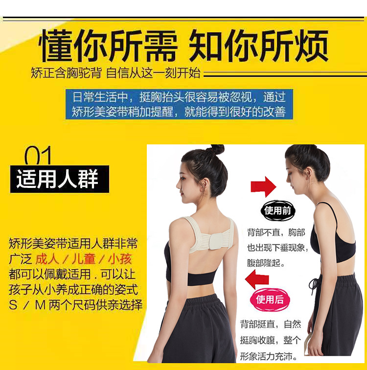 日本驼背矫正器带成年女男隐形儿童矫姿带改善背部防驼背纠正神器