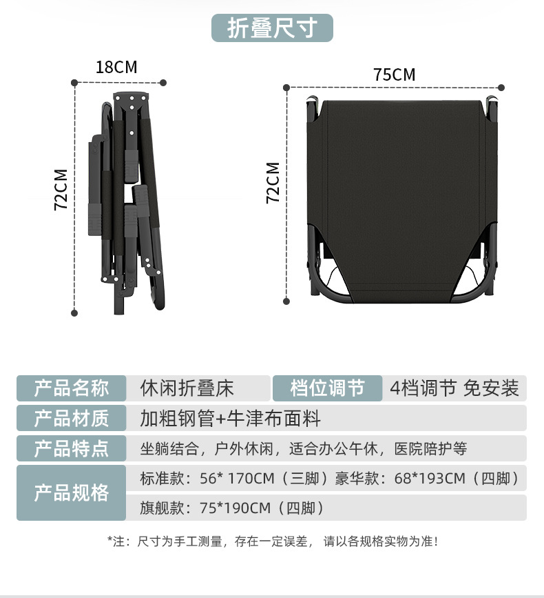 午休折叠床小巧轻便单人床办公室简易午睡椅子床两用便携款家用款