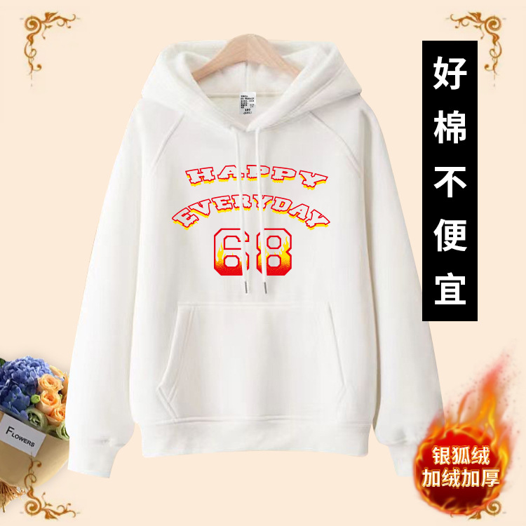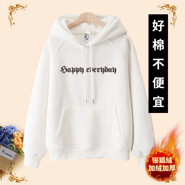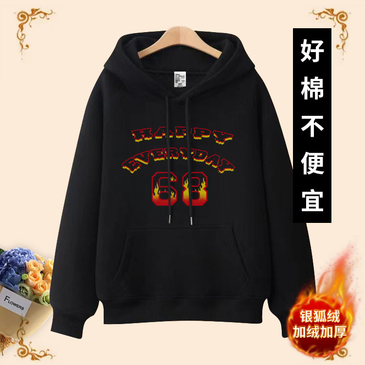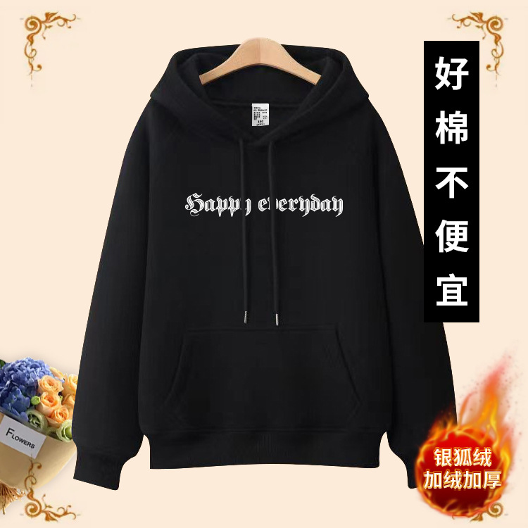 卫衣加绒加厚男款秋冬外套慵懒风全棉happy连帽卫衣潮男