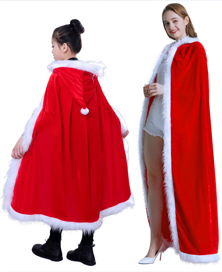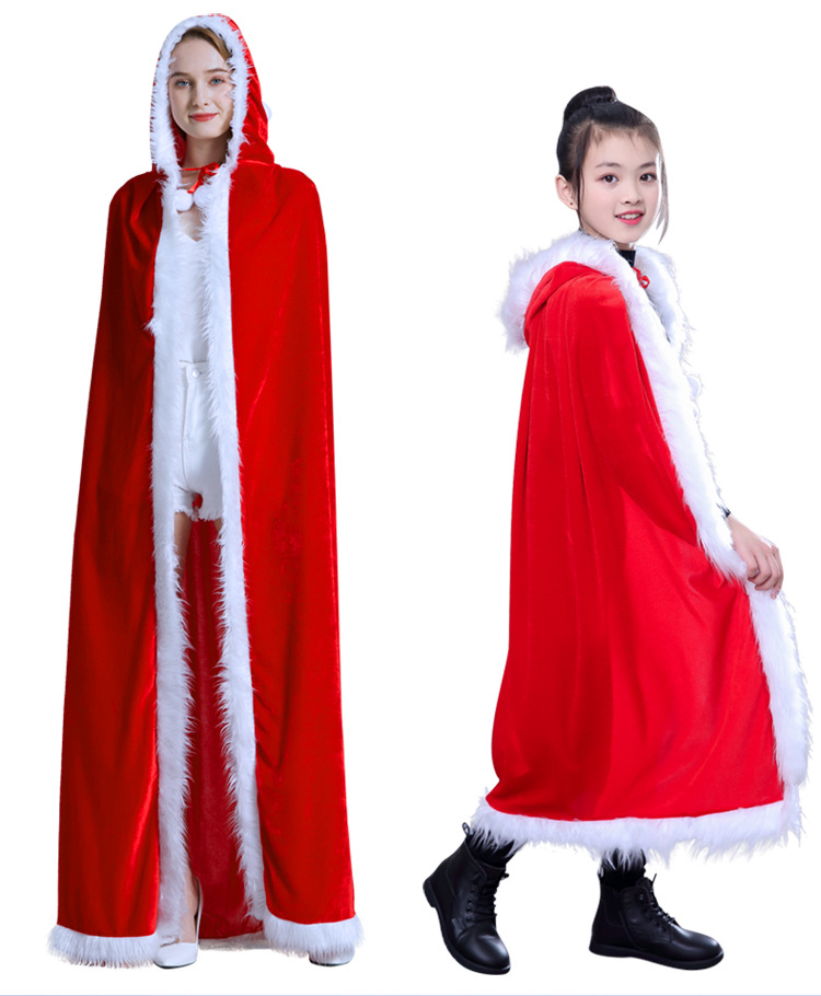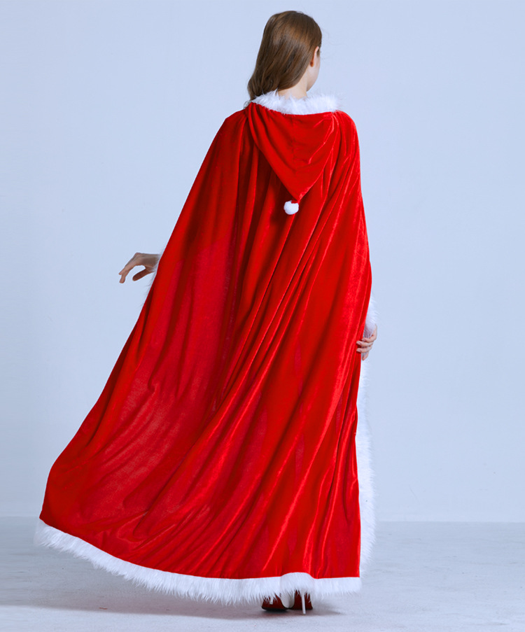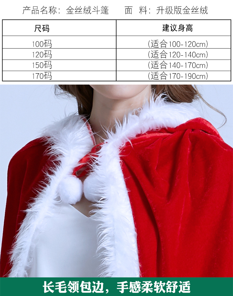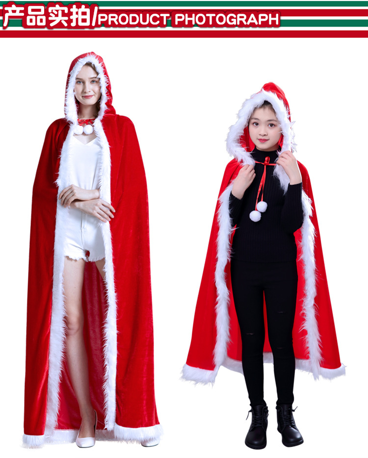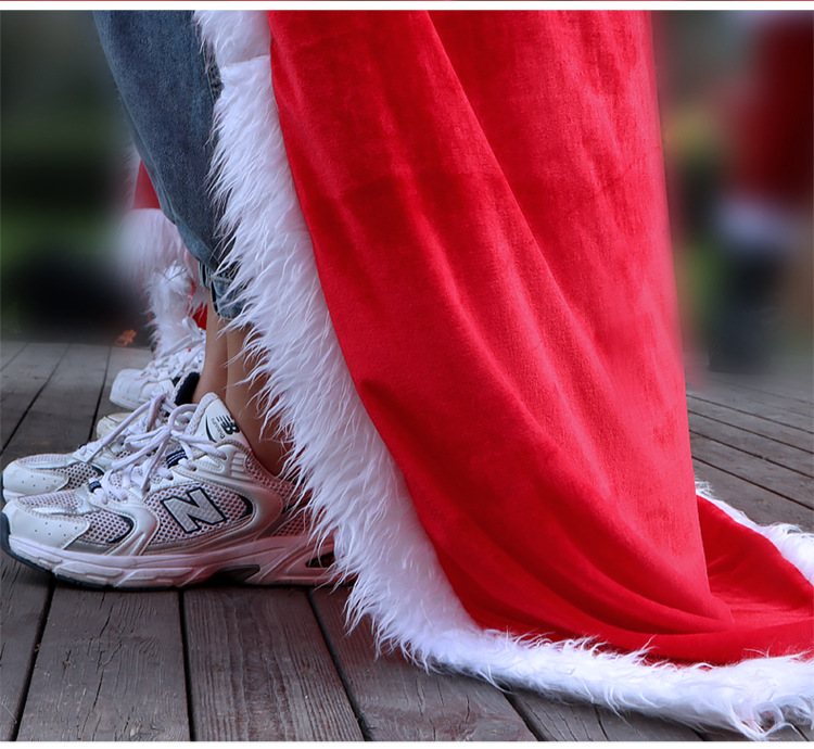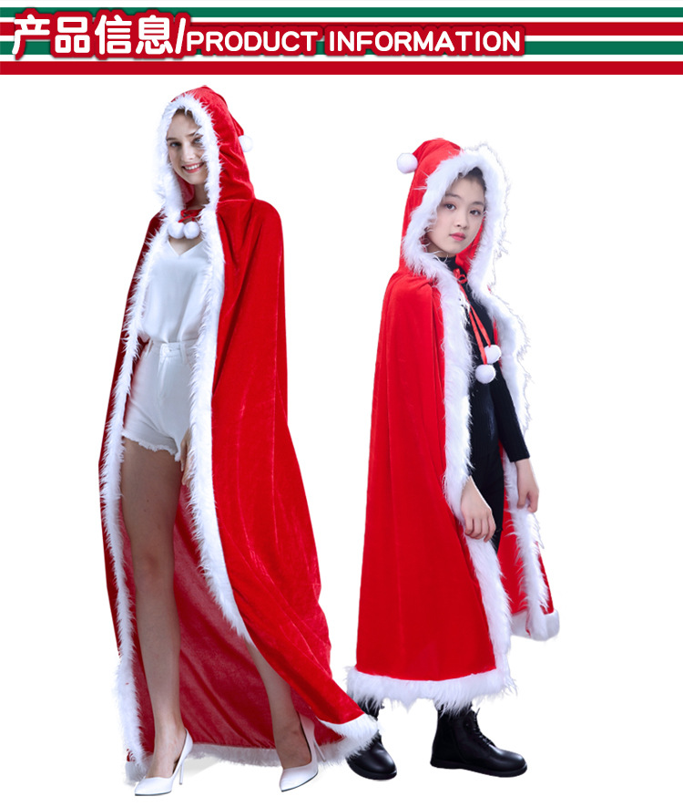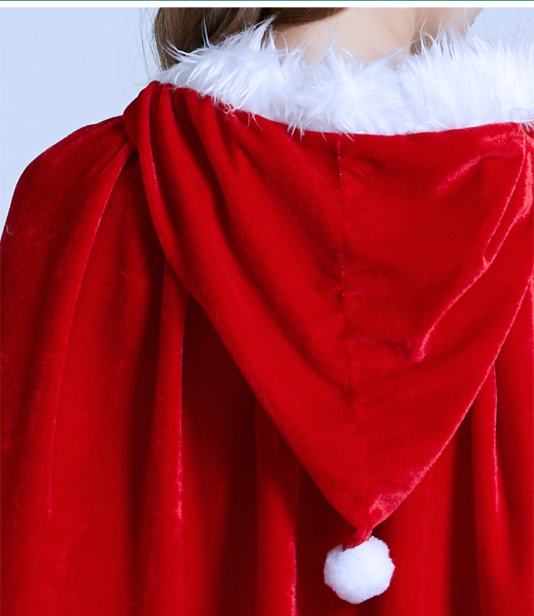 扮演服装派对服饰 圣诞节成人女披风斗篷连帽金丝绒圣诞老人衣服
