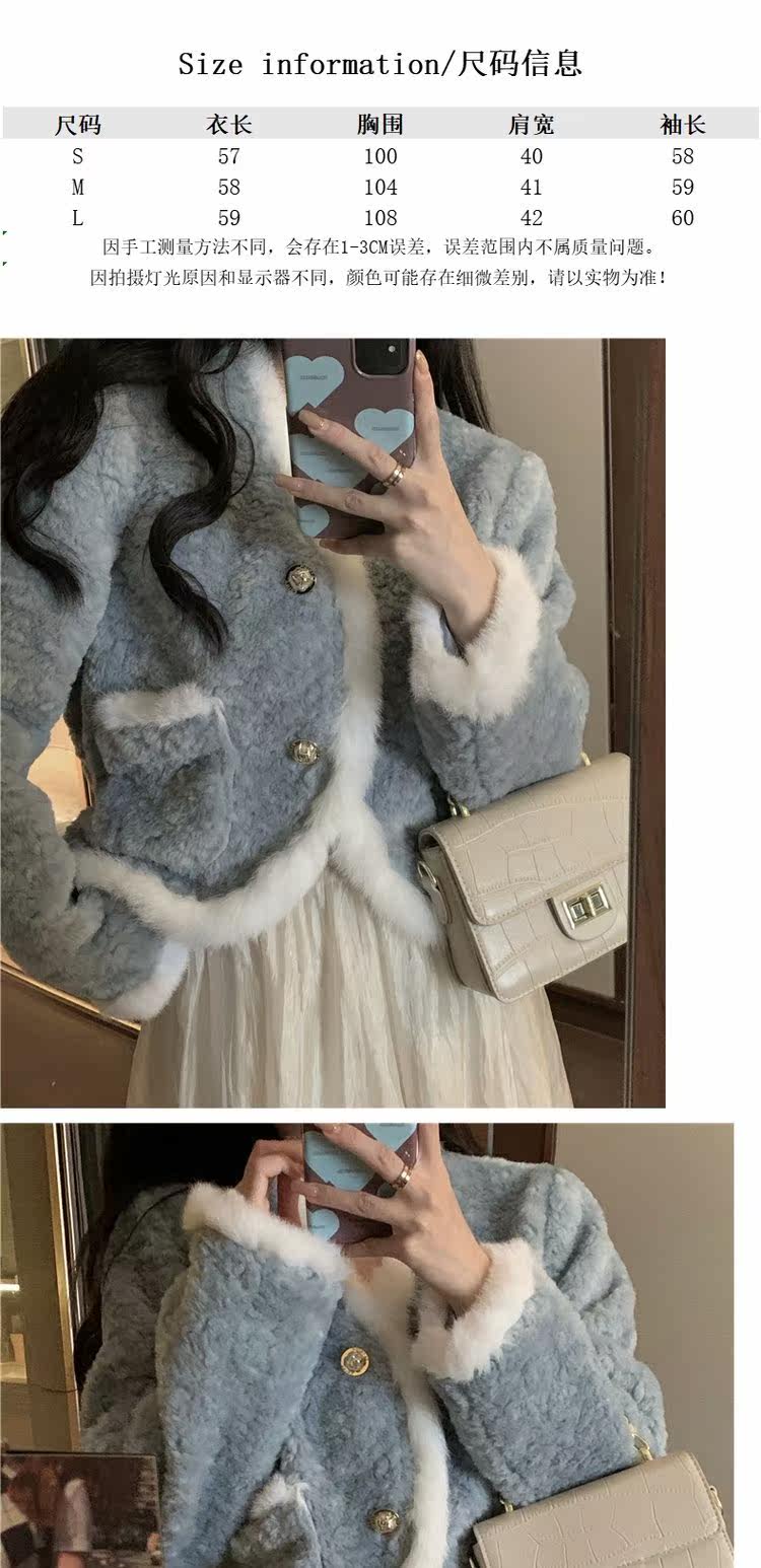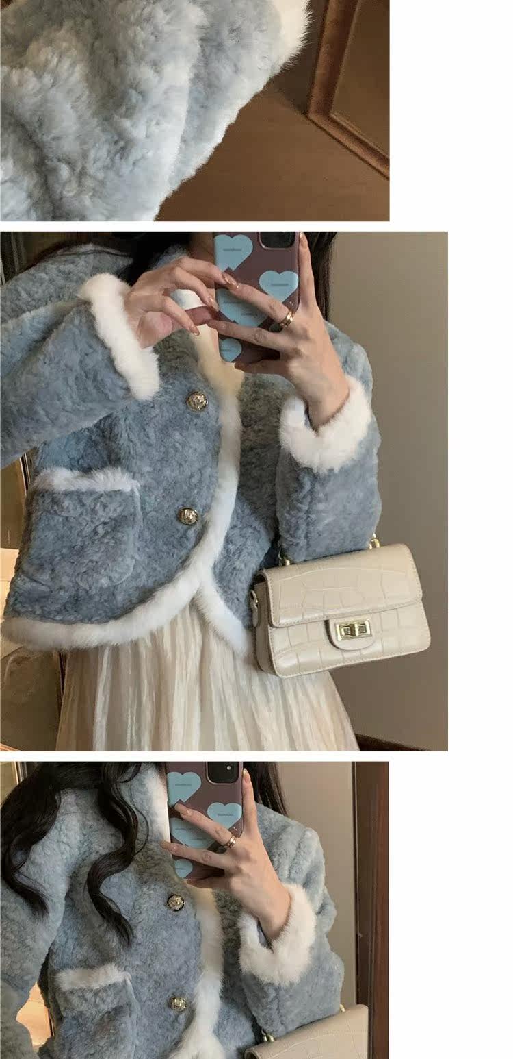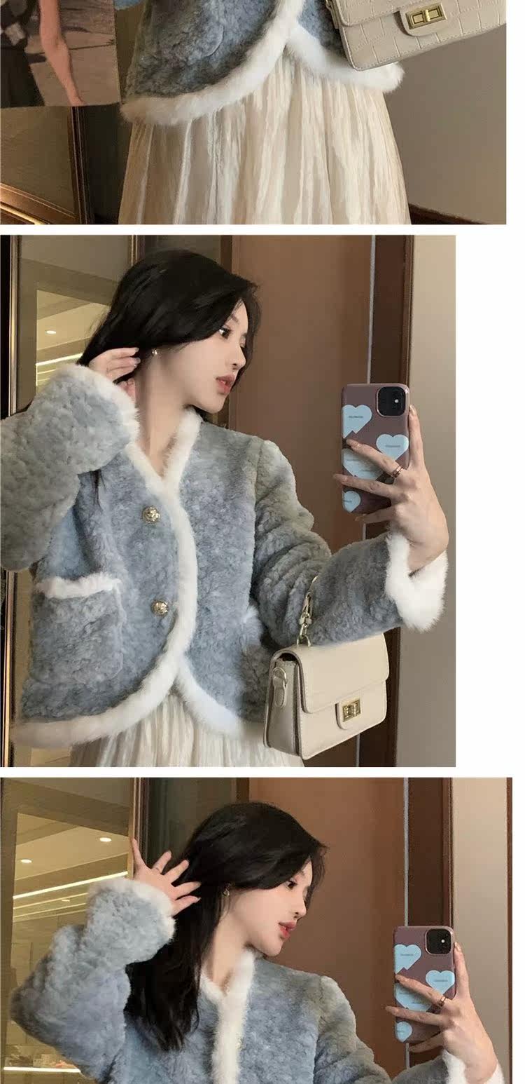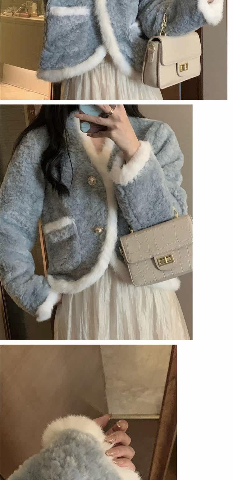 小香风v领羊羔毛外套女冬季加厚高级感小众法式短款毛绒绒棉衣服