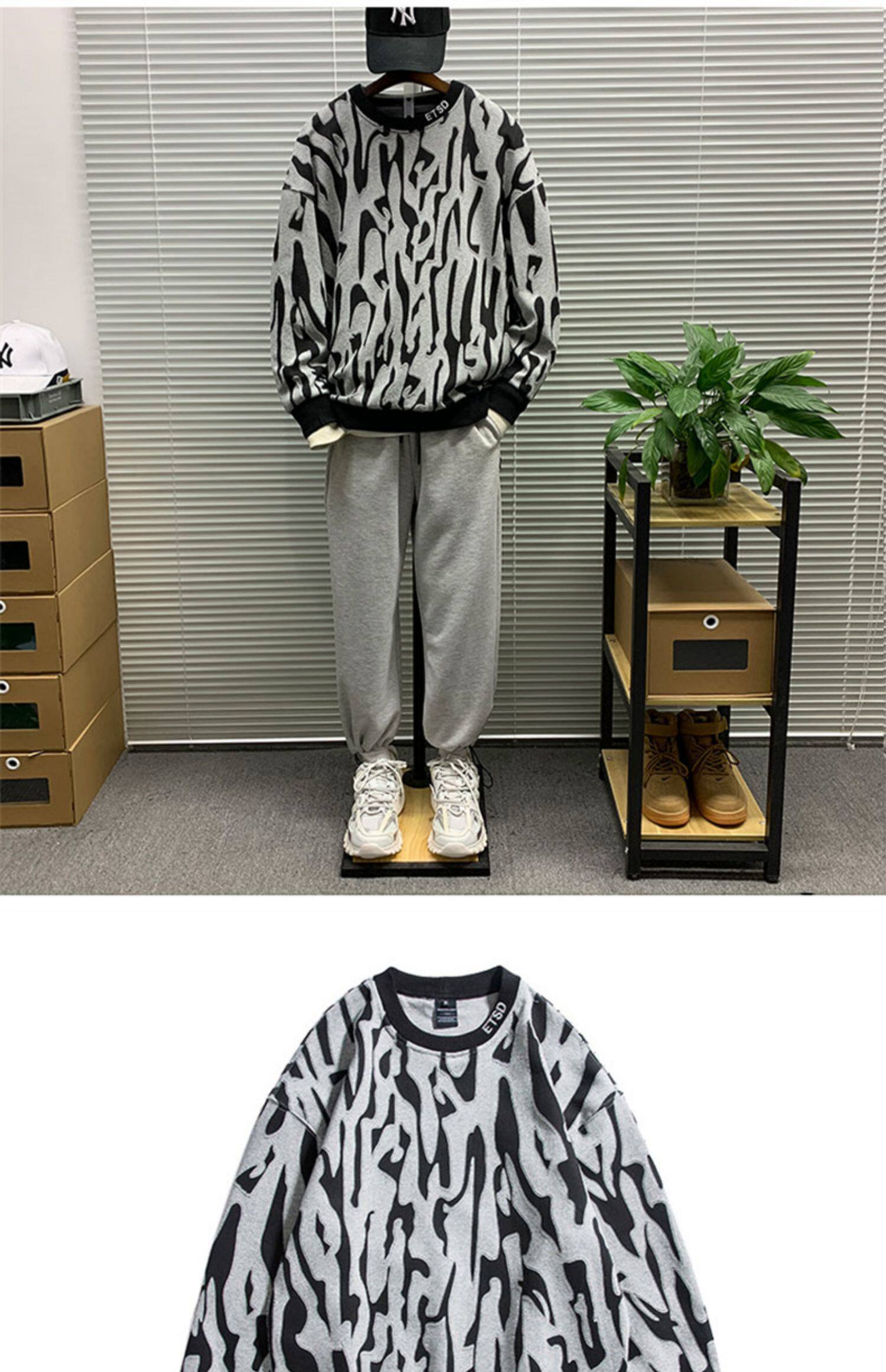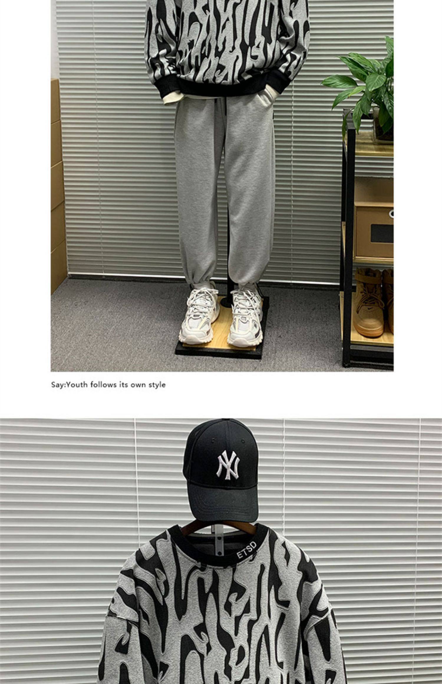 圆领套头卫衣男士春秋季宽松帅气长袖体恤韩版潮流ins休闲上衣服