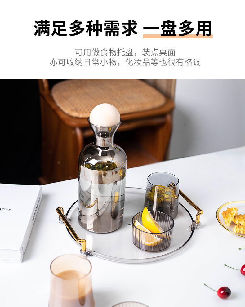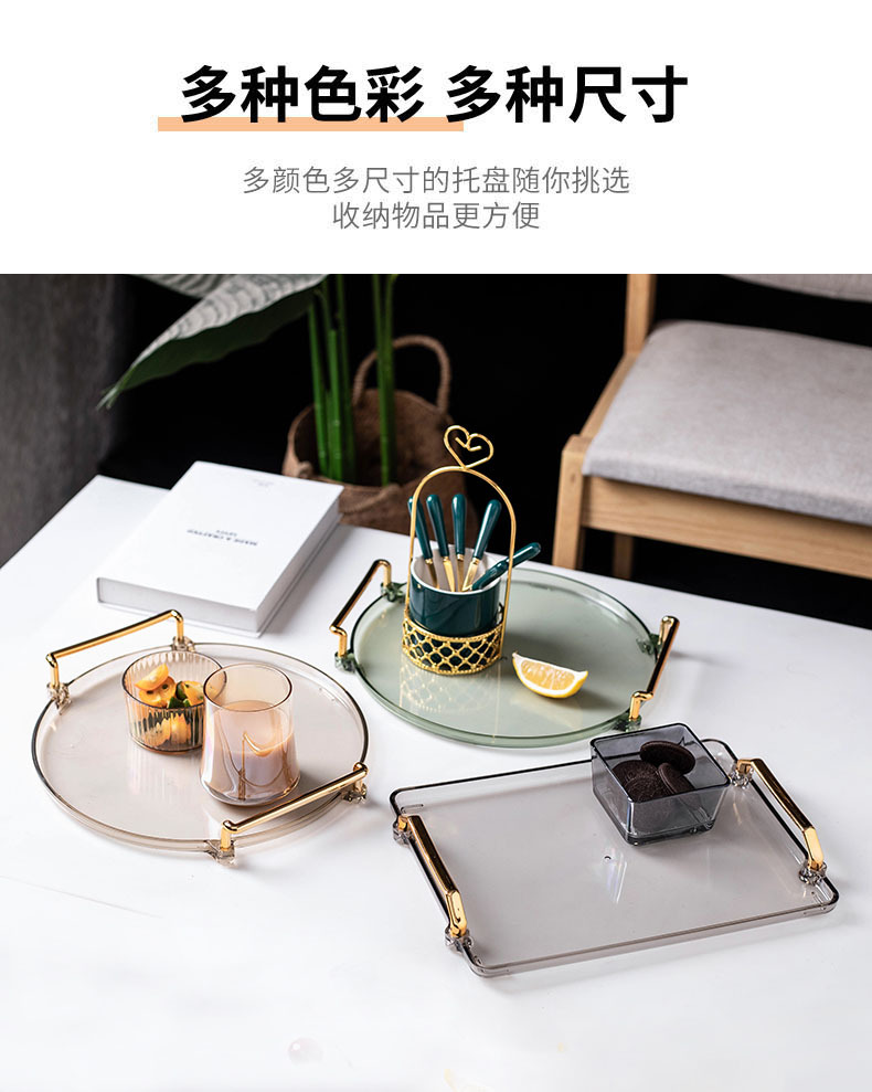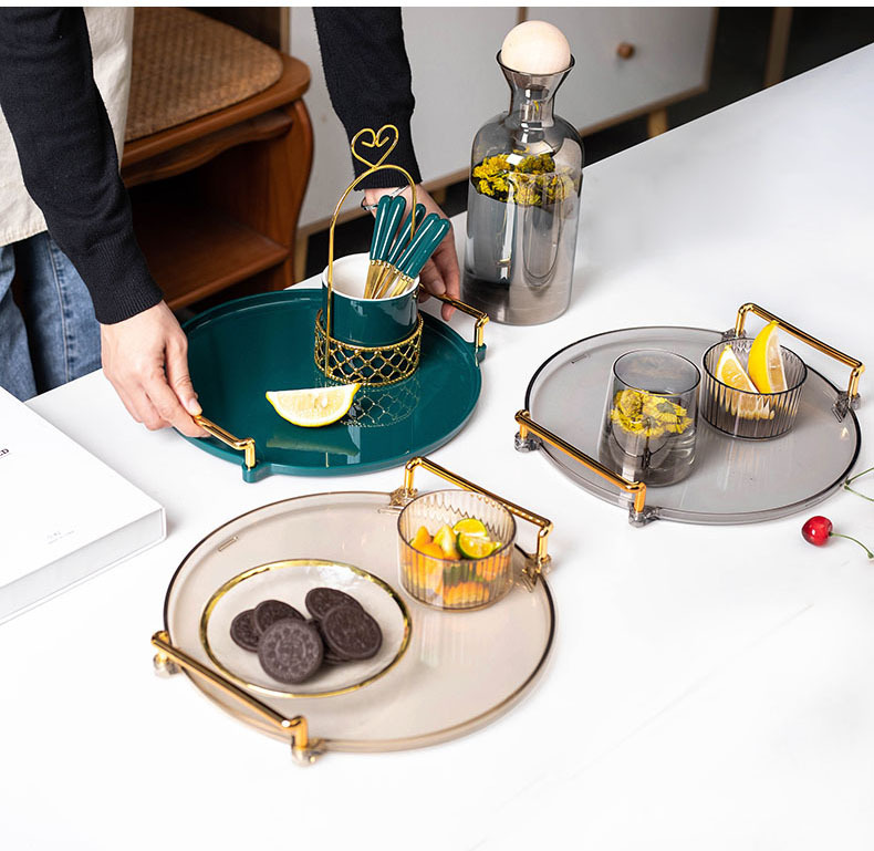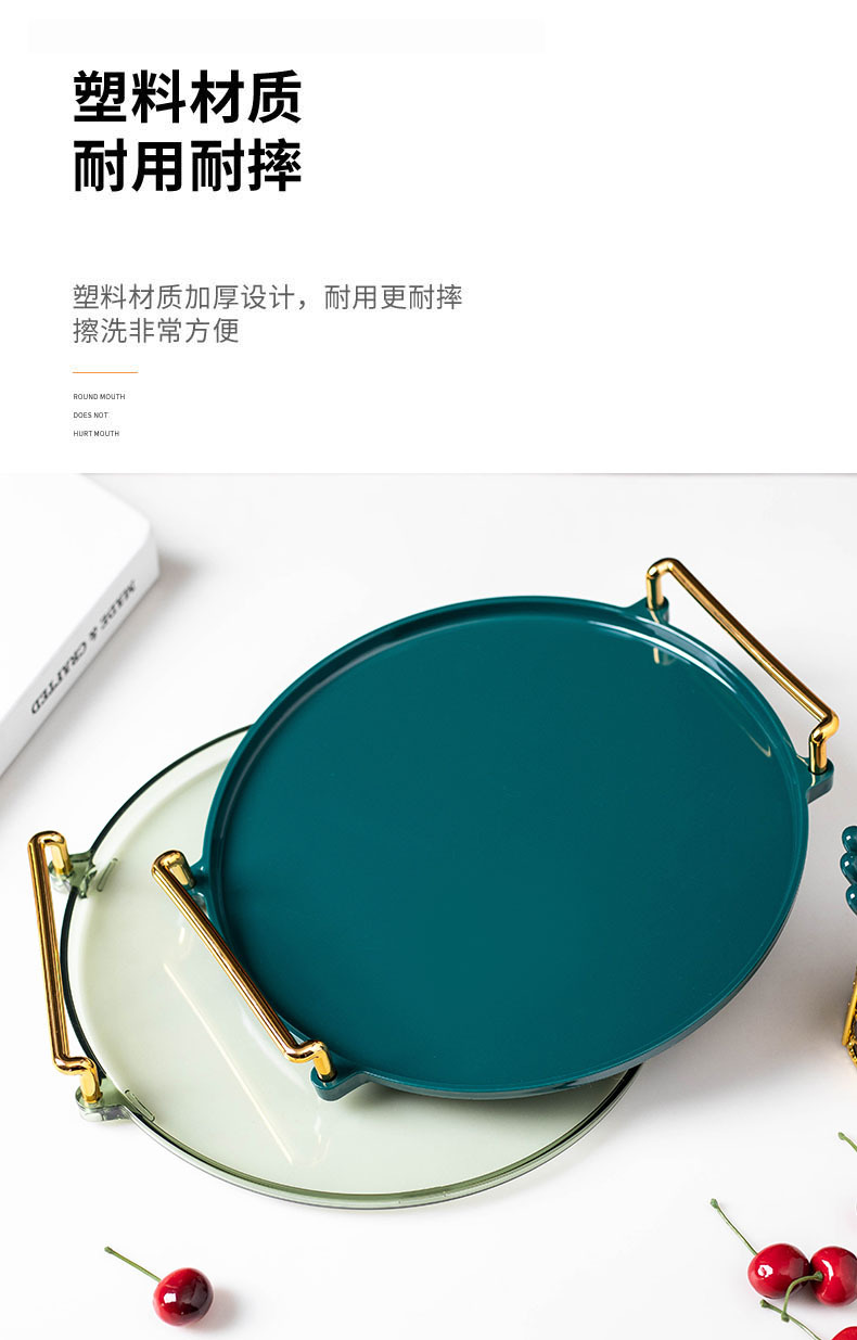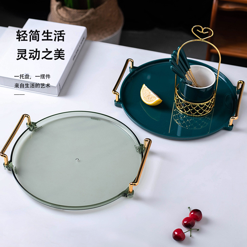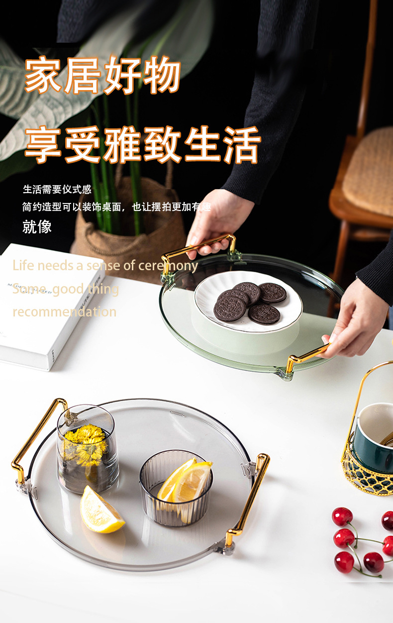 轻奢塑料早餐下午茶托盘圆形水果小吃碟置物盘ins杯子水具收纳盘