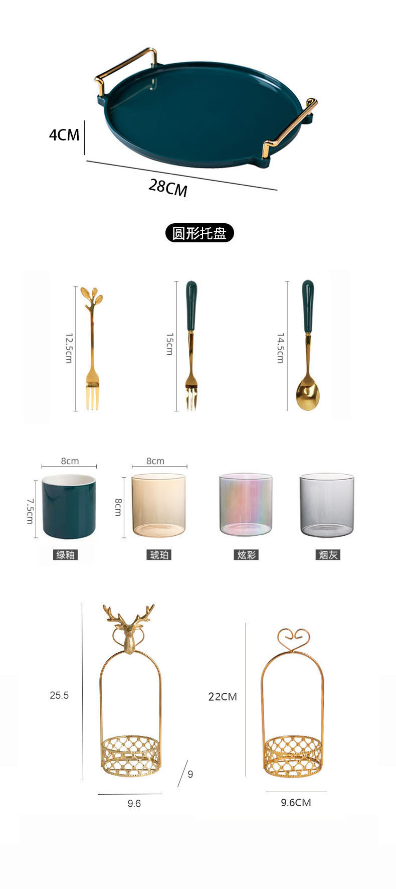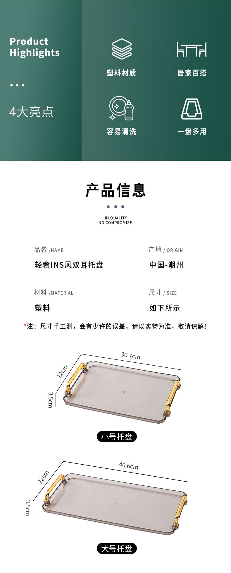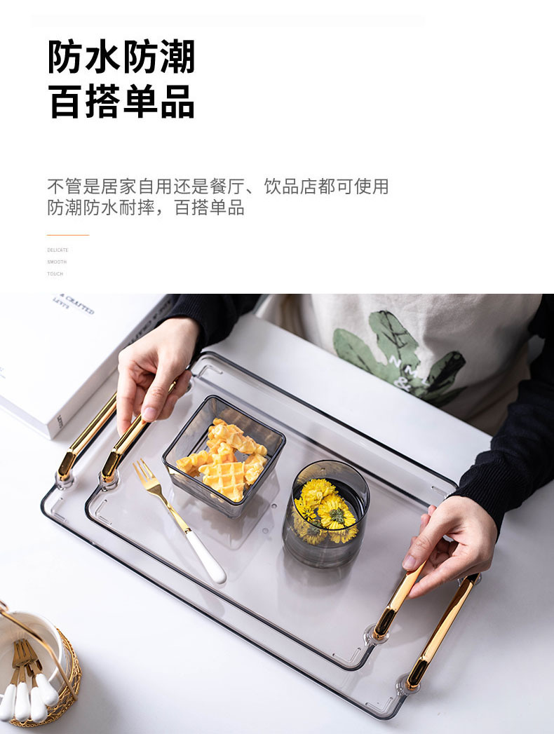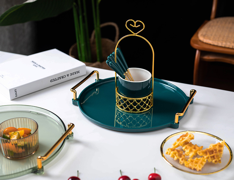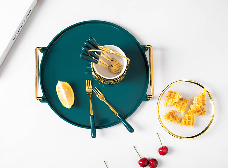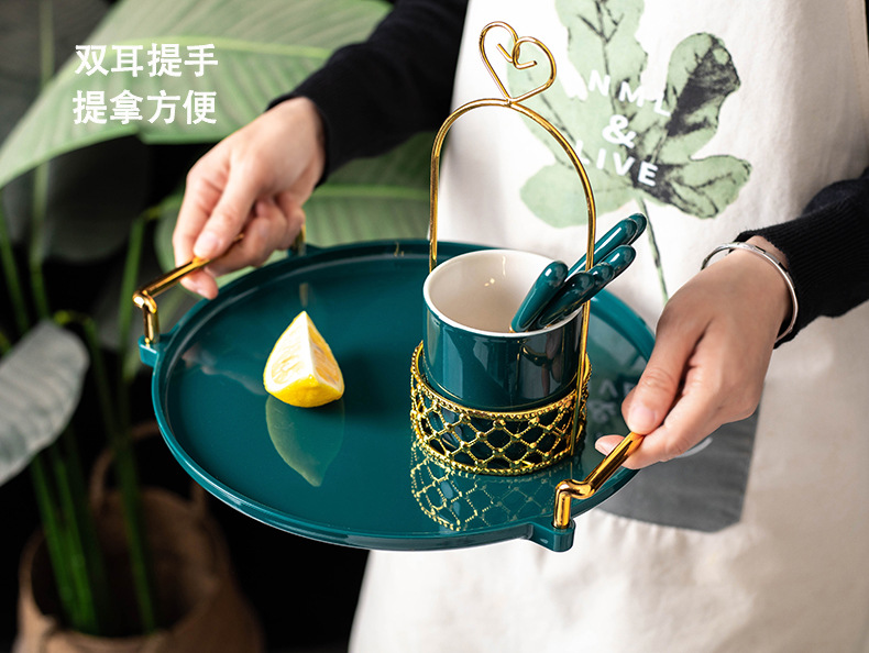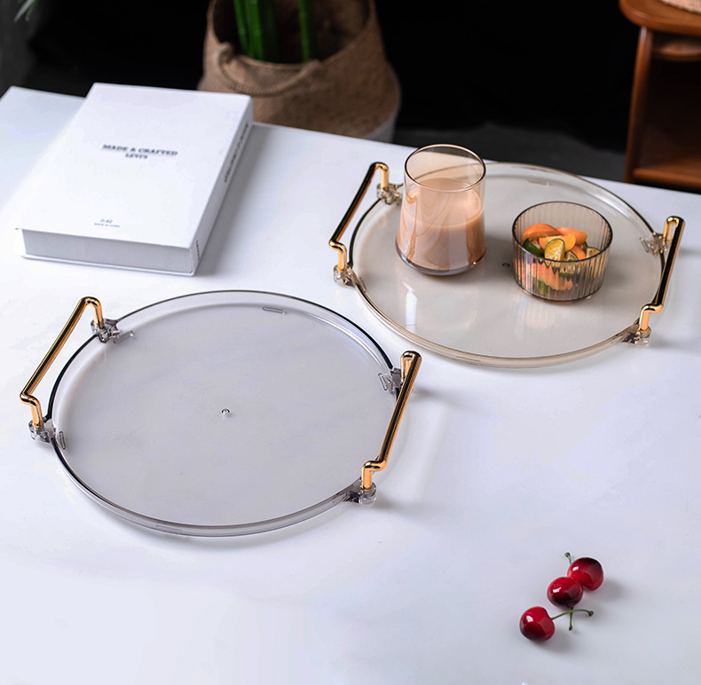 轻奢塑料早餐下午茶托盘圆形水果小吃碟置物盘ins杯子水具收纳盘