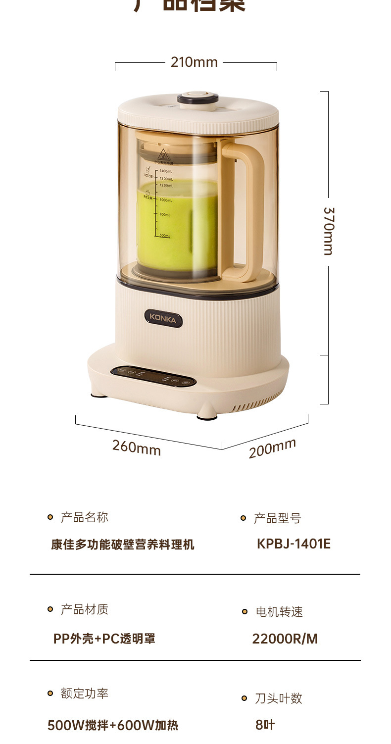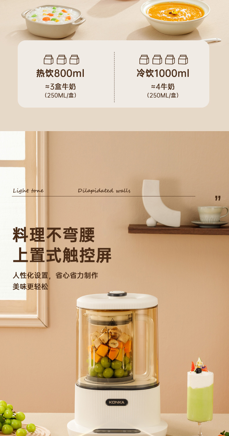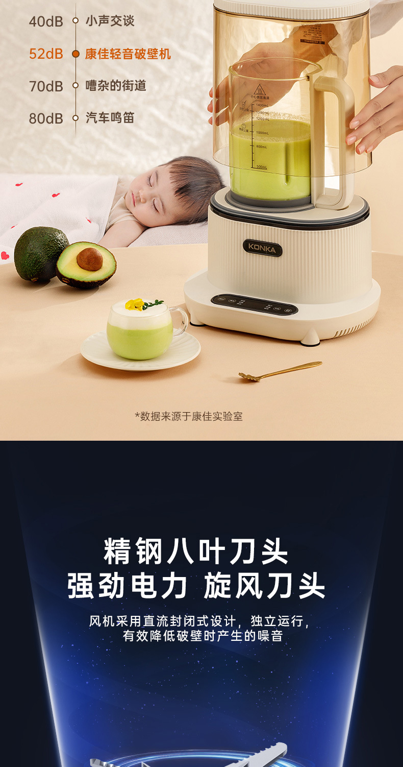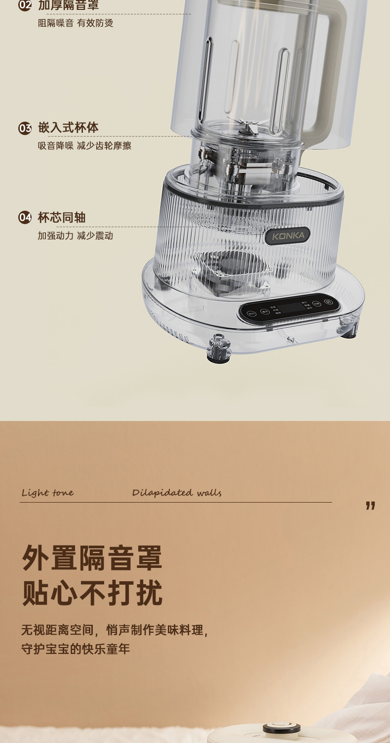 康佳轻音破壁机家用多功能加热豆浆机非静音辅食料理机直播礼品