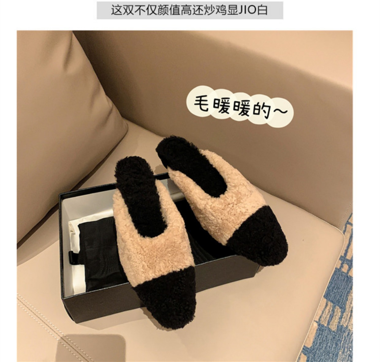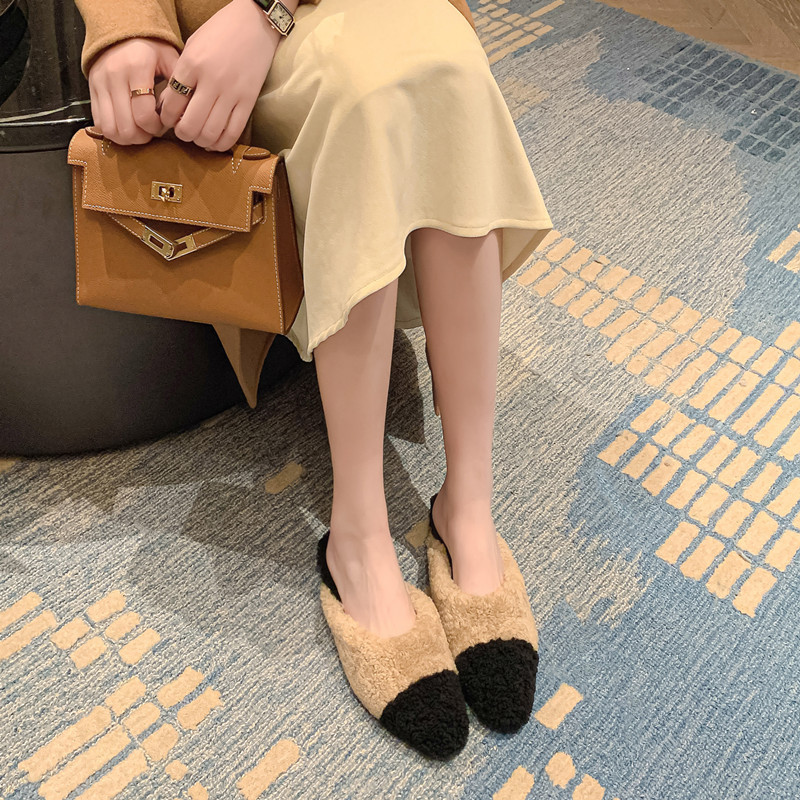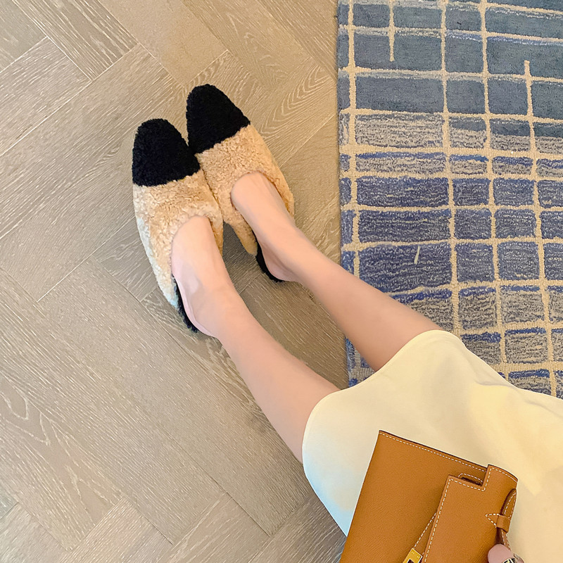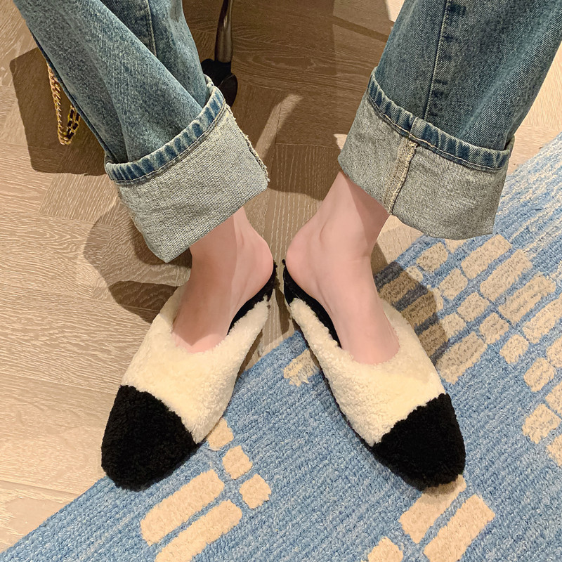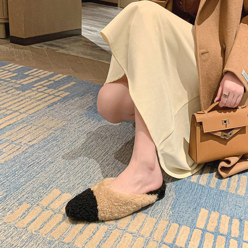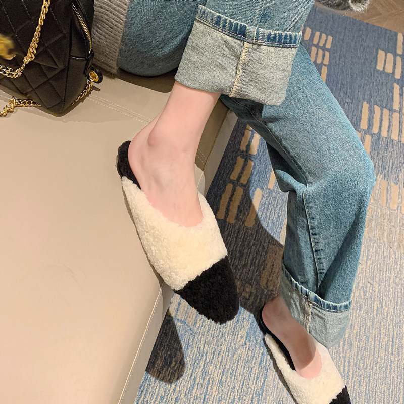 毛毛拖鞋女外穿2022秋冬新款韩版潮鞋平底包头羊羔毛时尚百搭鞋子