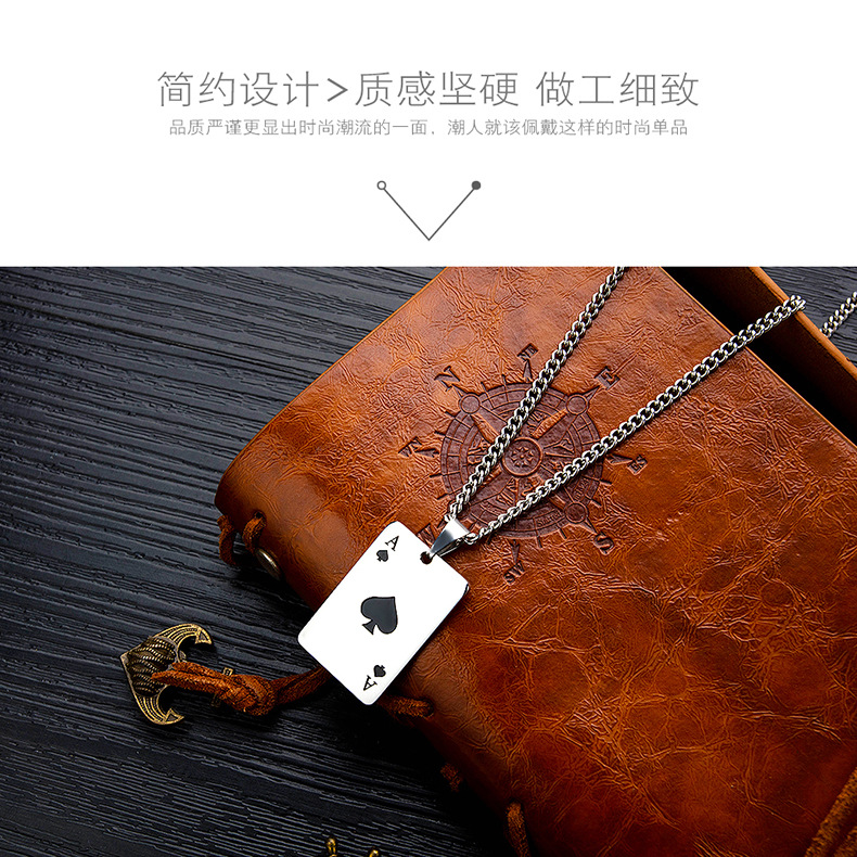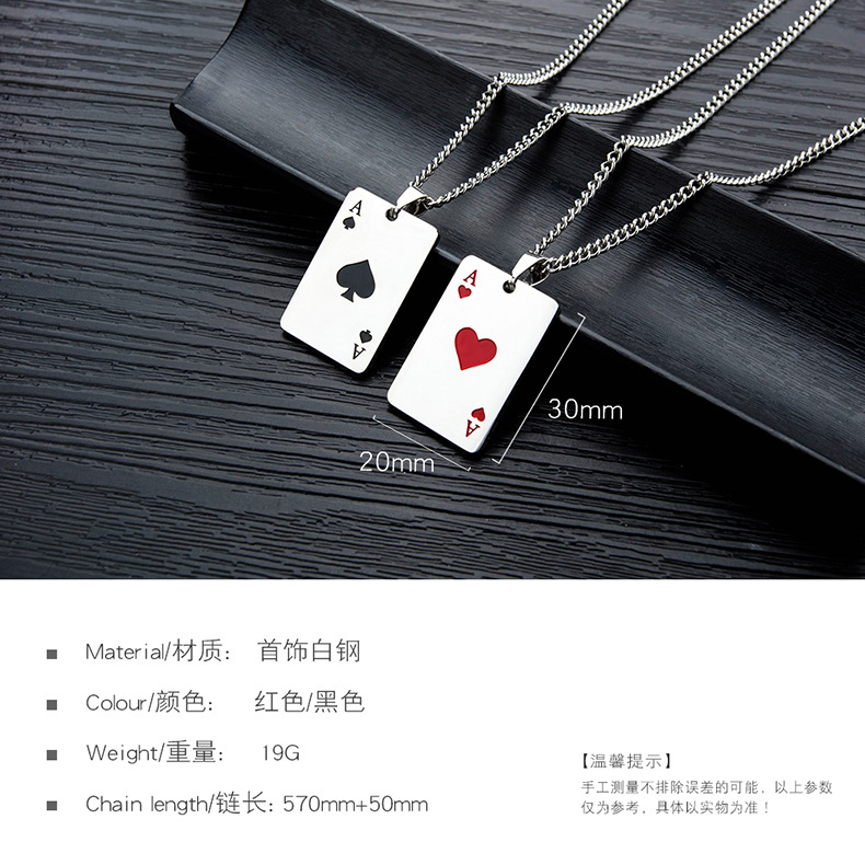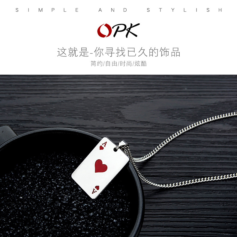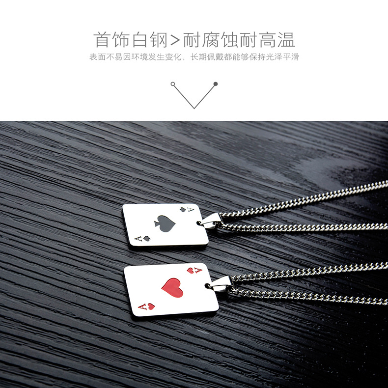 欧美风时尚潮流扑克牌嘻哈钛钢项链个性百搭爱心不锈钢吊坠批发