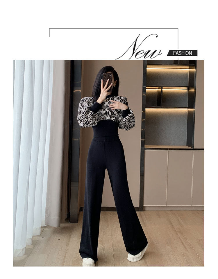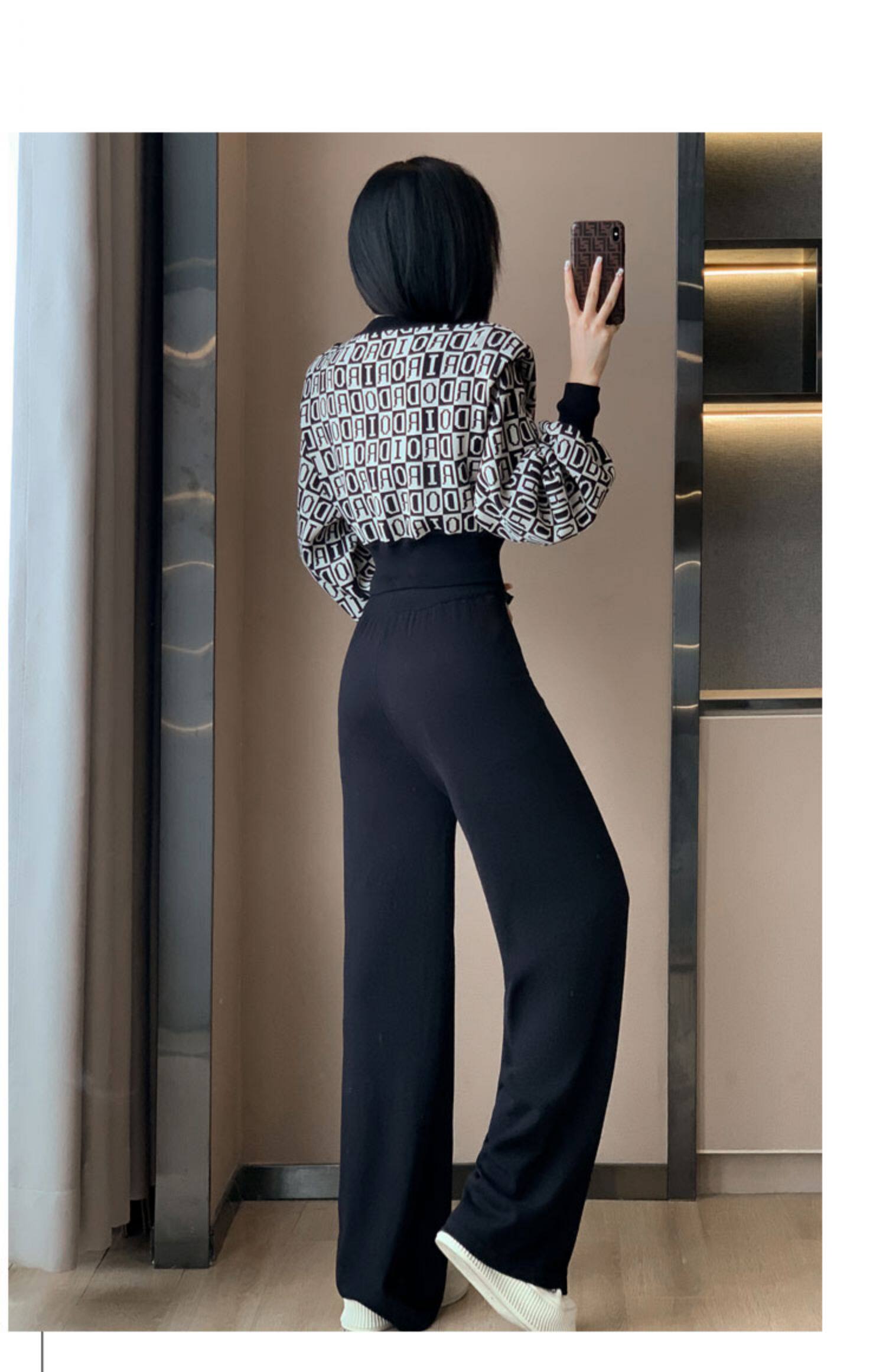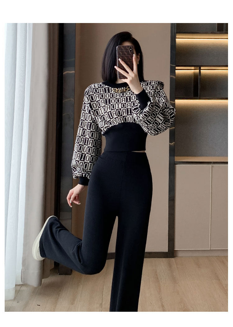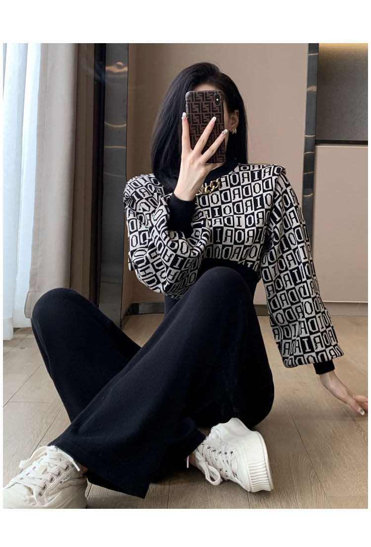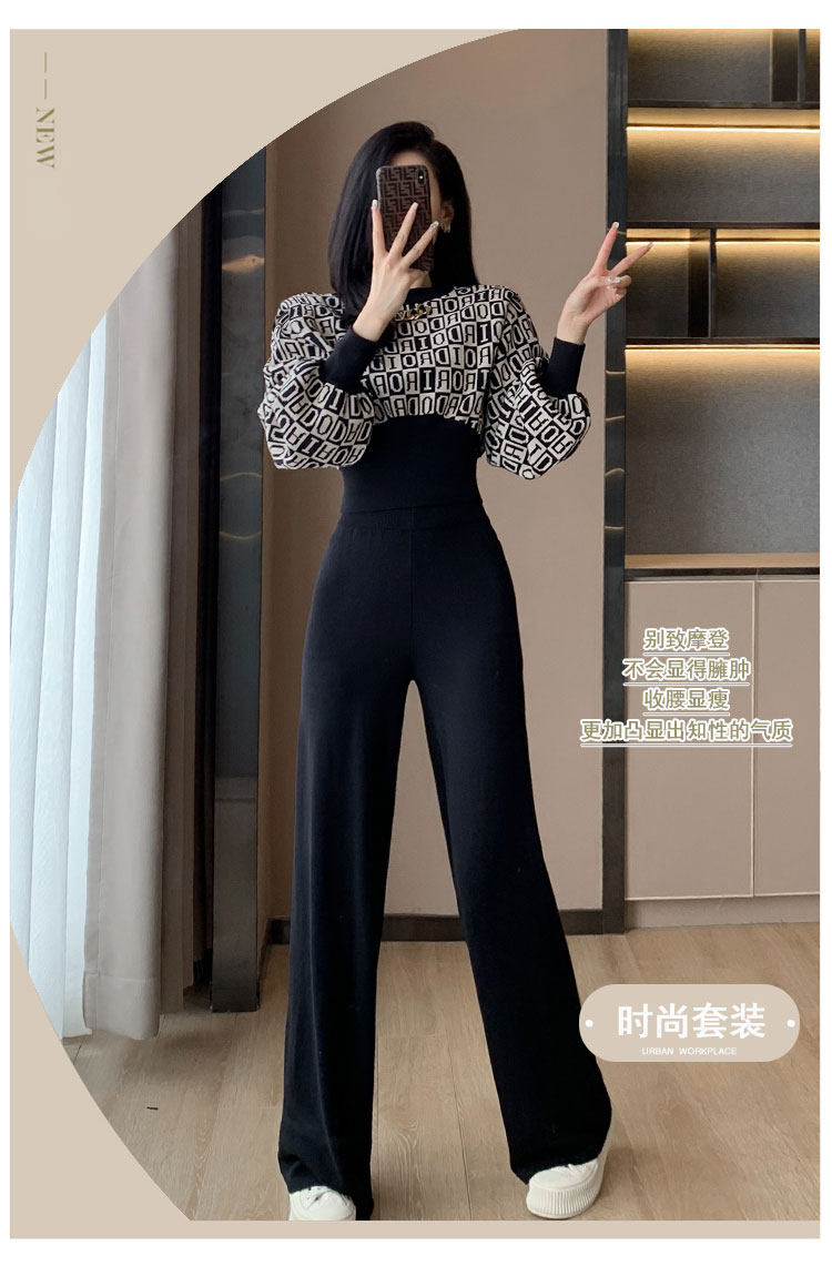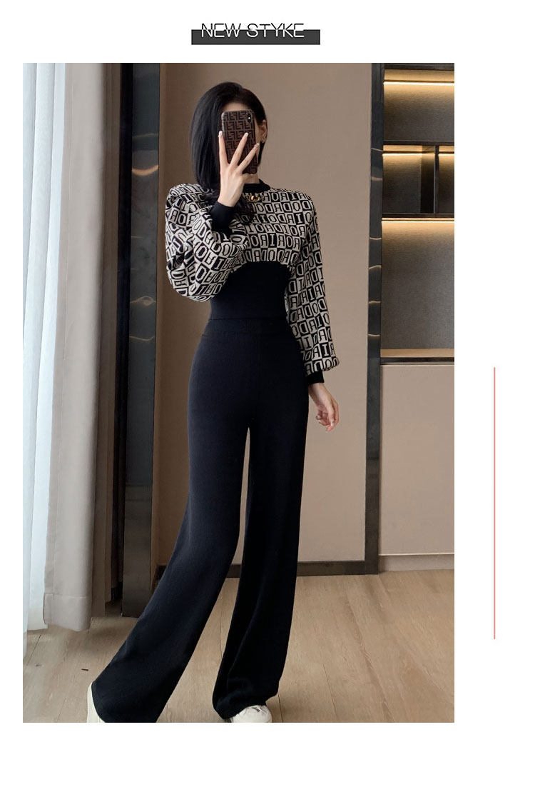 여 추동 와이드 투피스 니트 캐주얼 슈트
