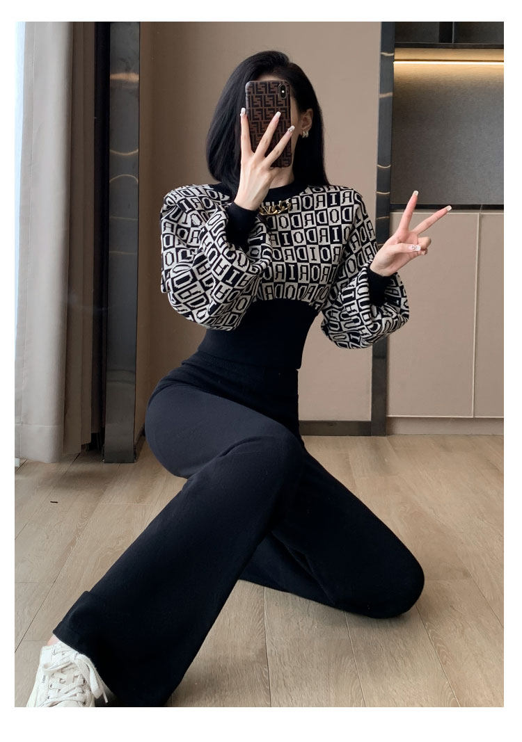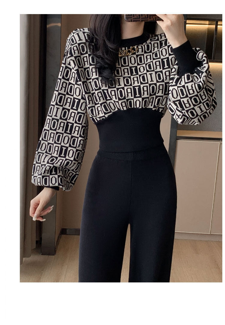 小香风针织休闲时尚套装女秋冬收腰减龄气质名媛阔腿裤两件套洋气