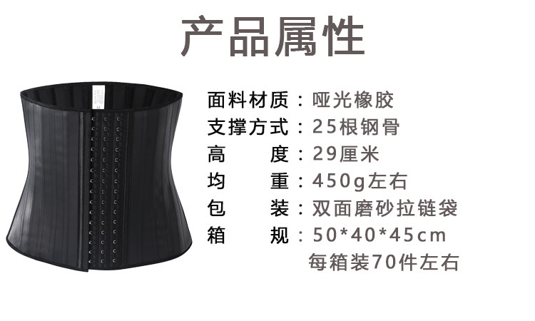 运动健身乳胶束身衣收腹束缚带塑身衣25钢骨光面橡胶束腰带Latex