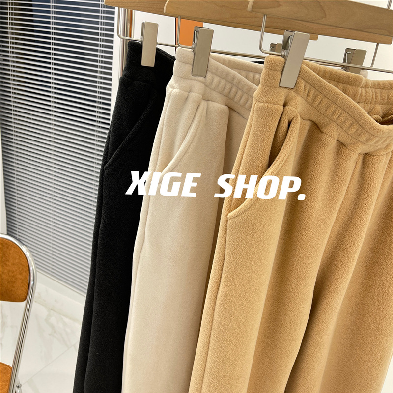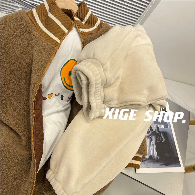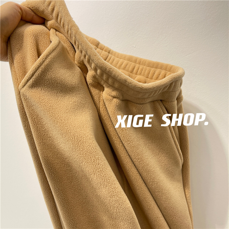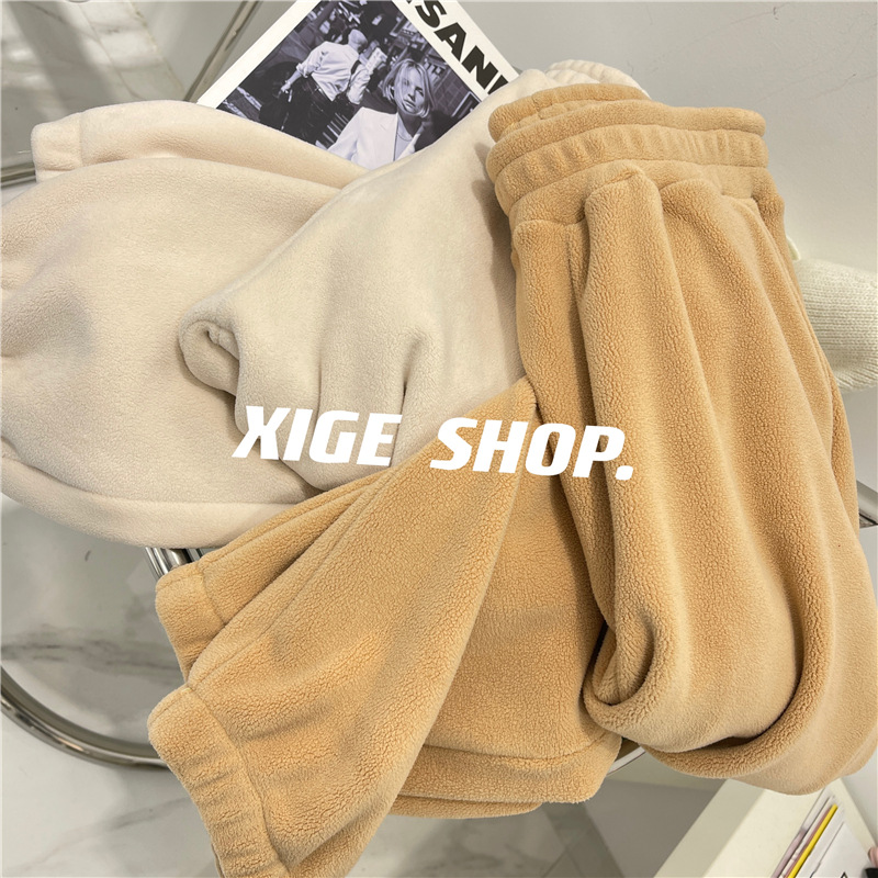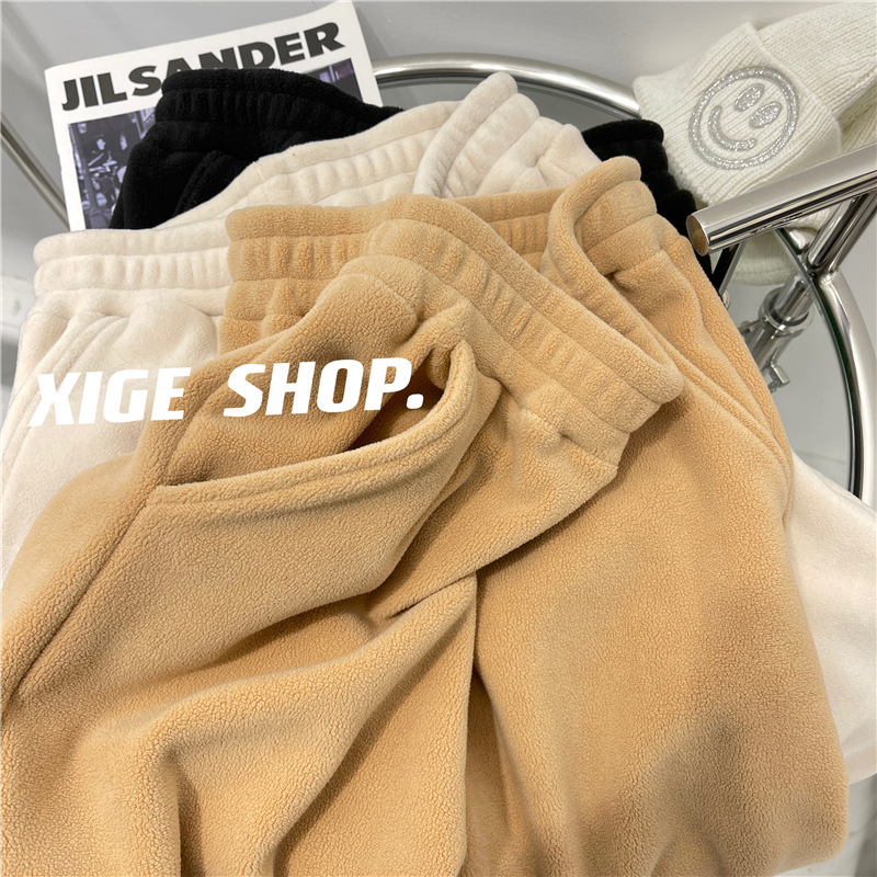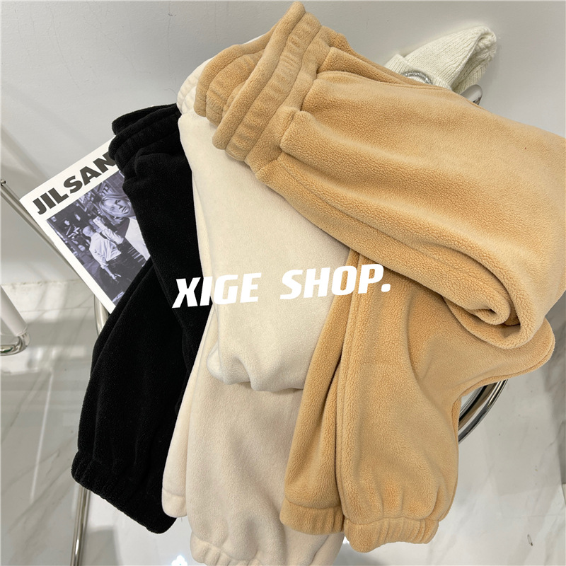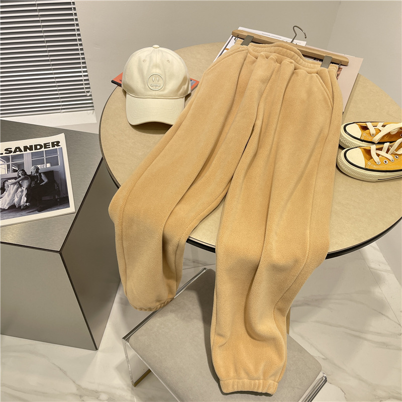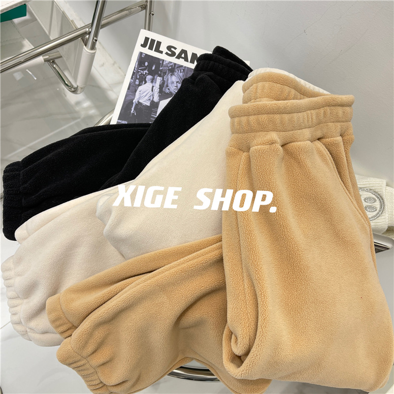 双面奥利绒运动裤女居家外穿百搭宽松加绒加厚奶茶色束脚哈伦卫裤