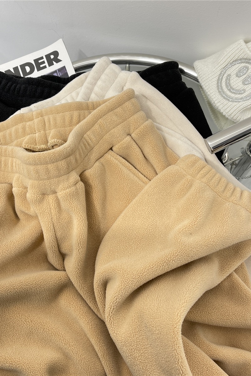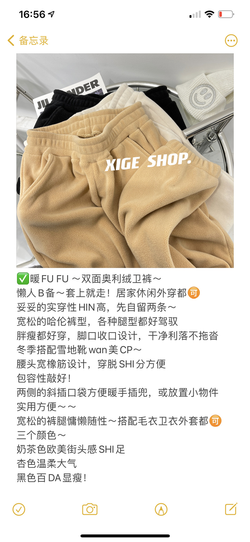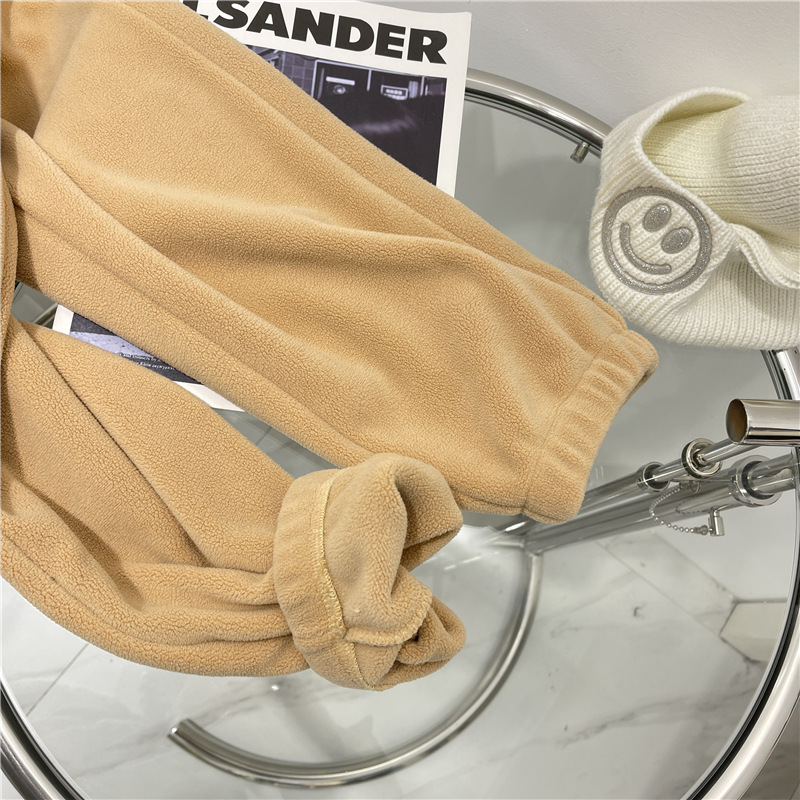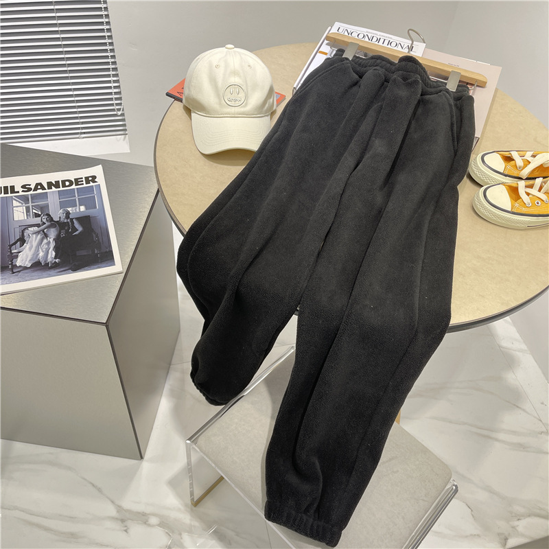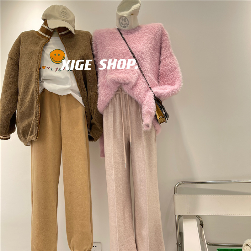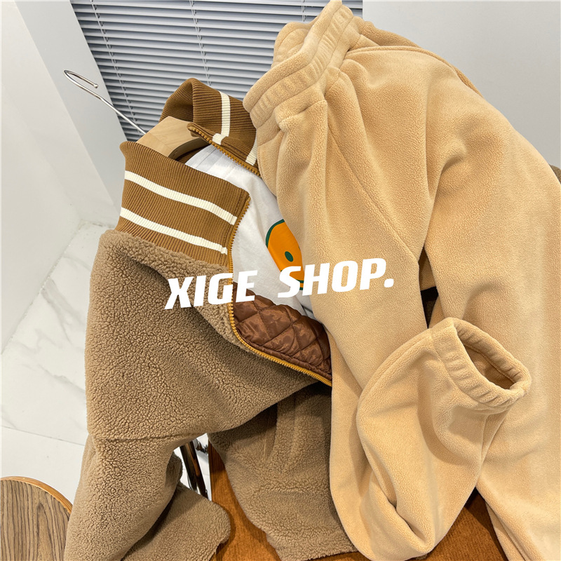 双面奥利绒运动裤女居家外穿百搭宽松加绒加厚奶茶色束脚哈伦卫裤