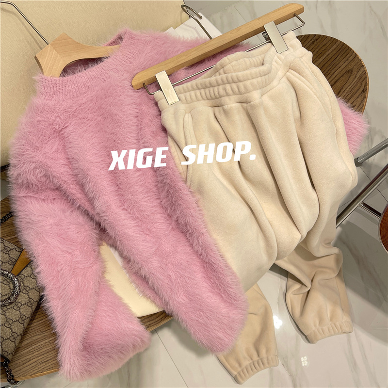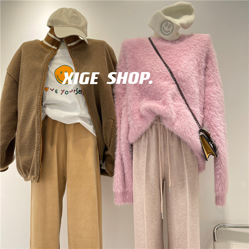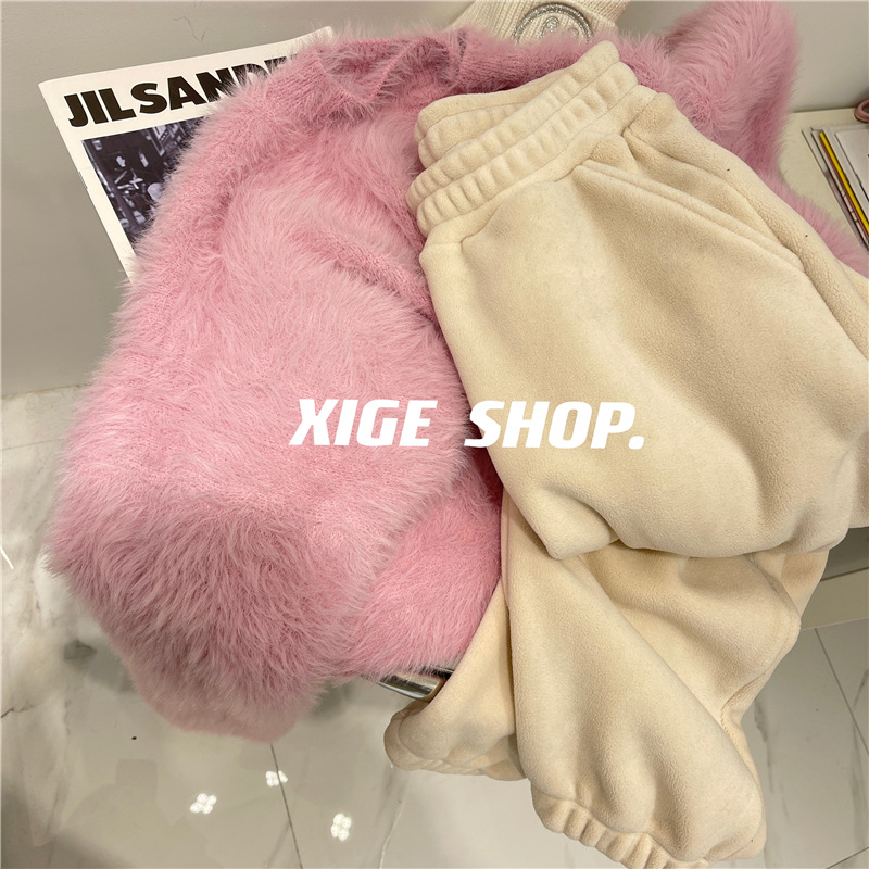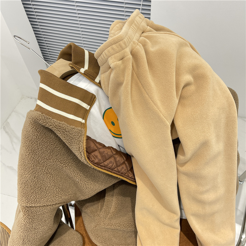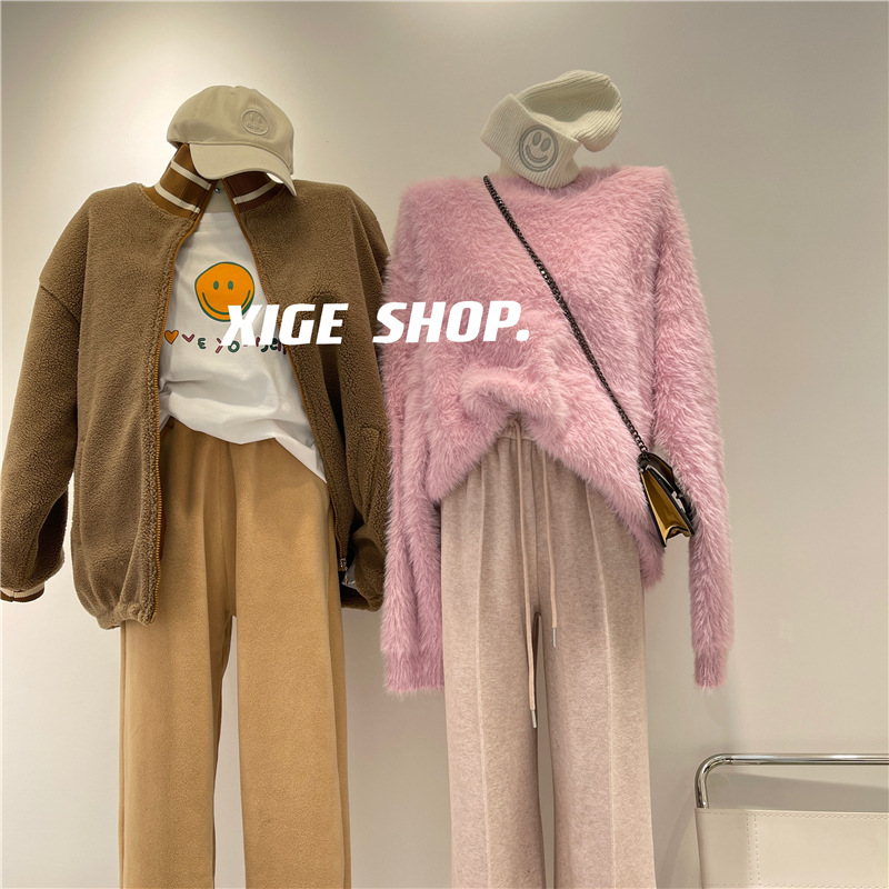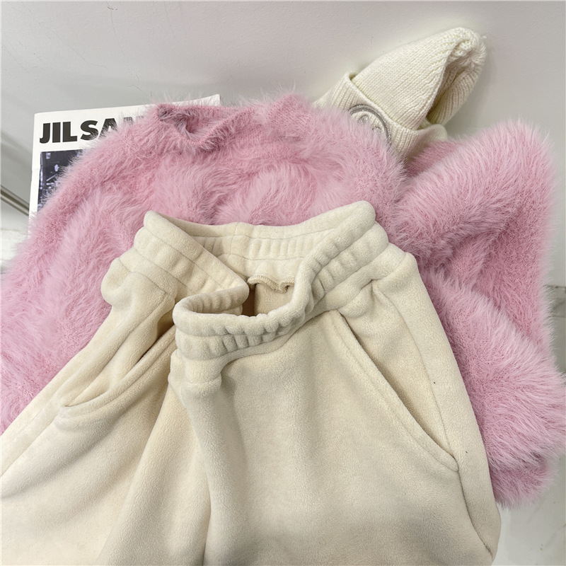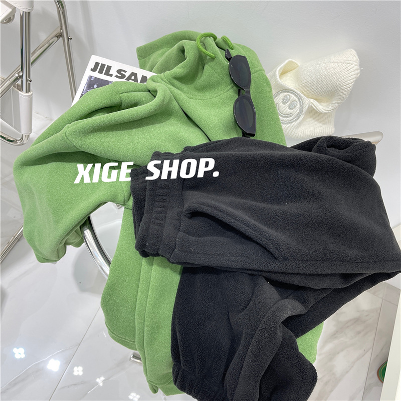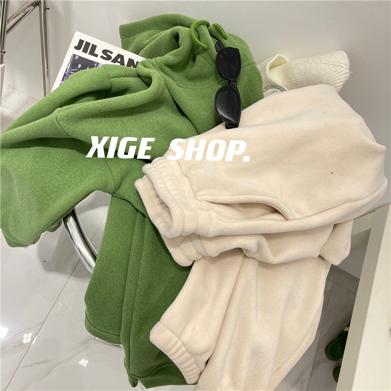 双面奥利绒运动裤女居家外穿百搭宽松加绒加厚奶茶色束脚哈伦卫裤