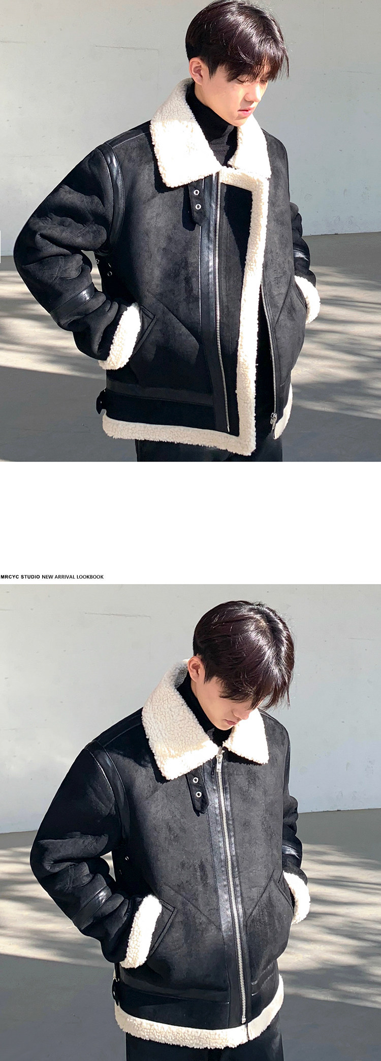 겨울 스웨이드 루즈핏 퍼 일체형 램스울 코트