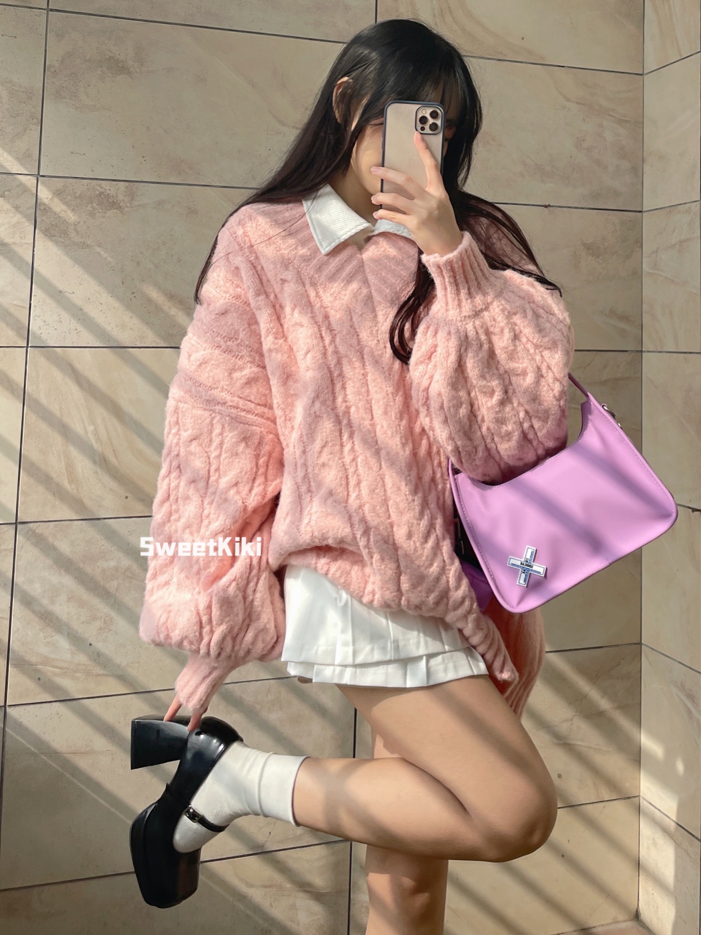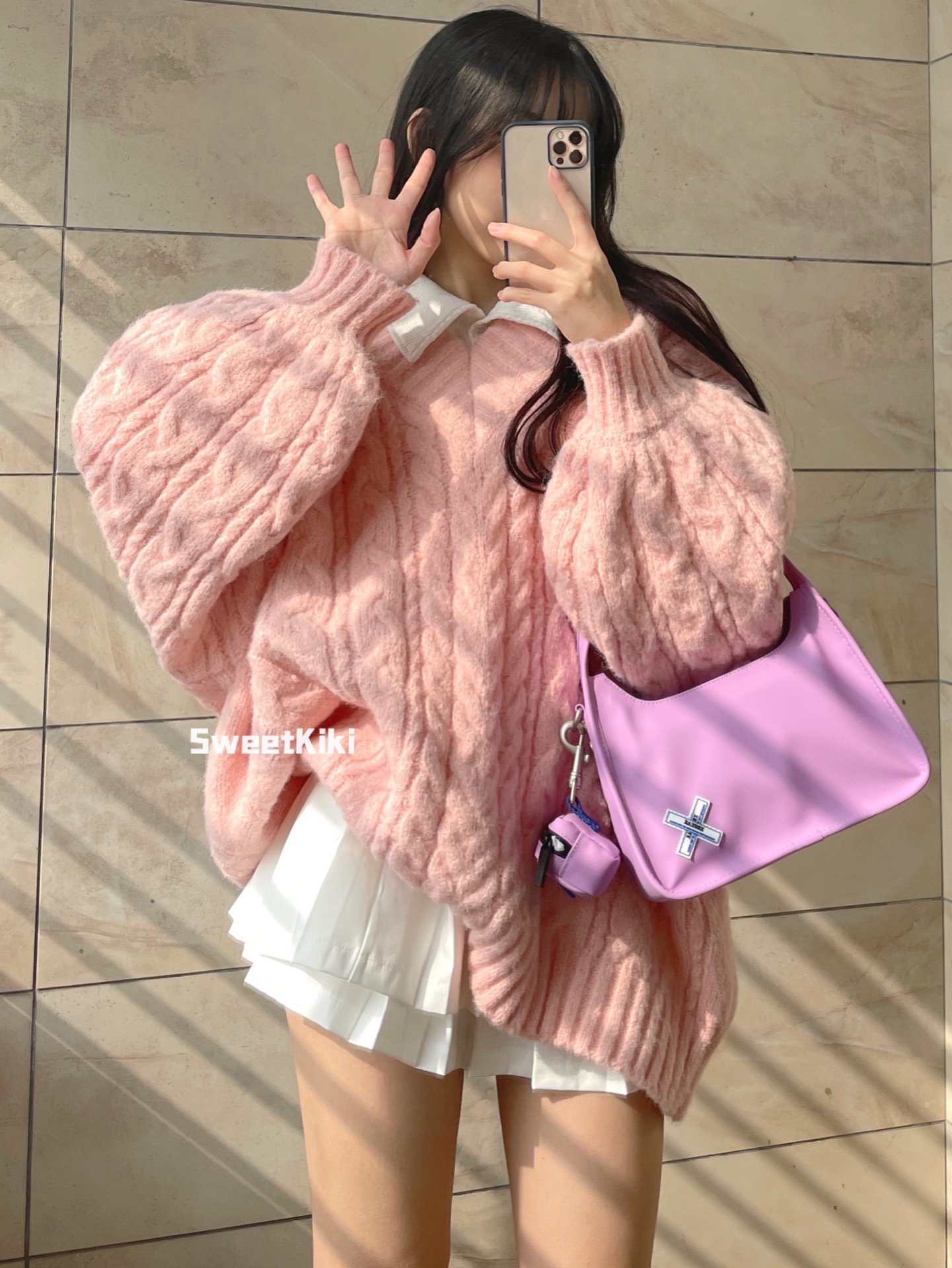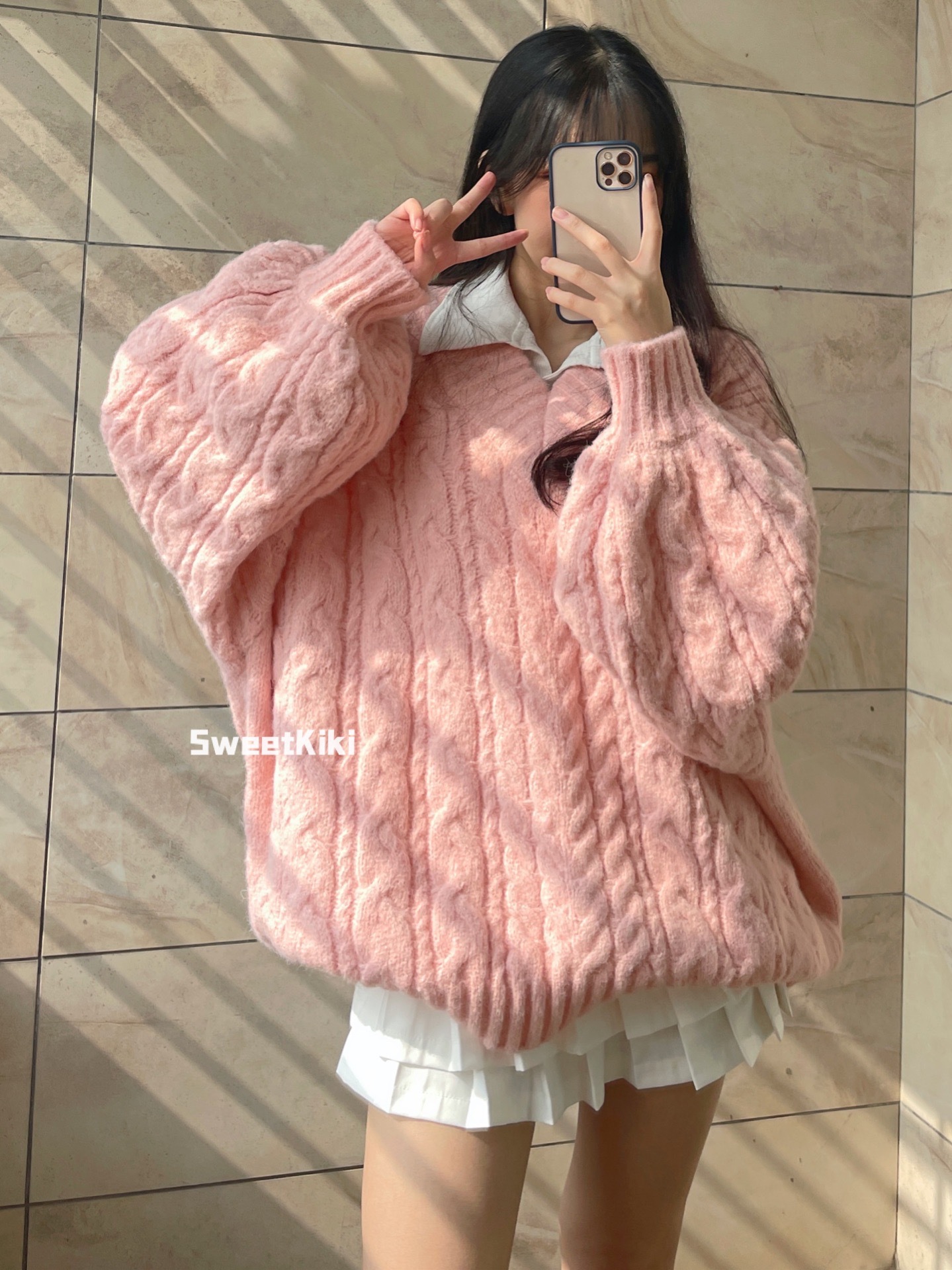 奶fufu软糯风粉色V领毛衣女秋冬软糯糯温柔慵懒风麻花针织衫上衣