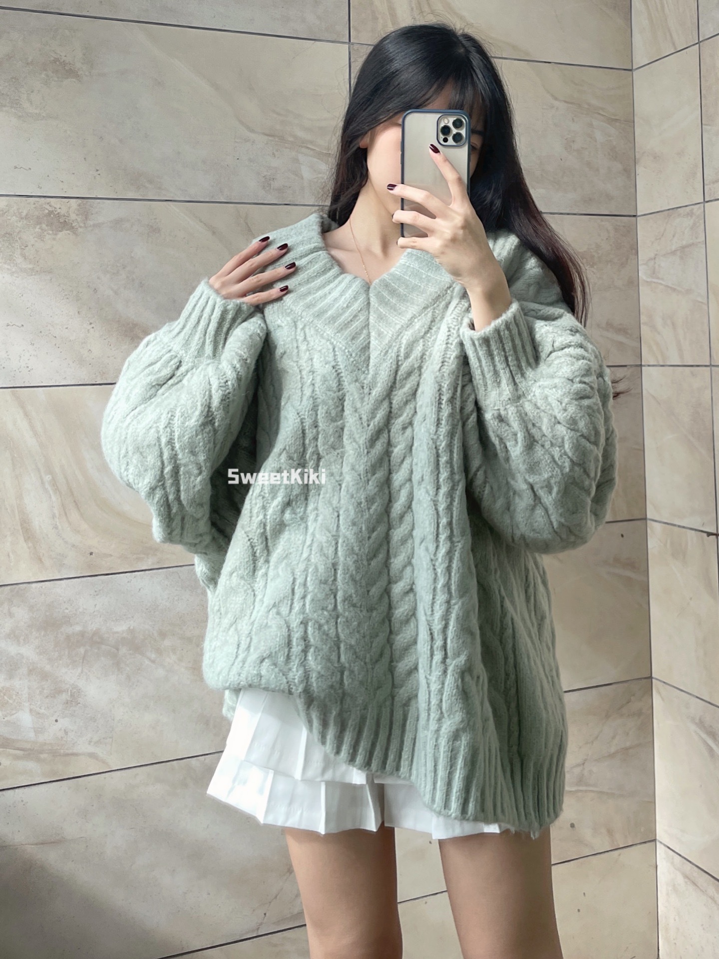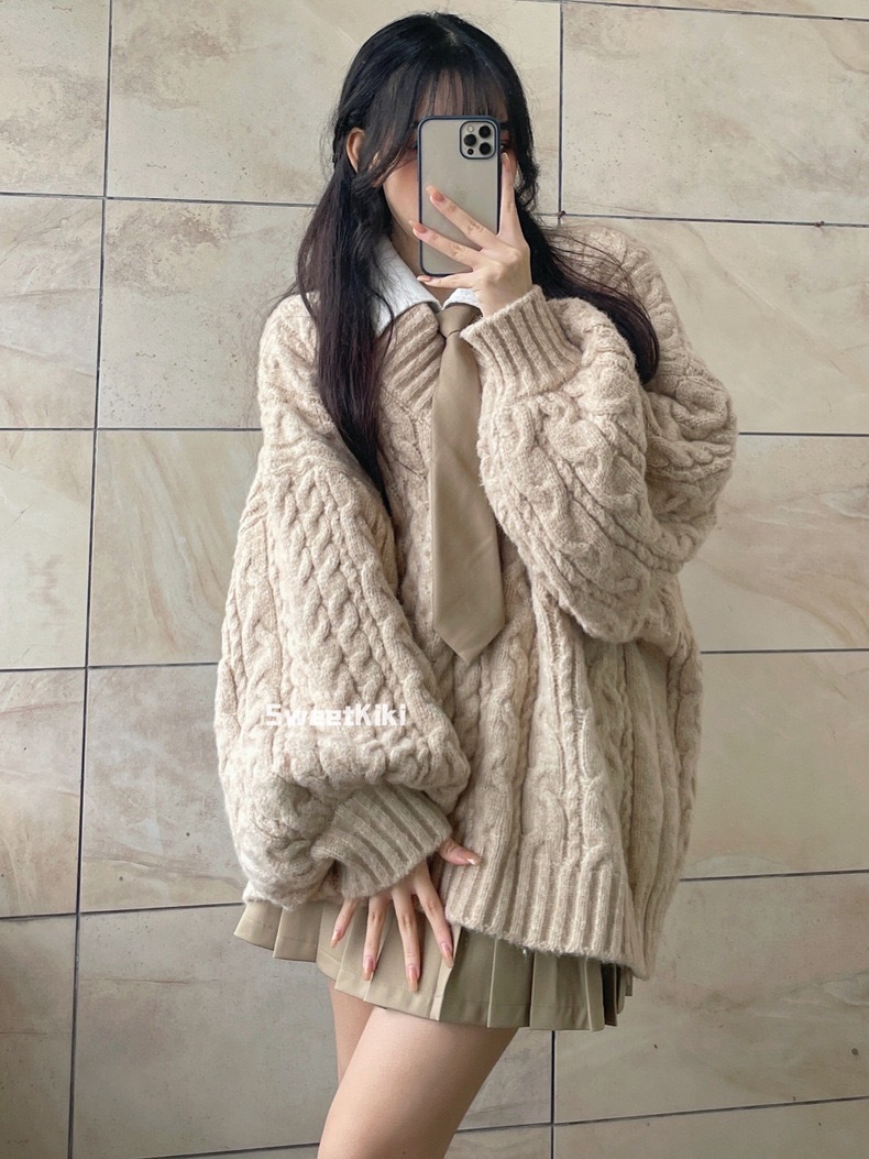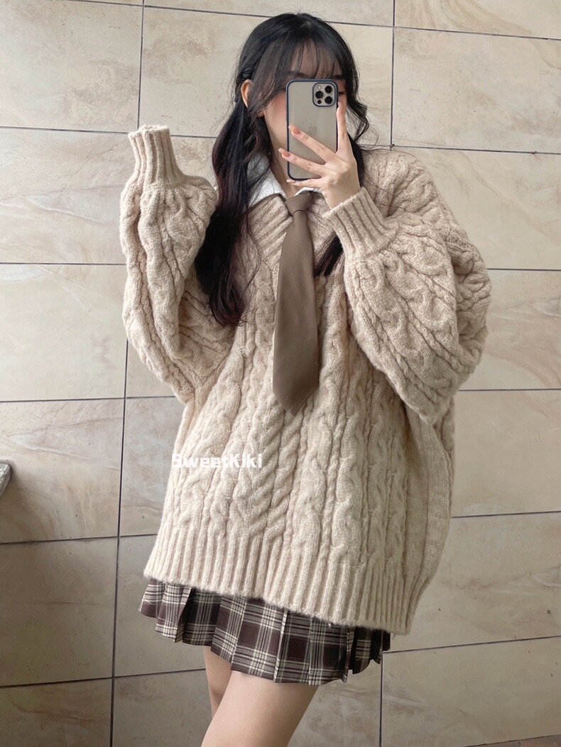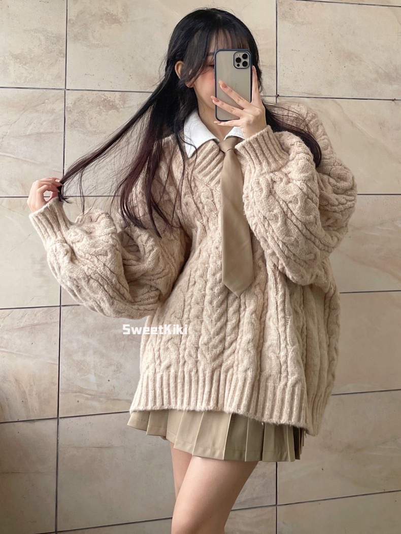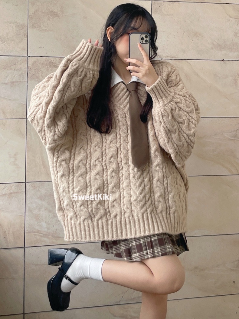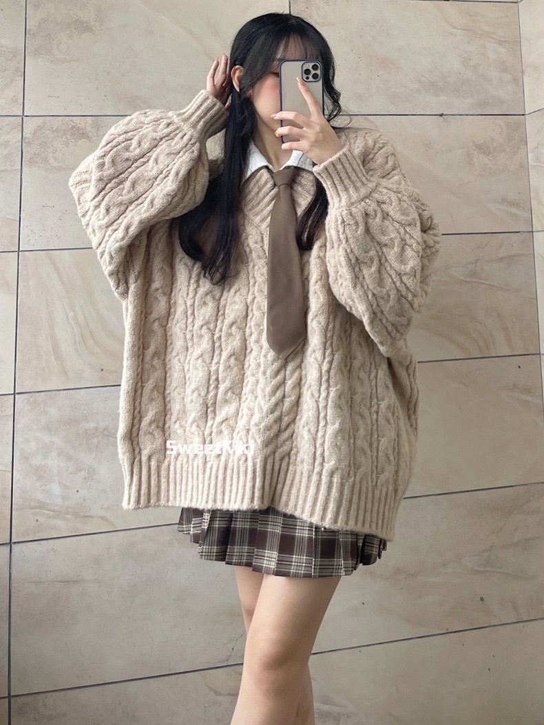 브이넥 꽈배기 니트 스웨터 여