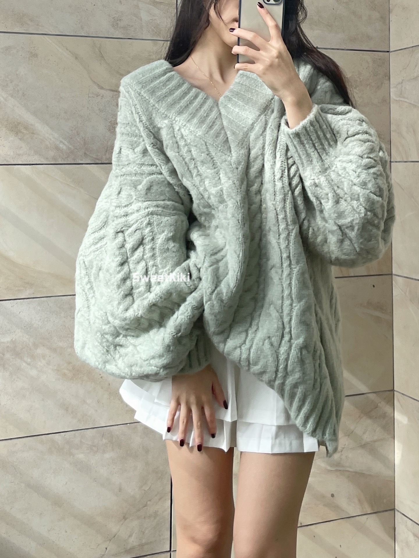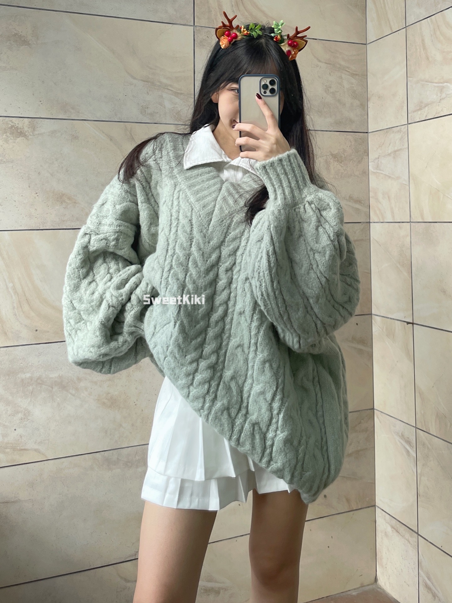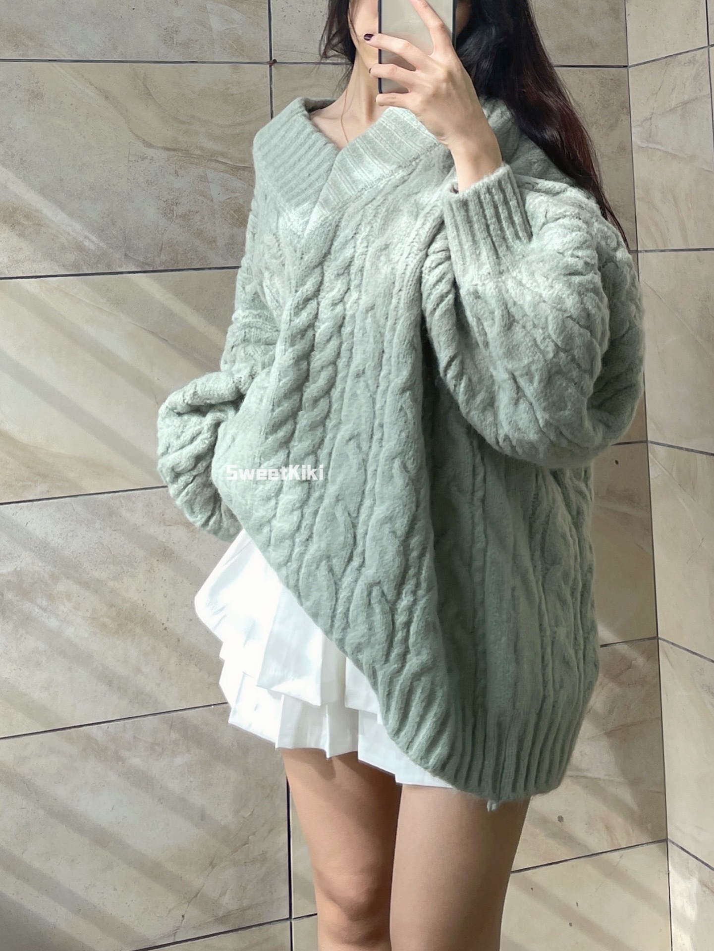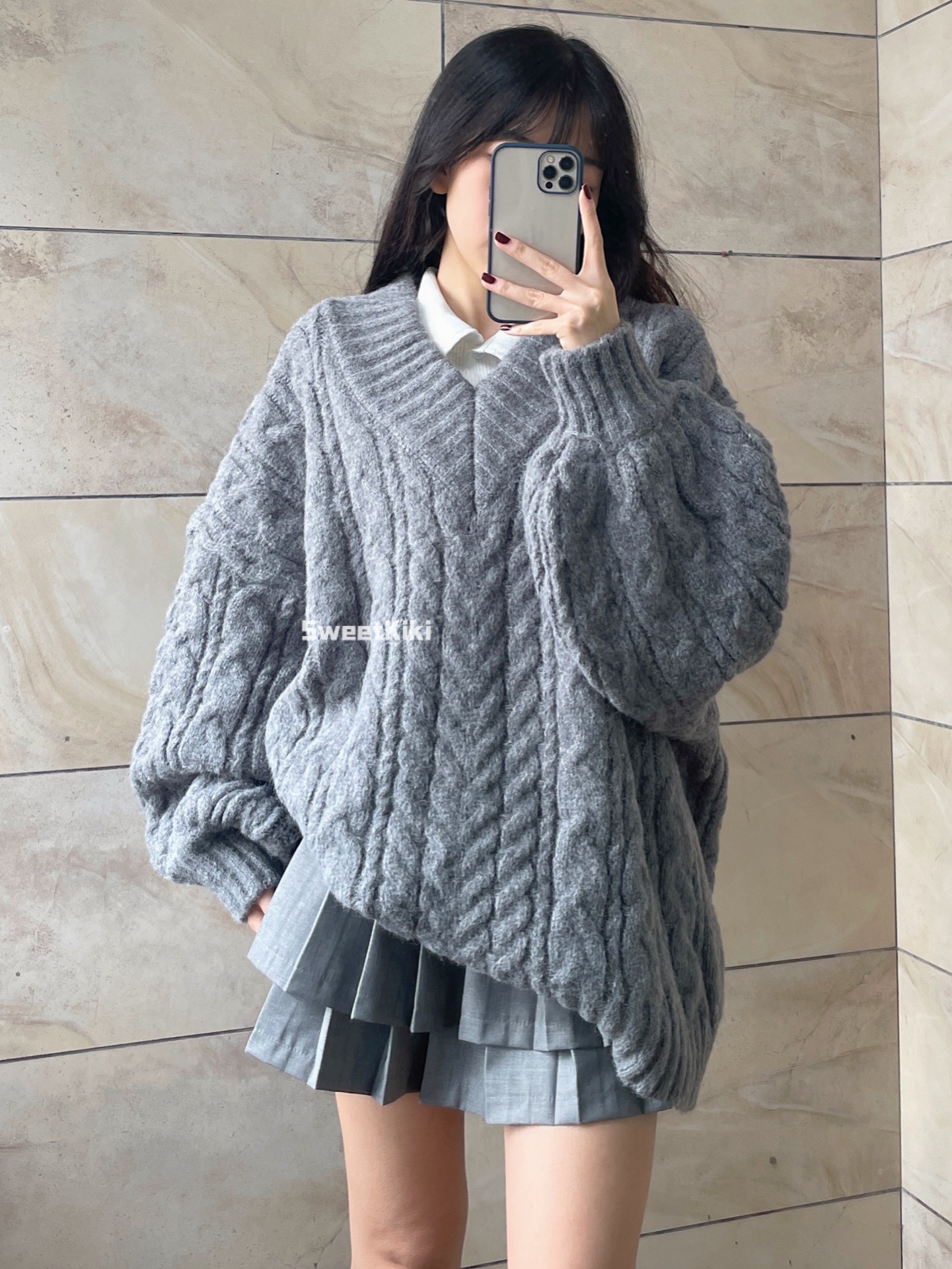 브이넥 꽈배기 니트 스웨터 여
