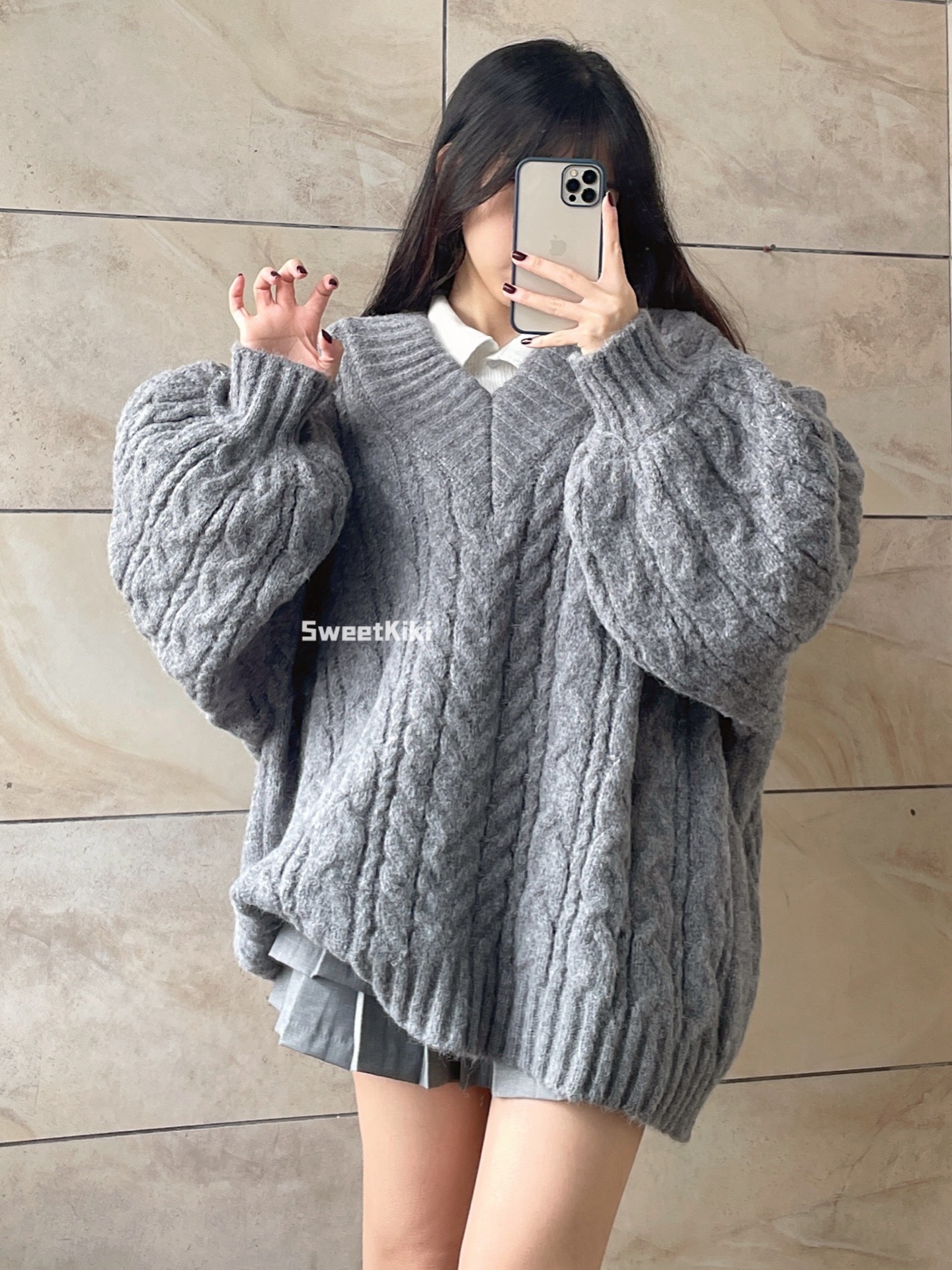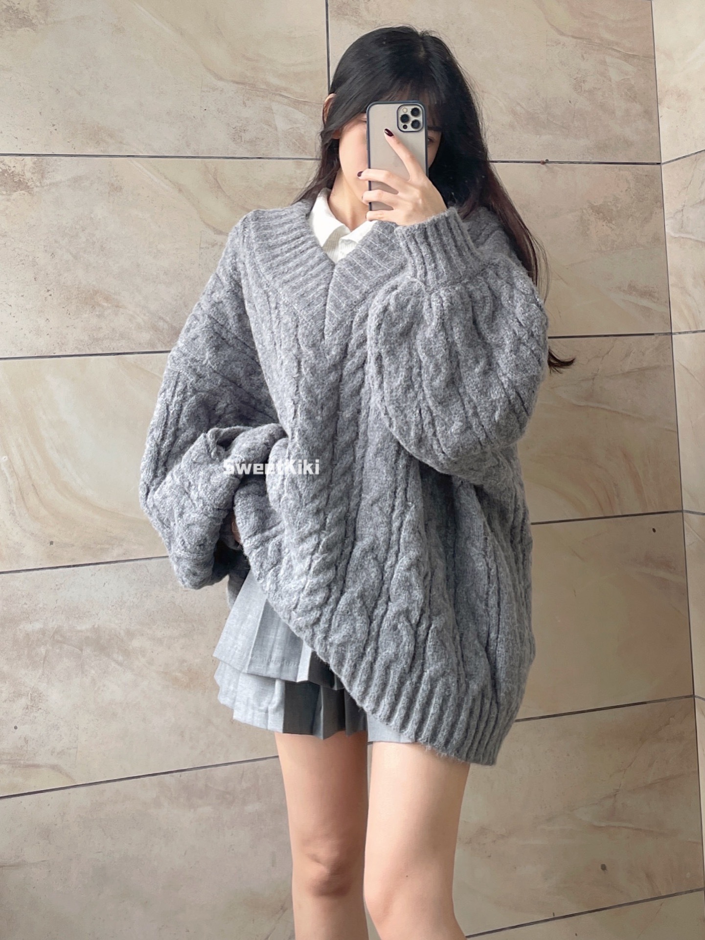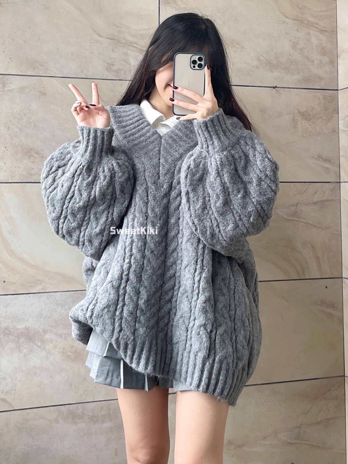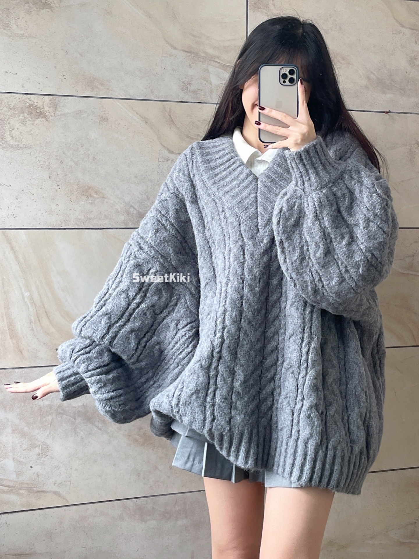 브이넥 꽈배기 니트 스웨터 여