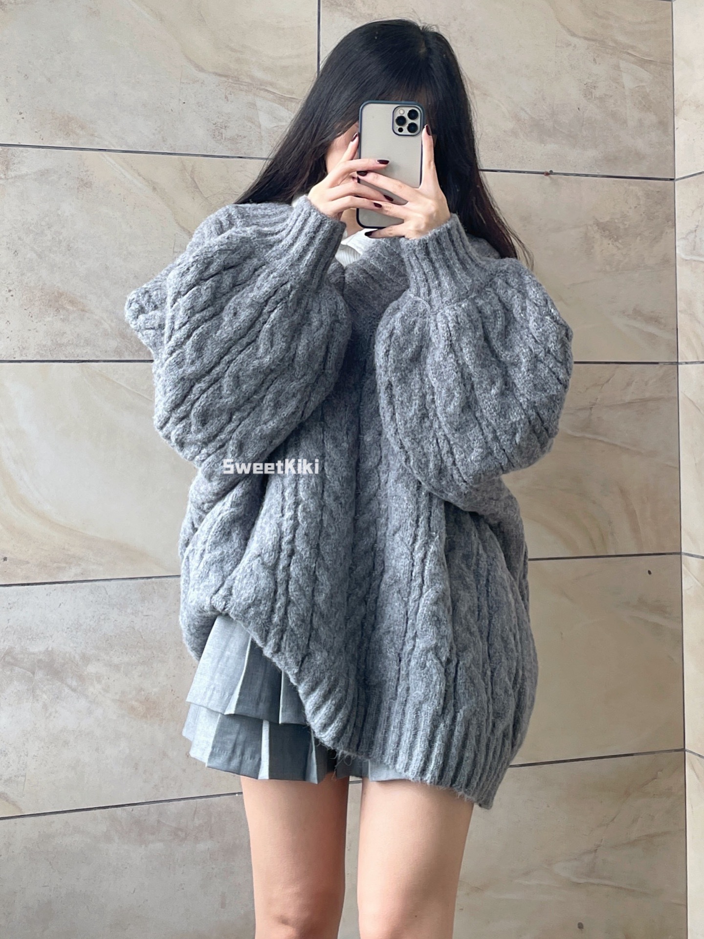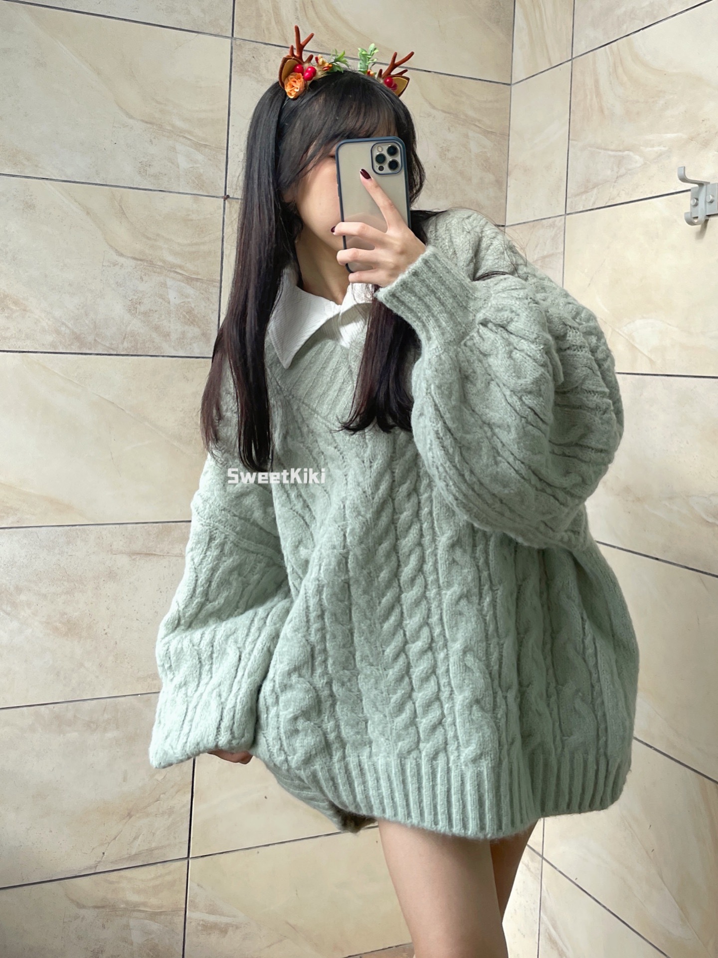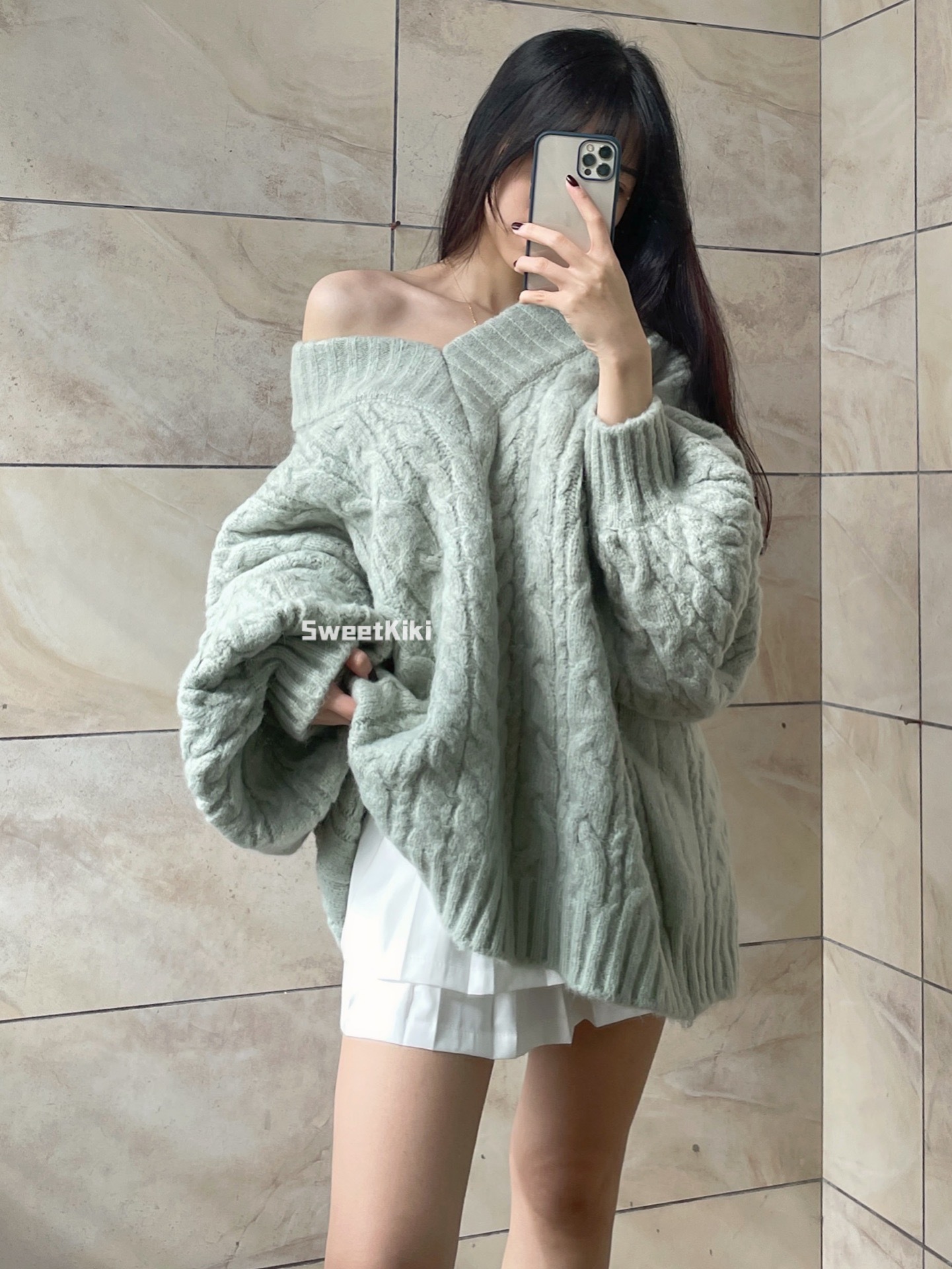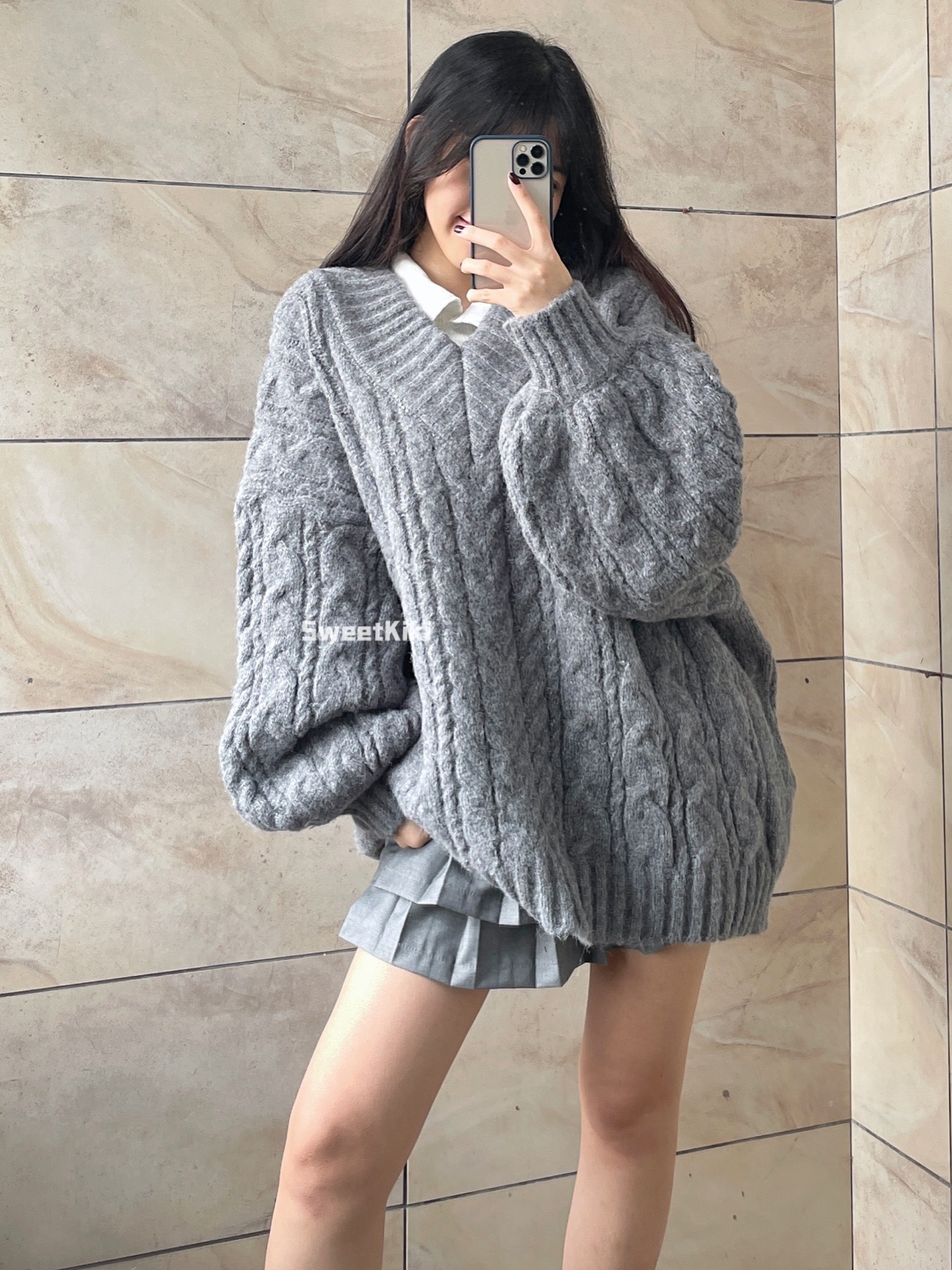 브이넥 꽈배기 니트 스웨터 여