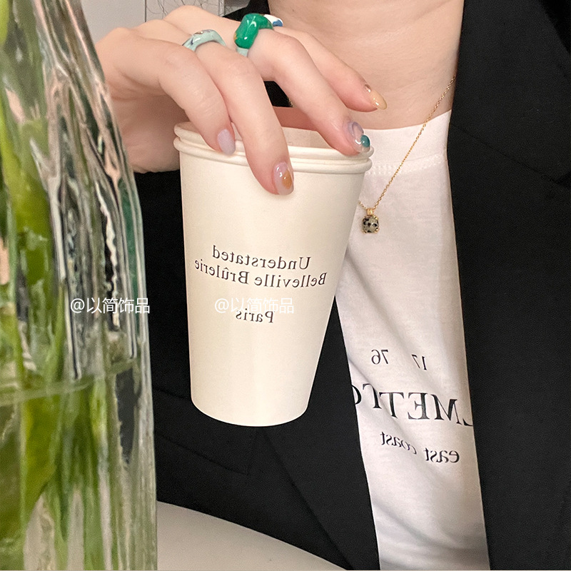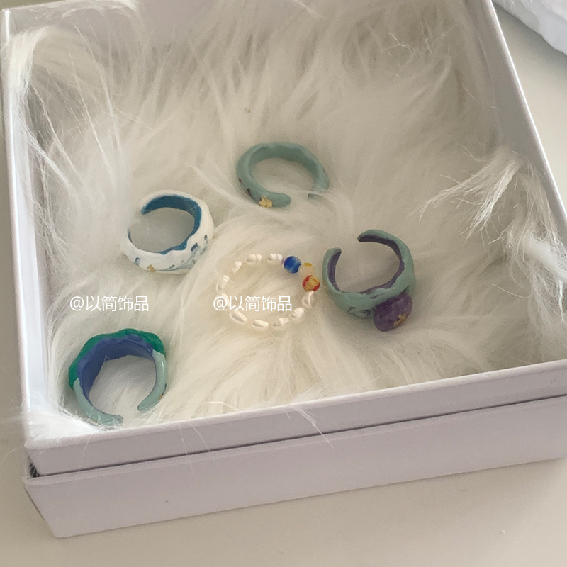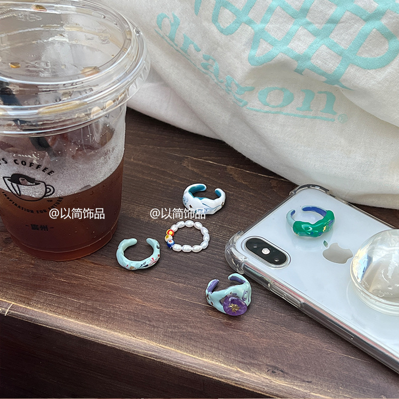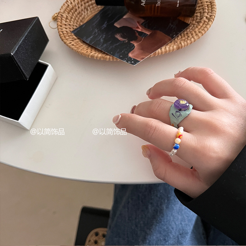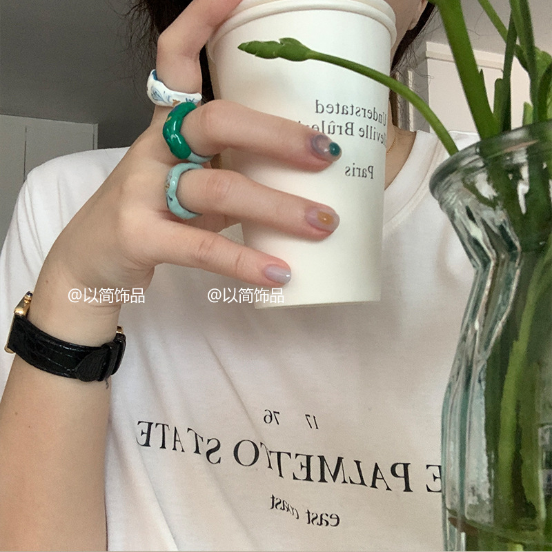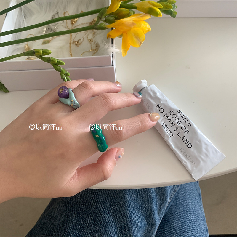 cafeorme高级感小众设计滴油开口叠带个性拼色镶嵌情侣指环戒指