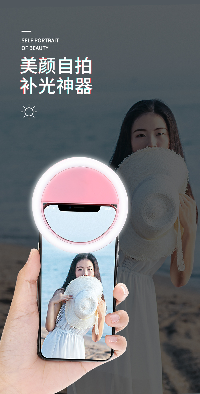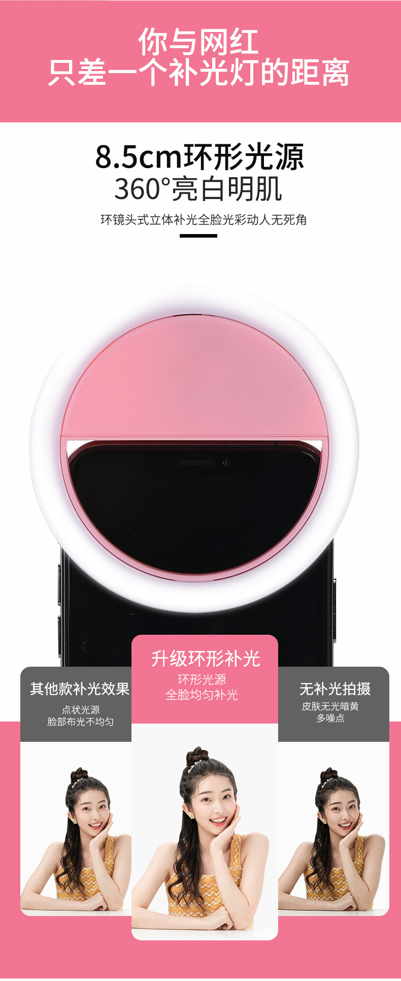 圆环形手机补光灯 充电自拍灯LED闪光灯RK12美颜主播直播印字LOGO