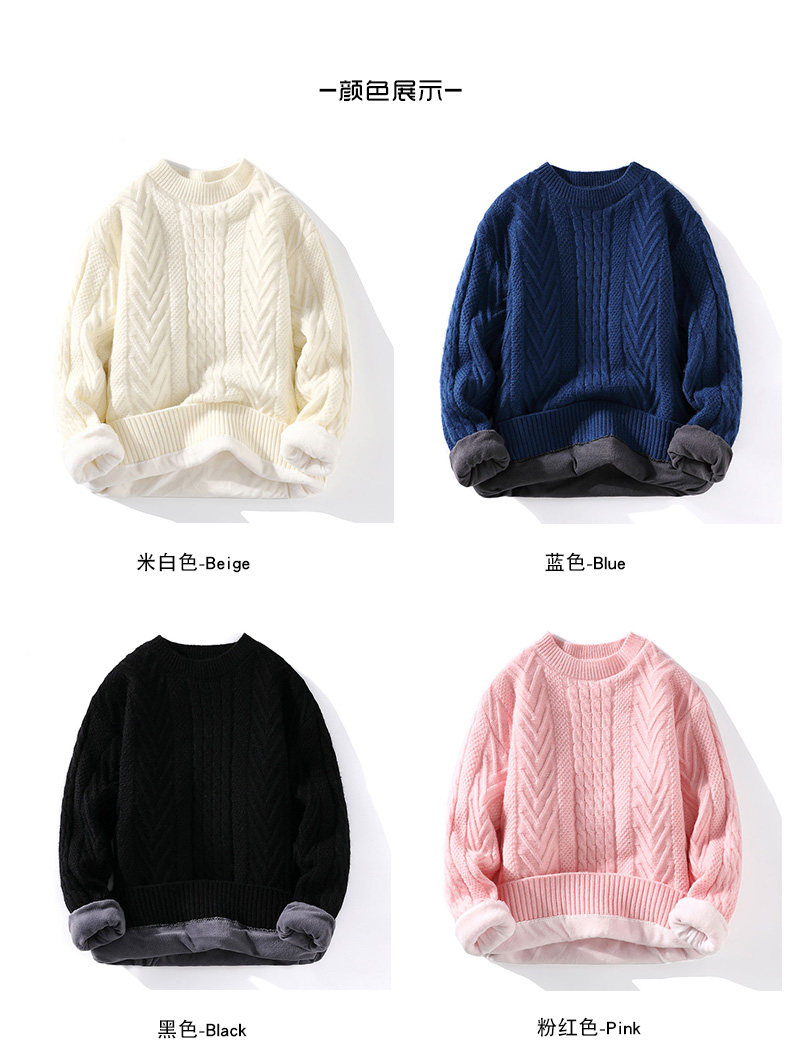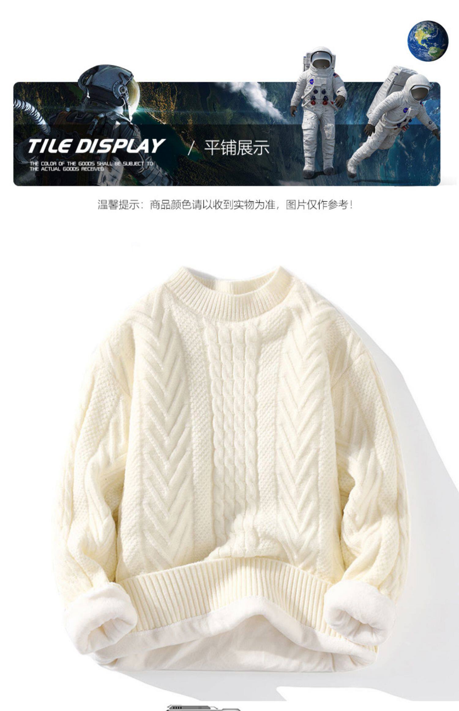 NASA纯色针织毛衣男款冬季外套潮牌ins学生加绒加厚保暖情侣线衣