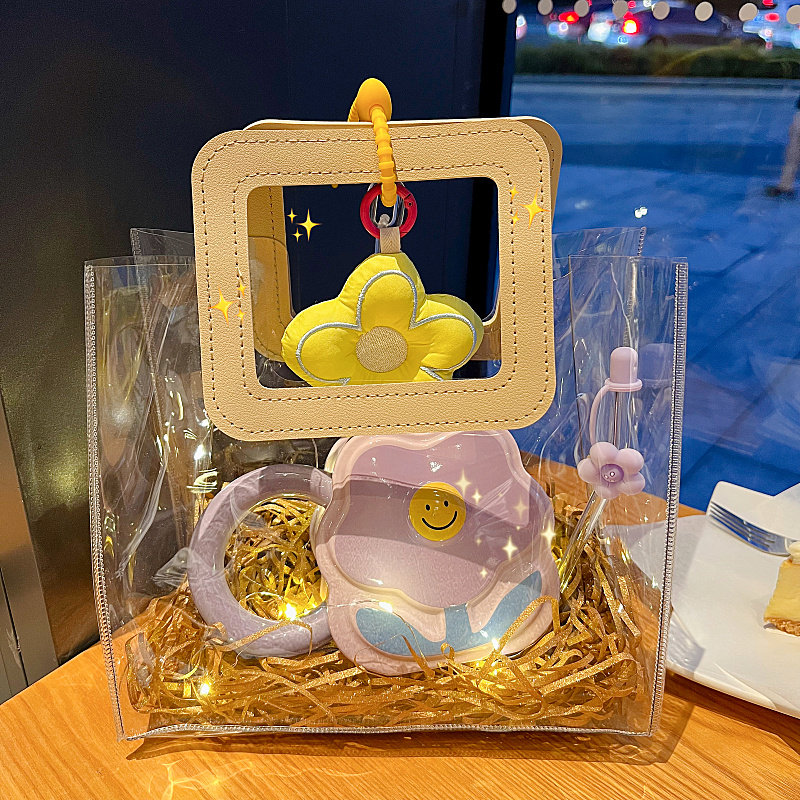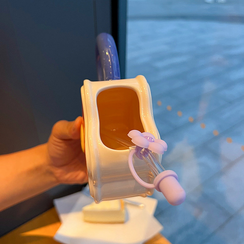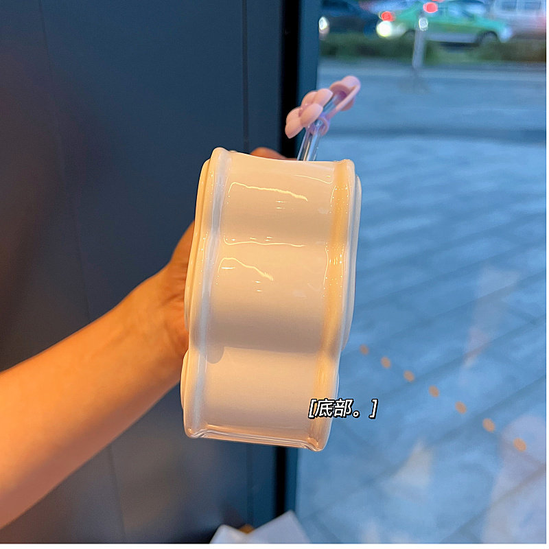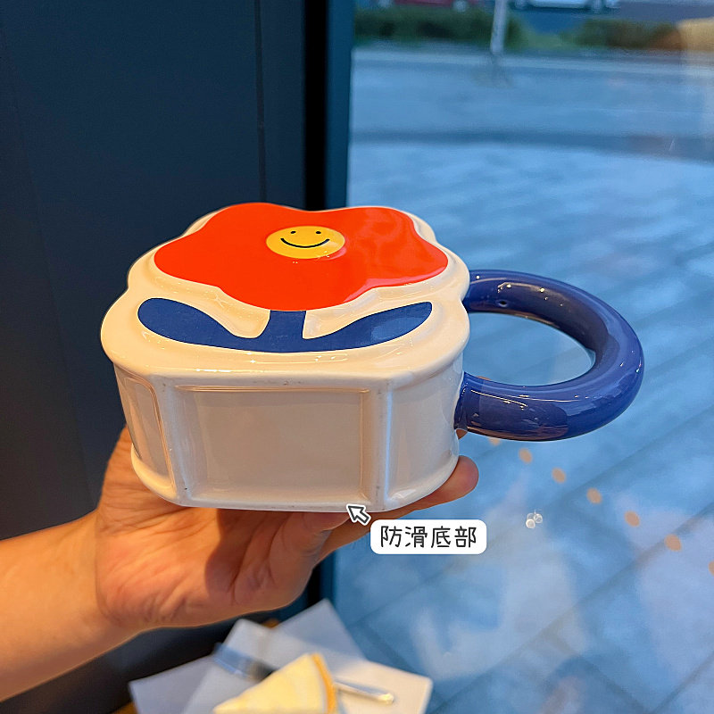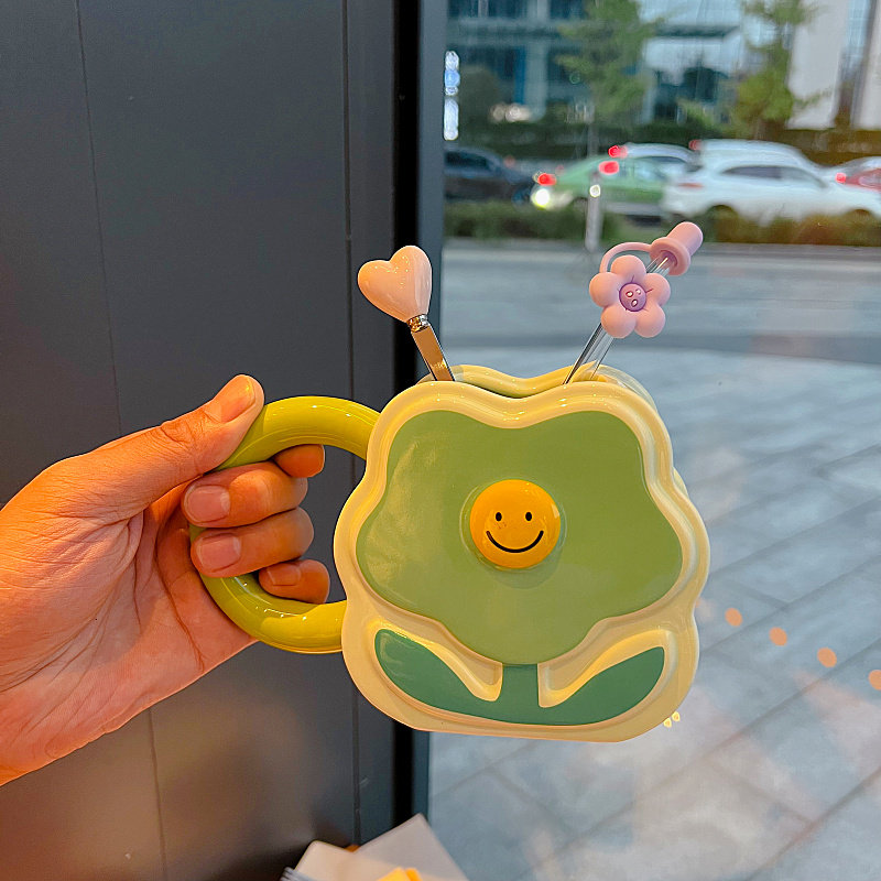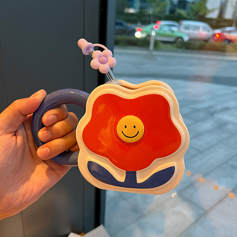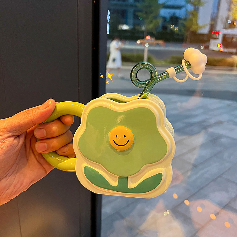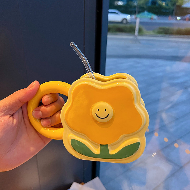 ins可爱花朵高颜值水杯子少女心学生带吸管陶瓷杯创意清新马克杯