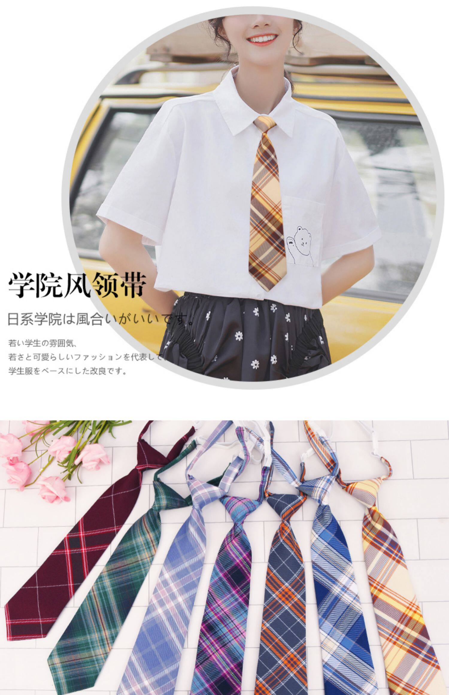 JK小领带女学院风懒人日系格子制服衬衫领结学生ins男女潮免打短