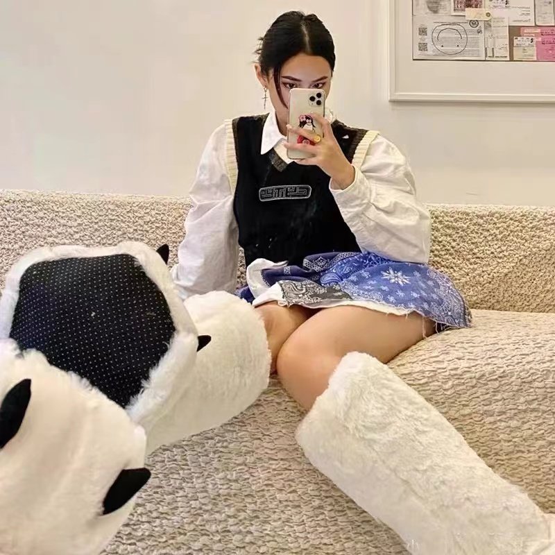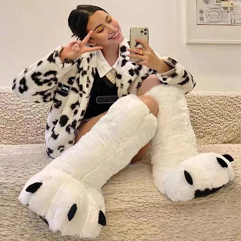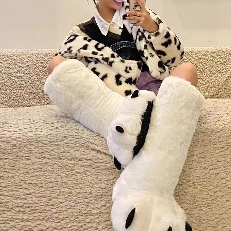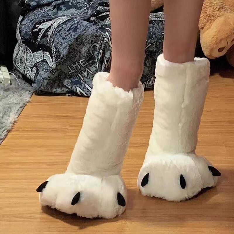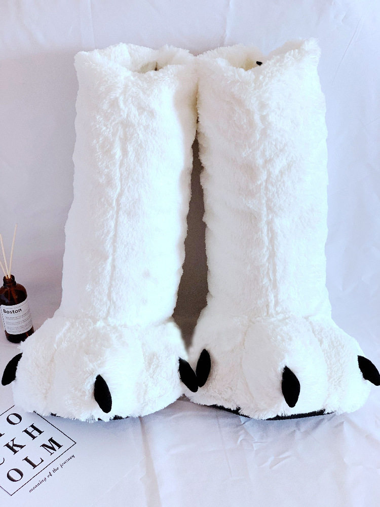 超高帮靴熊爪搞怪大棉拖鞋冬包跟棉居家室内地板保暖兽爪拖鞋地板