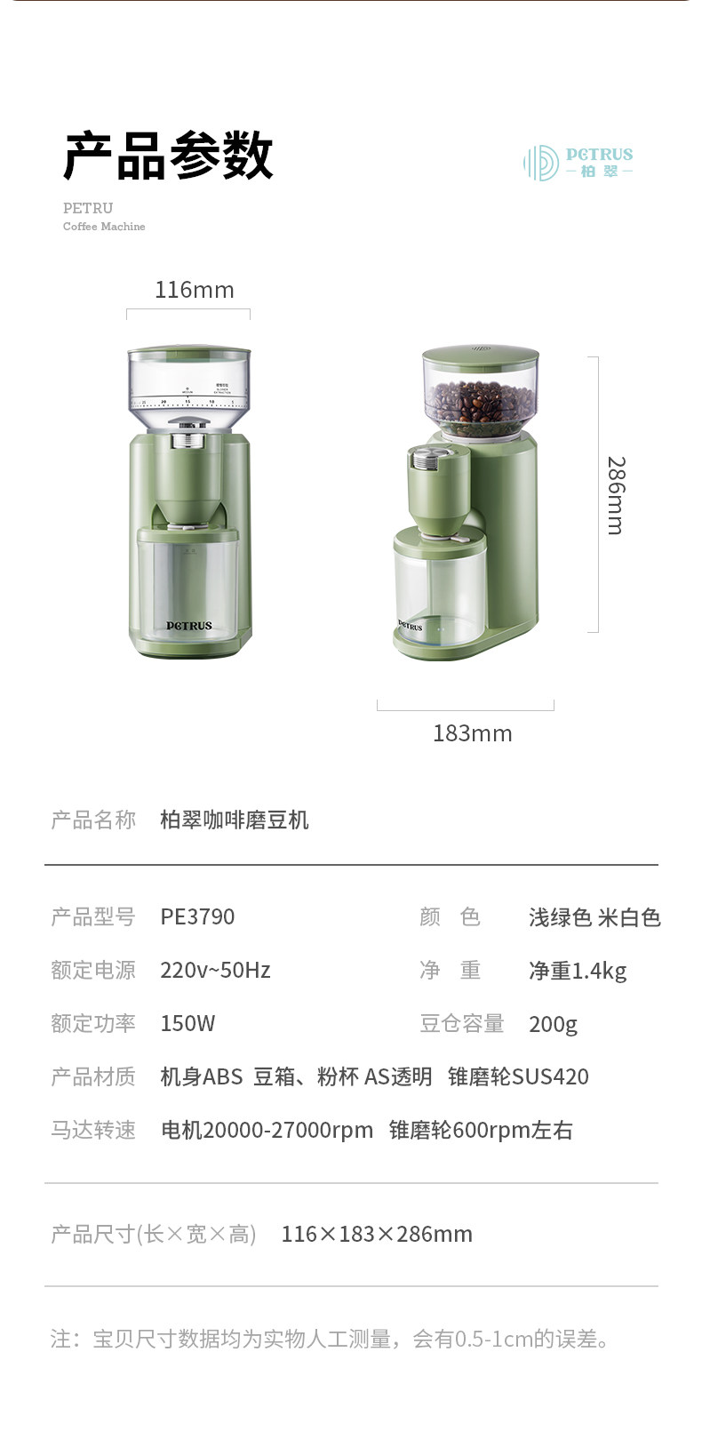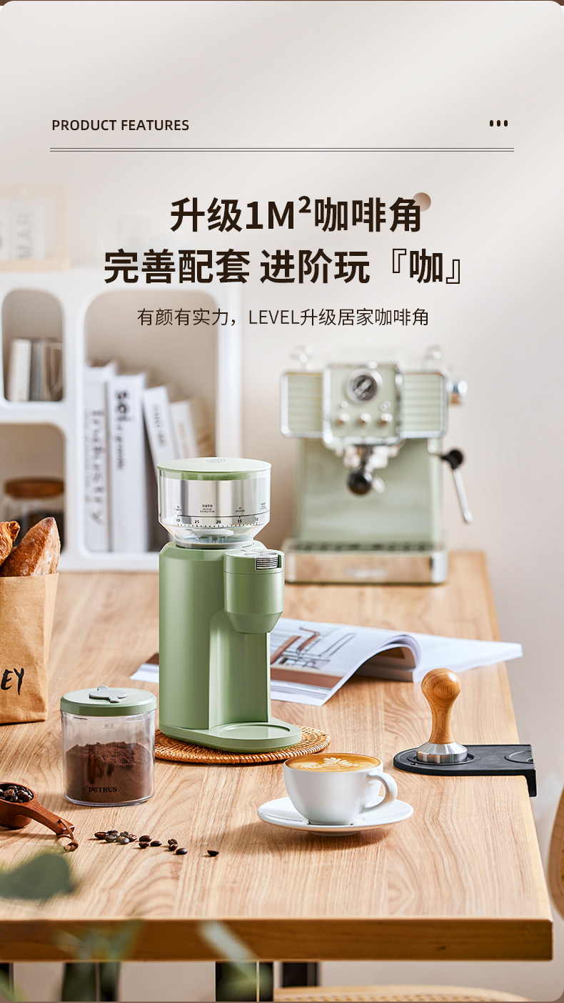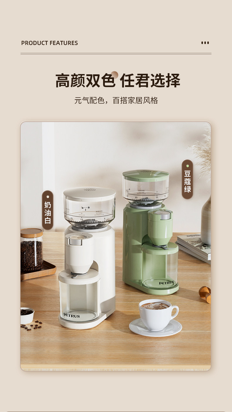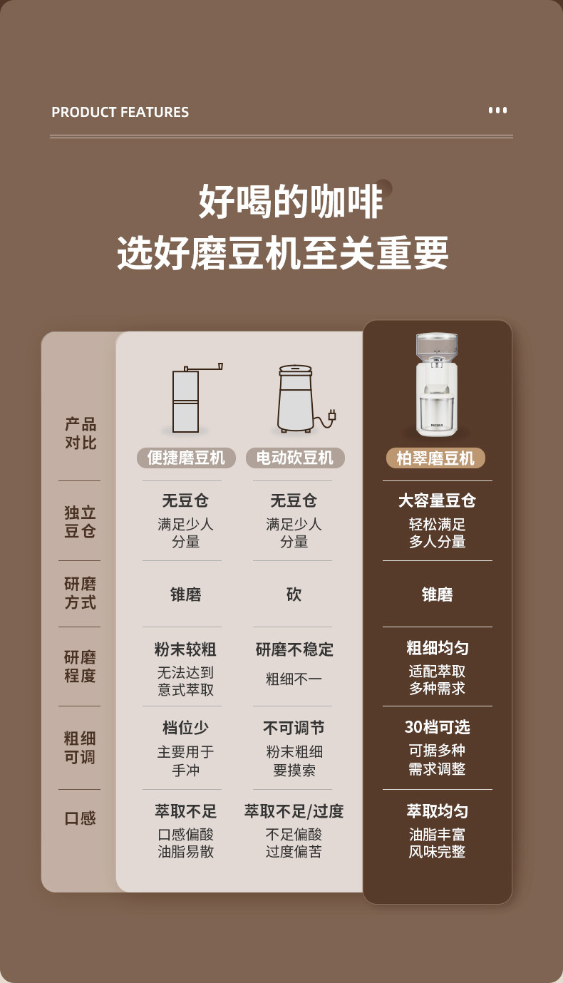 柏翠PE3790电动磨豆机咖啡豆研磨机手冲意式磨粉器家用小型手摇
