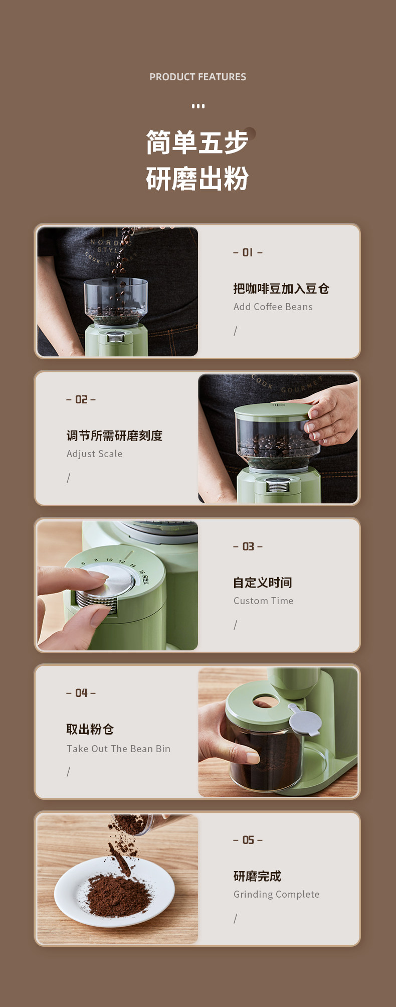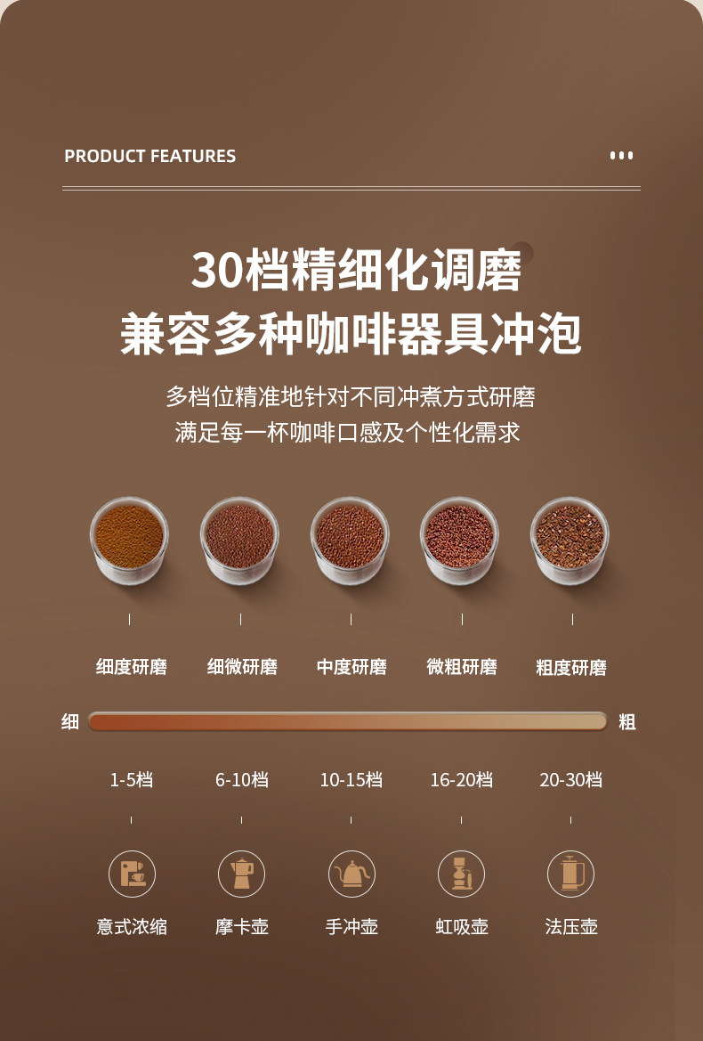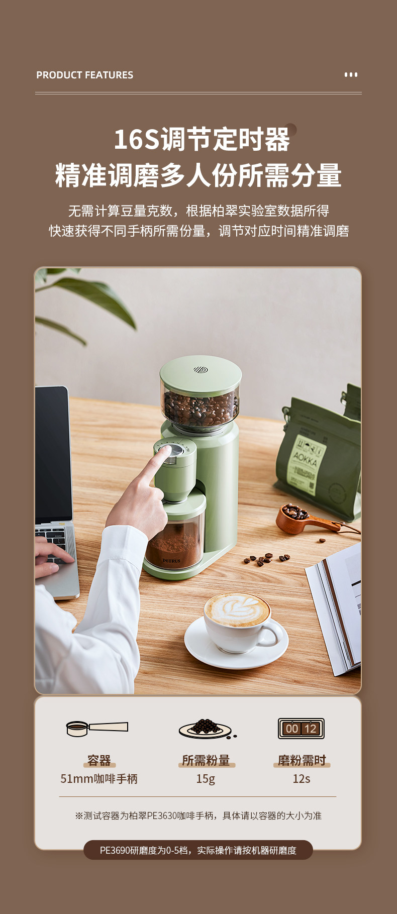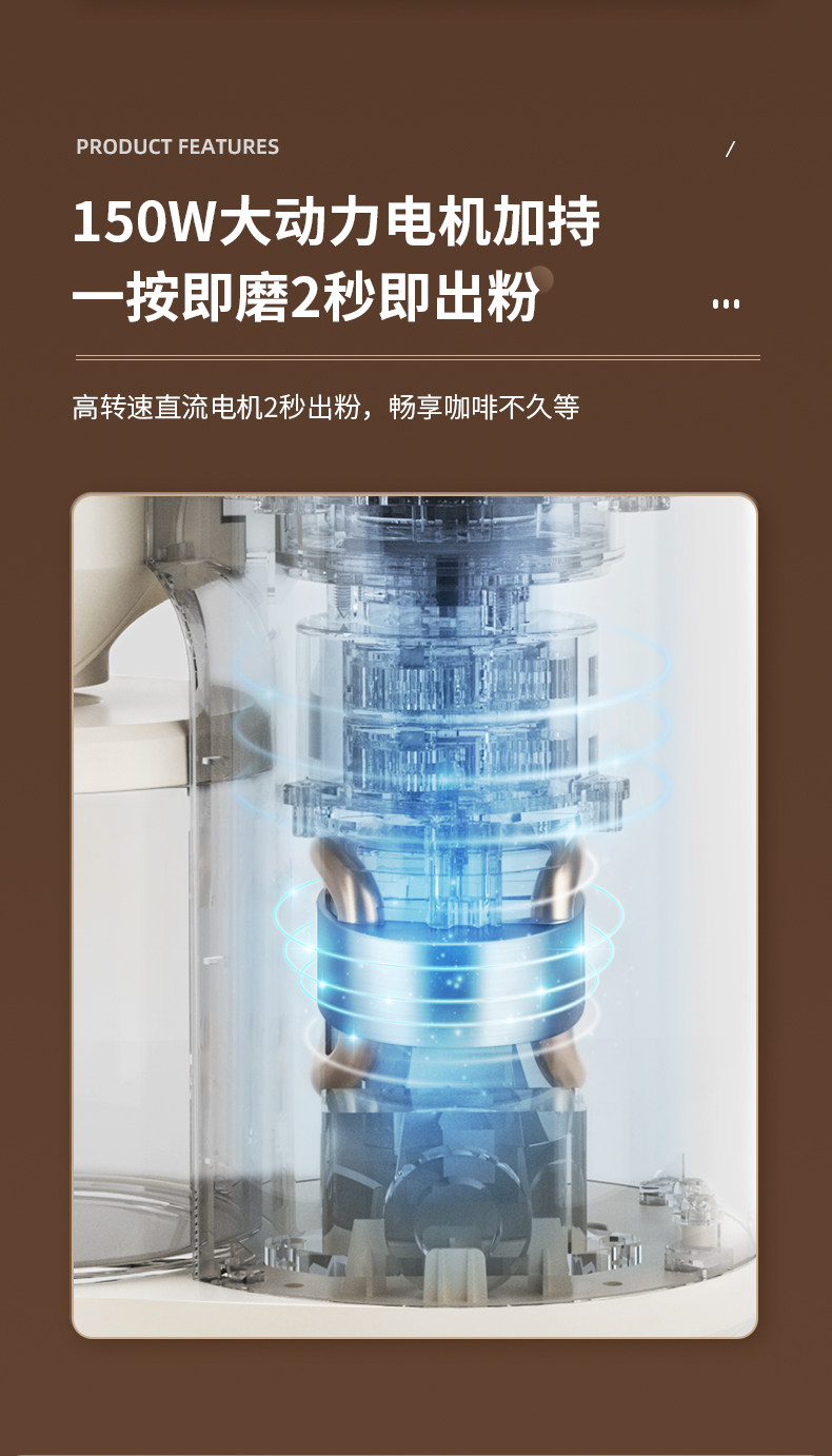柏翠PE3790电动磨豆机咖啡豆研磨机手冲意式磨粉器家用小型手摇