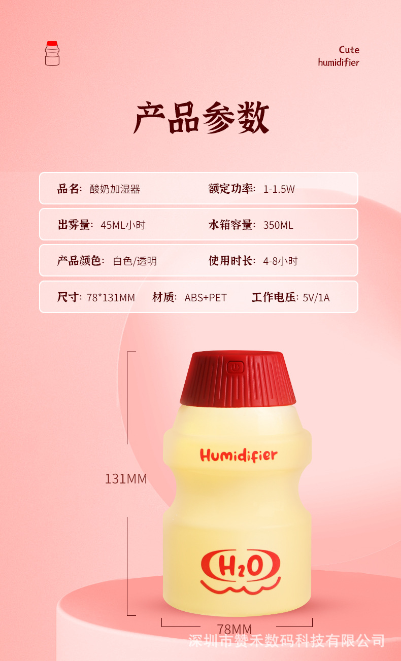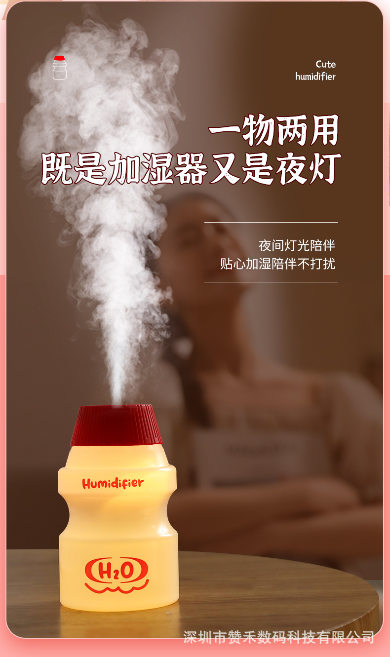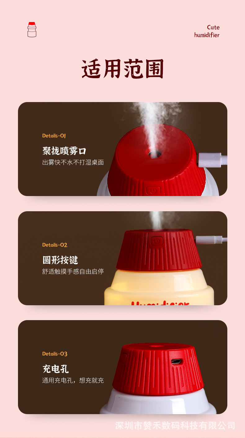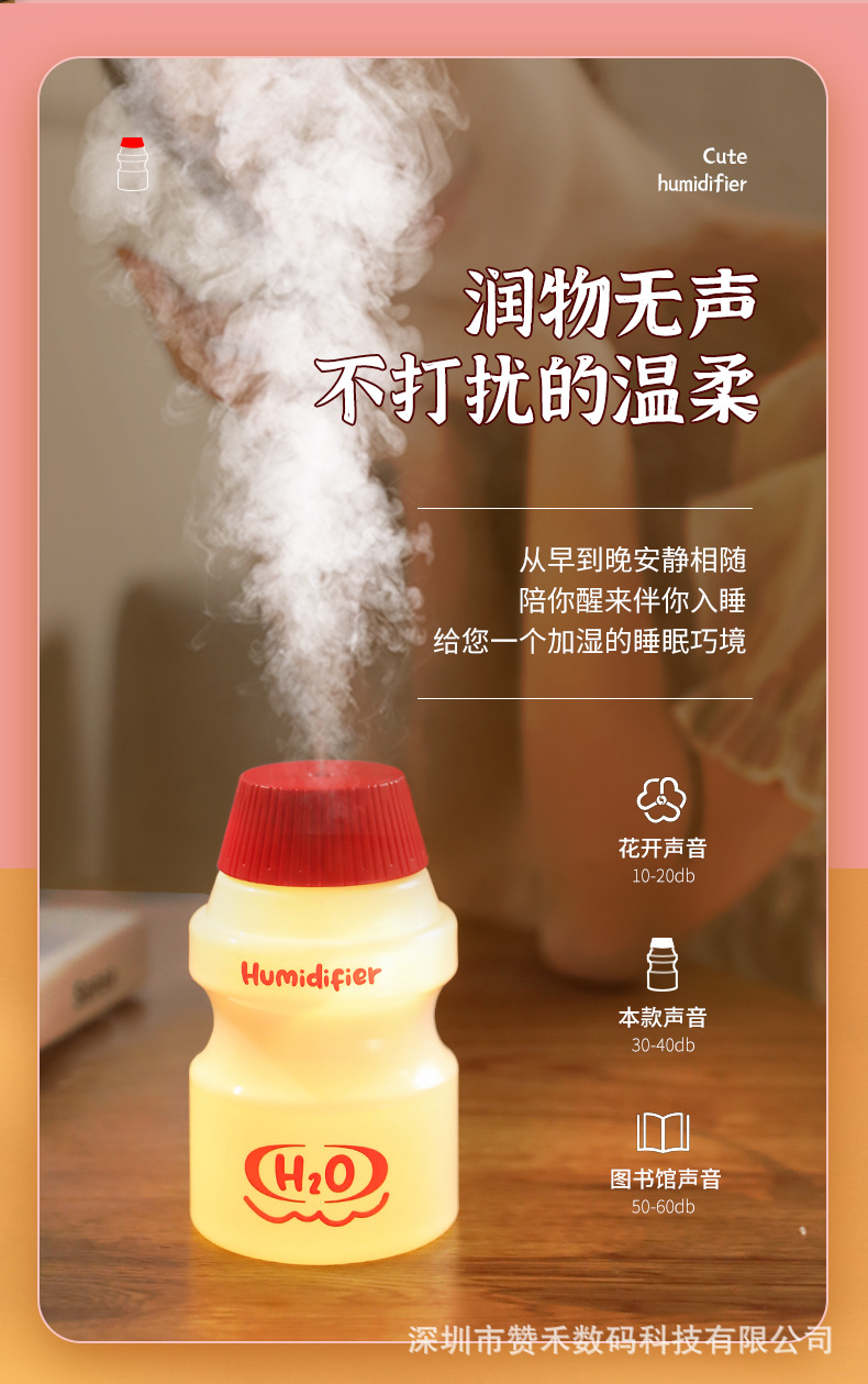 新款酸奶瓶加湿器源头厂家跨境引流小家电USB家用车载静音加湿器