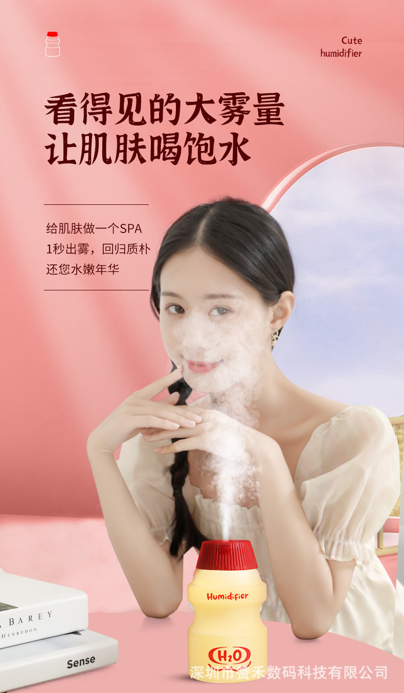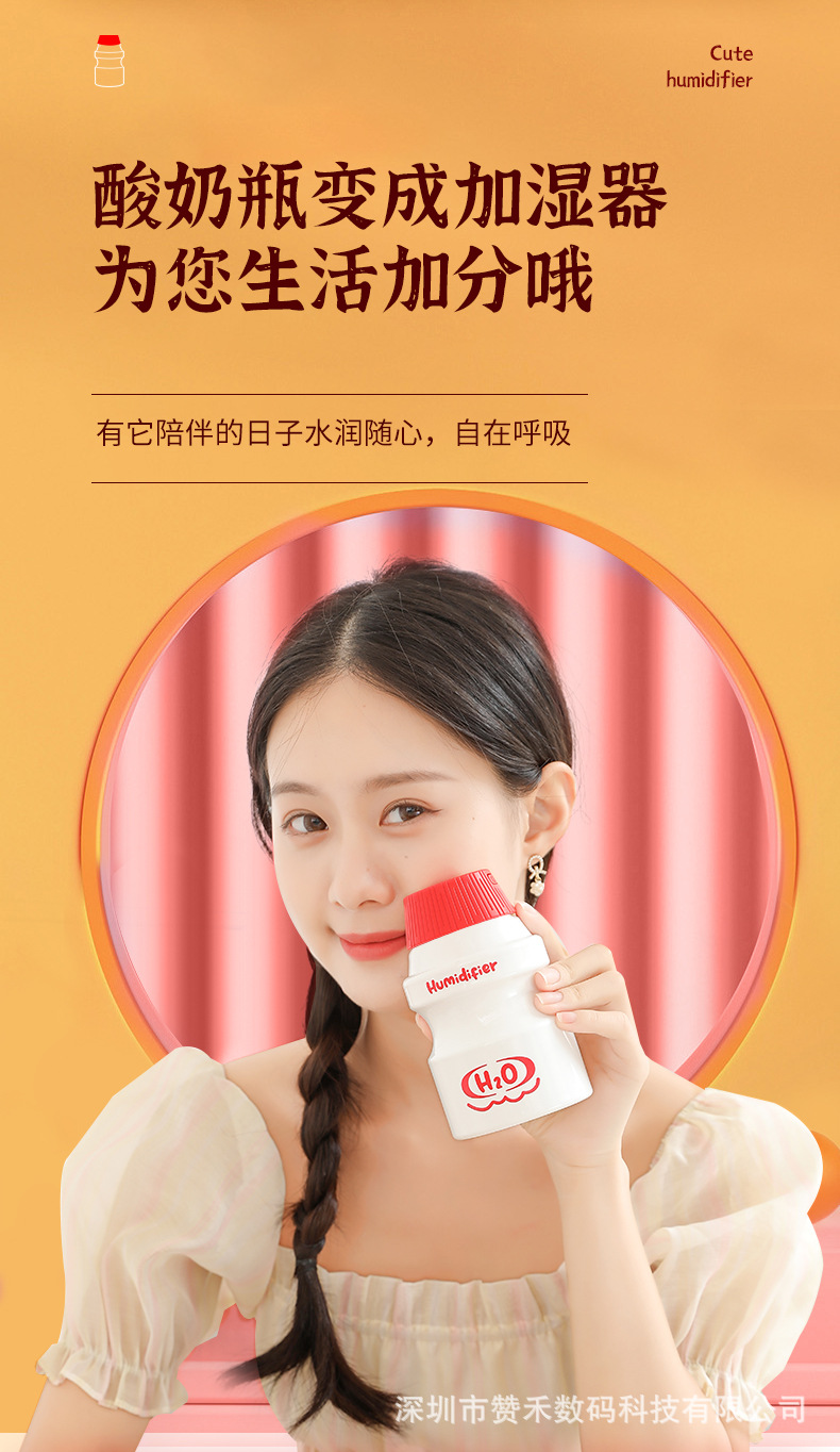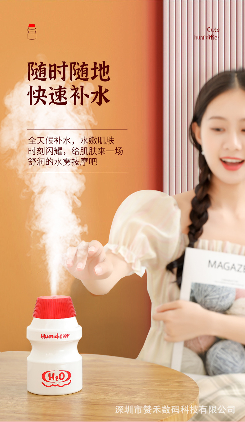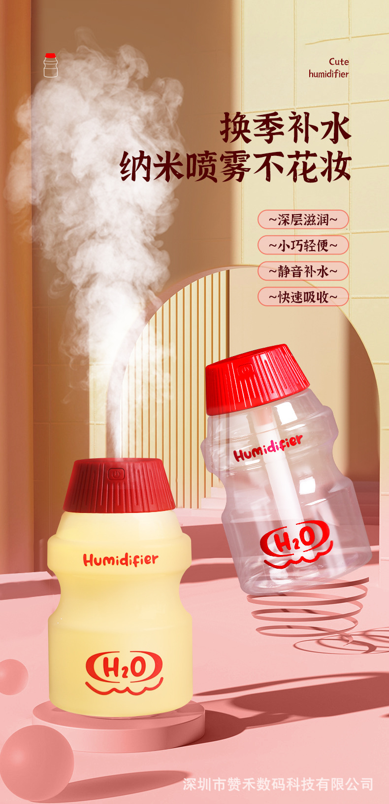 新款酸奶瓶加湿器源头厂家跨境引流小家电USB家用车载静音加湿器