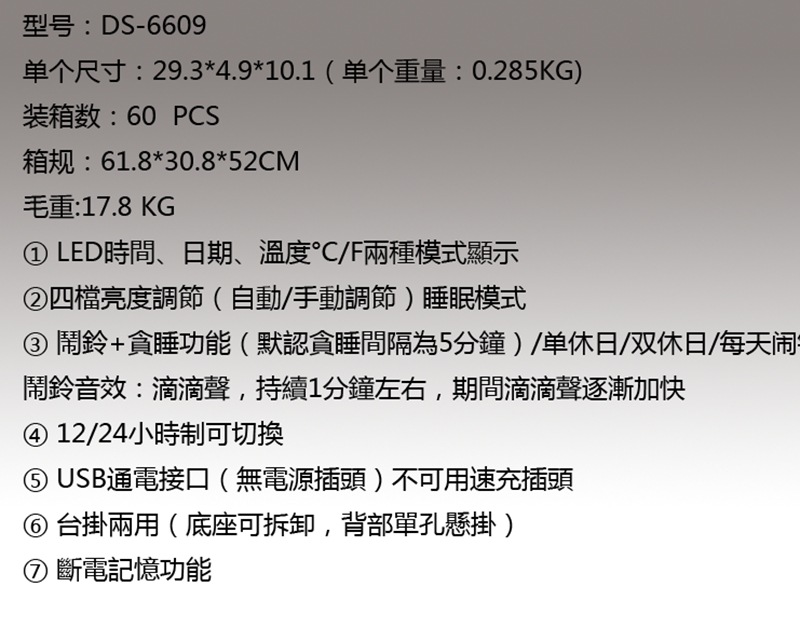 韩版3DLED数字钟客厅LED挂钟电子钟闹钟3D立体钟批发6609