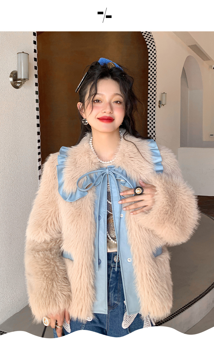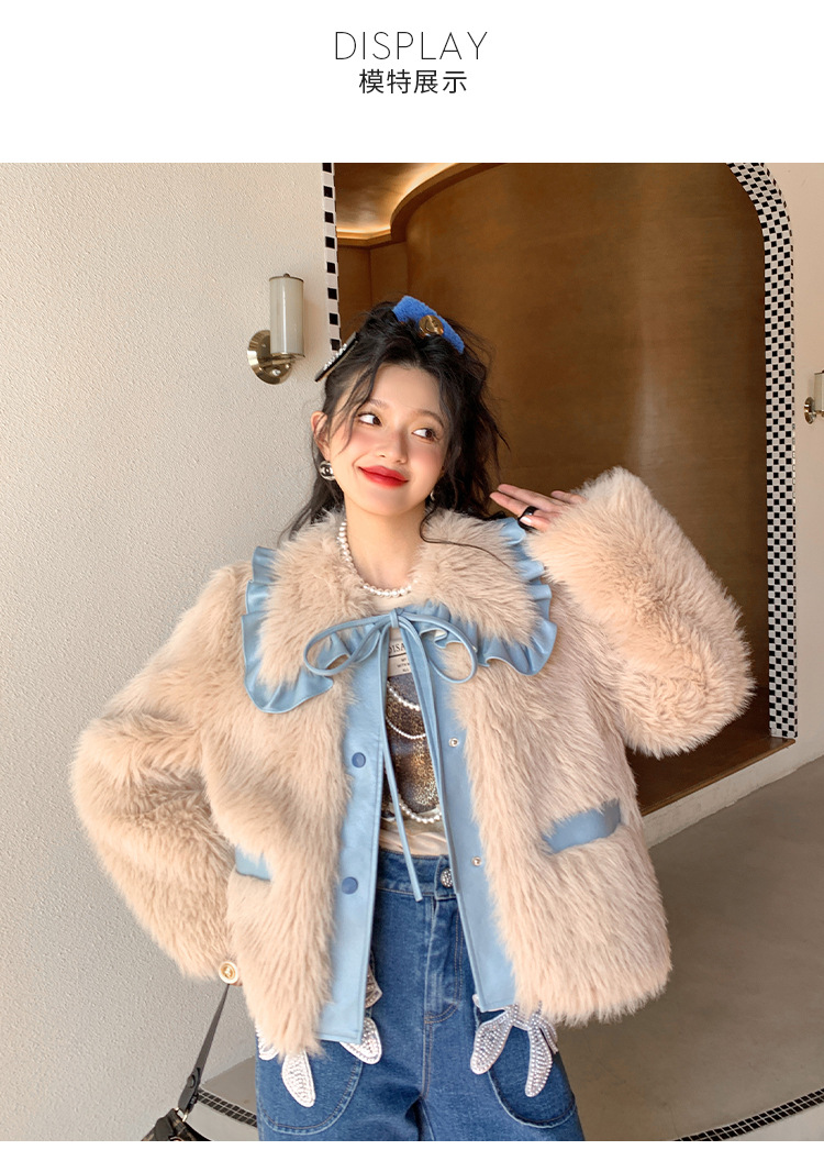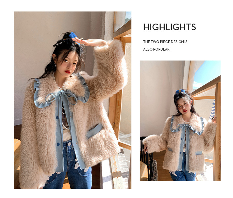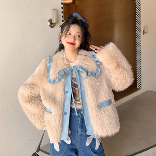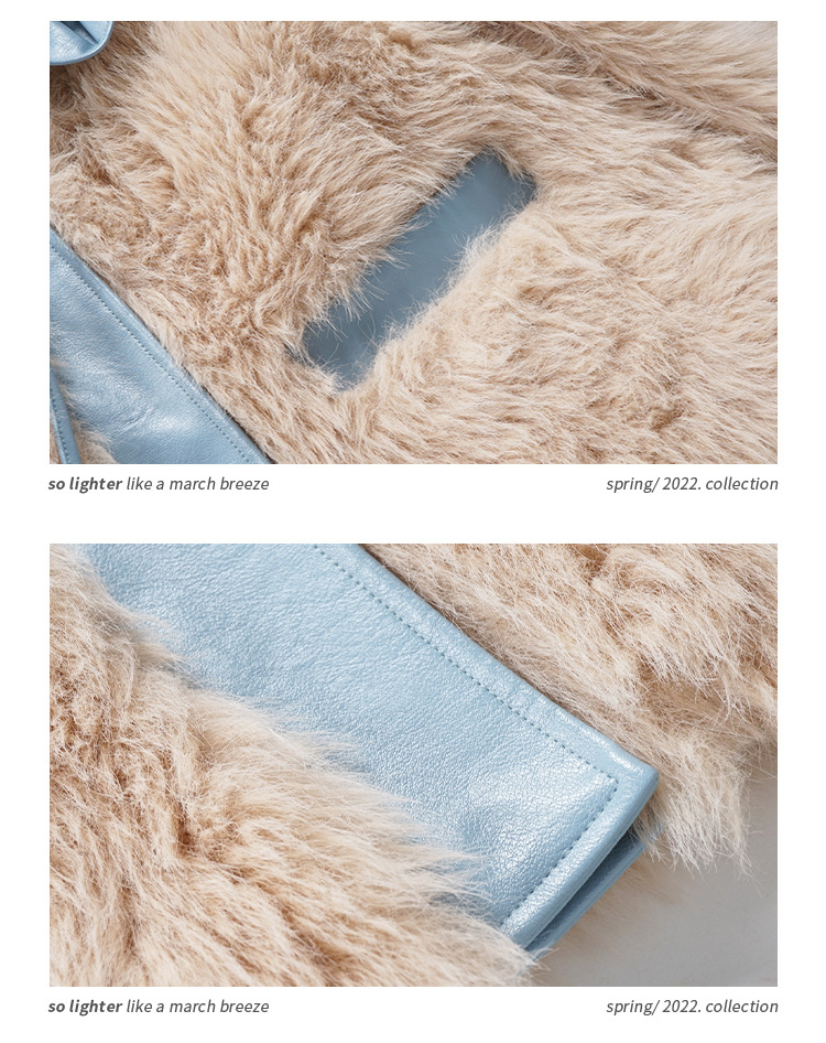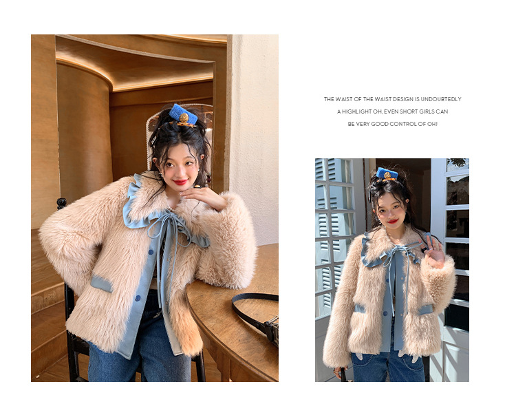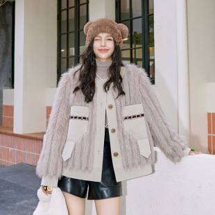 人造羊羔毛外套冬季保暖毛毛女士短外套PU拼接羊羔绒加厚上衣批发