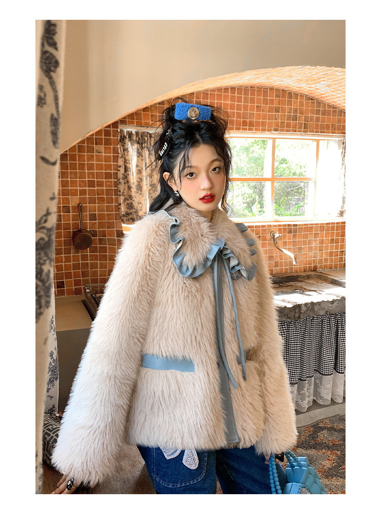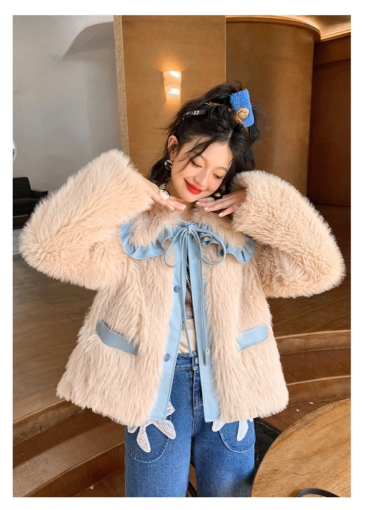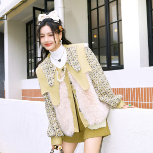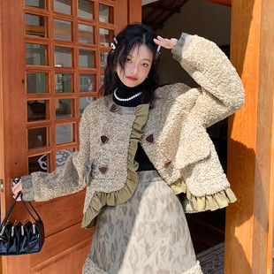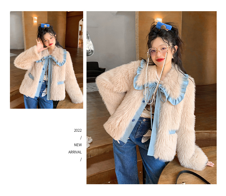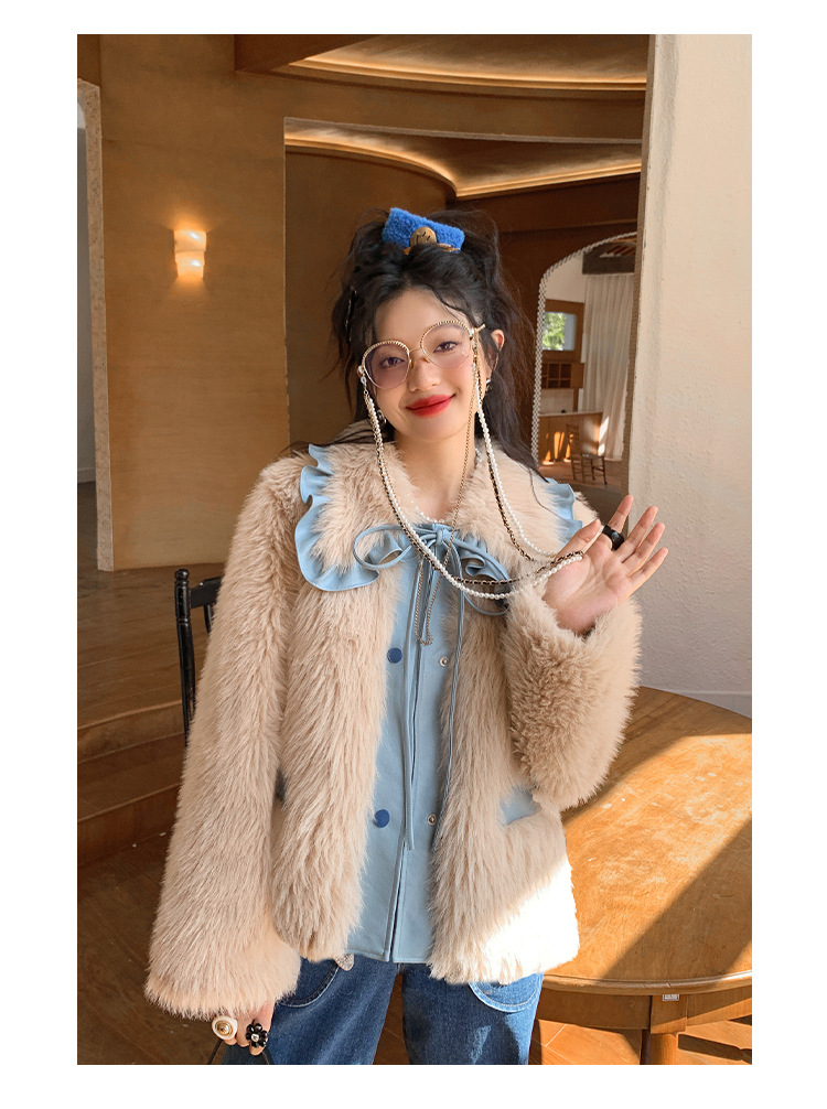 人造羊羔毛外套冬季保暖毛毛女士短外套PU拼接羊羔绒加厚上衣批发