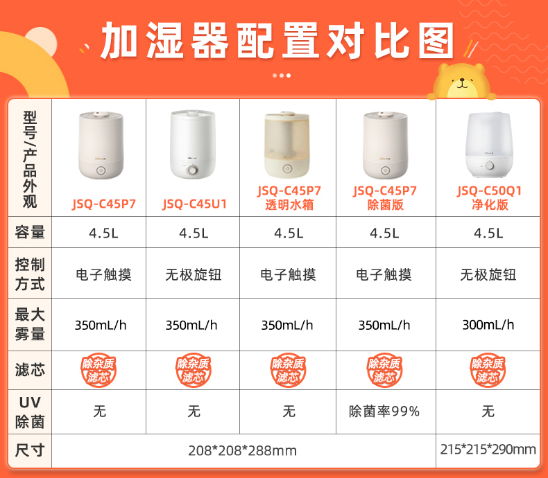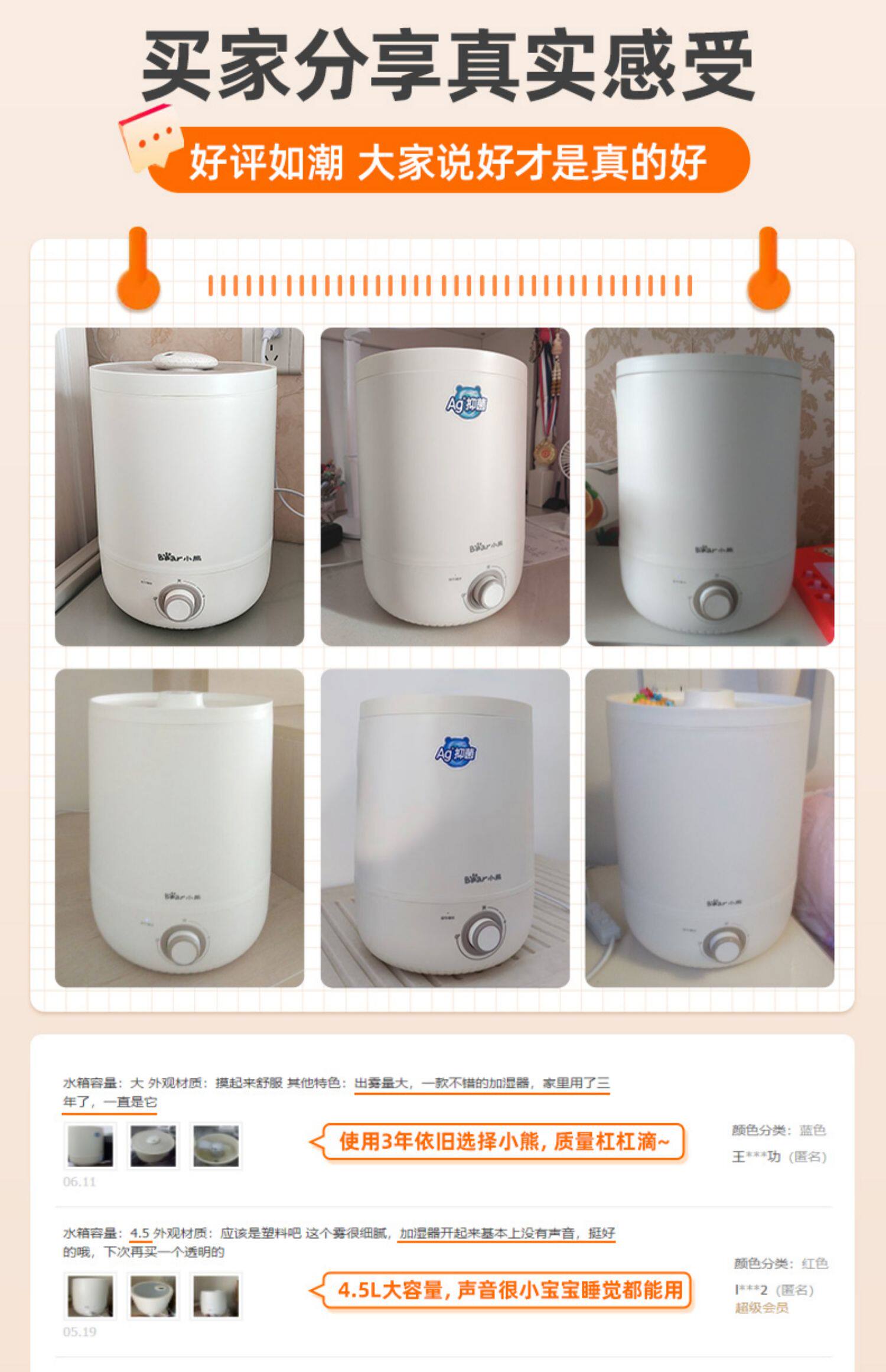 小熊加湿器家用静音卧室内孕妇婴儿净化空气小型香薰大雾量喷雾器