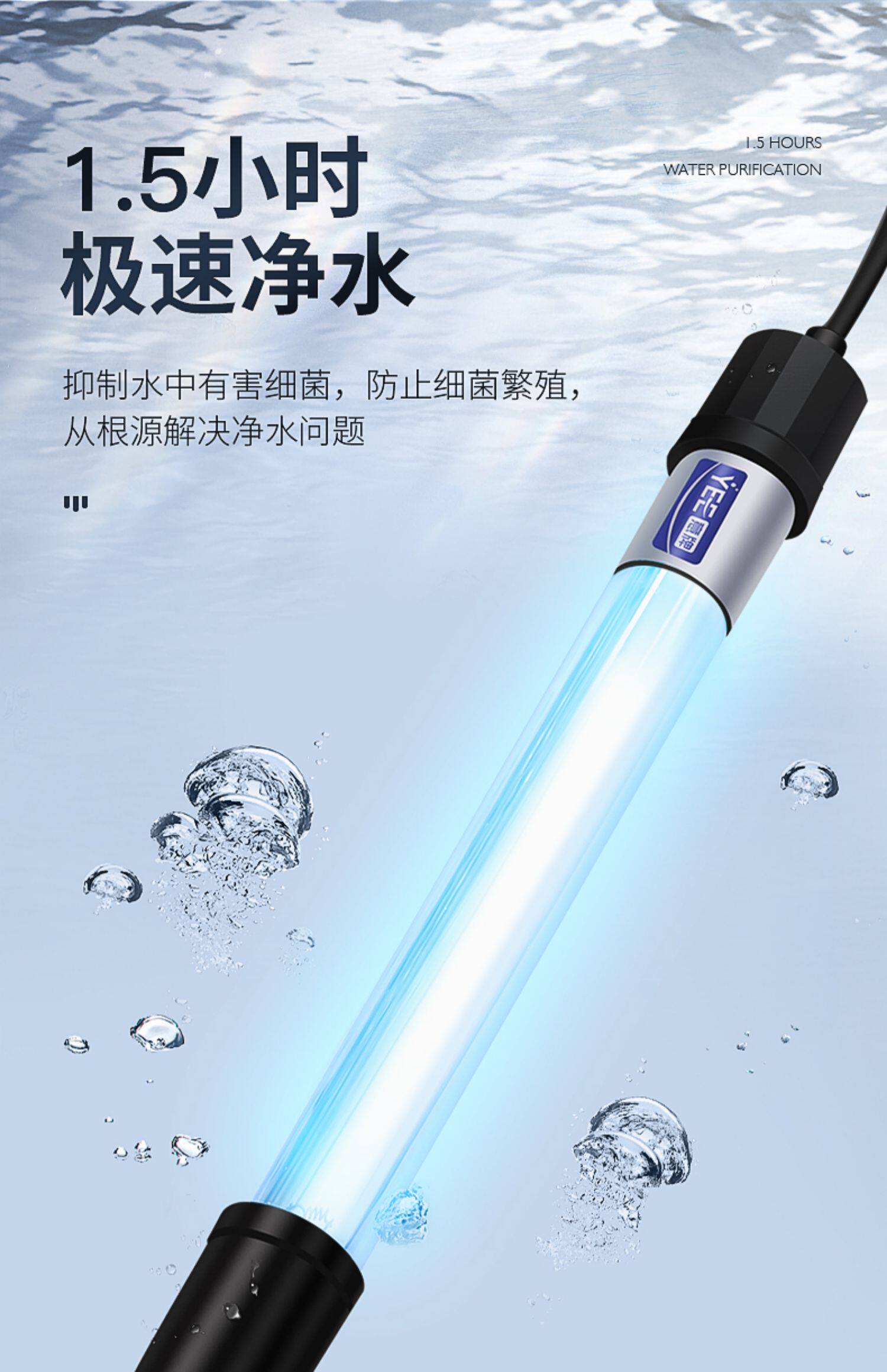 鱼缸UV杀菌灯紫外线鱼池净水除藻潜水灭菌灯水族消毒灯鱼缸杀菌灯