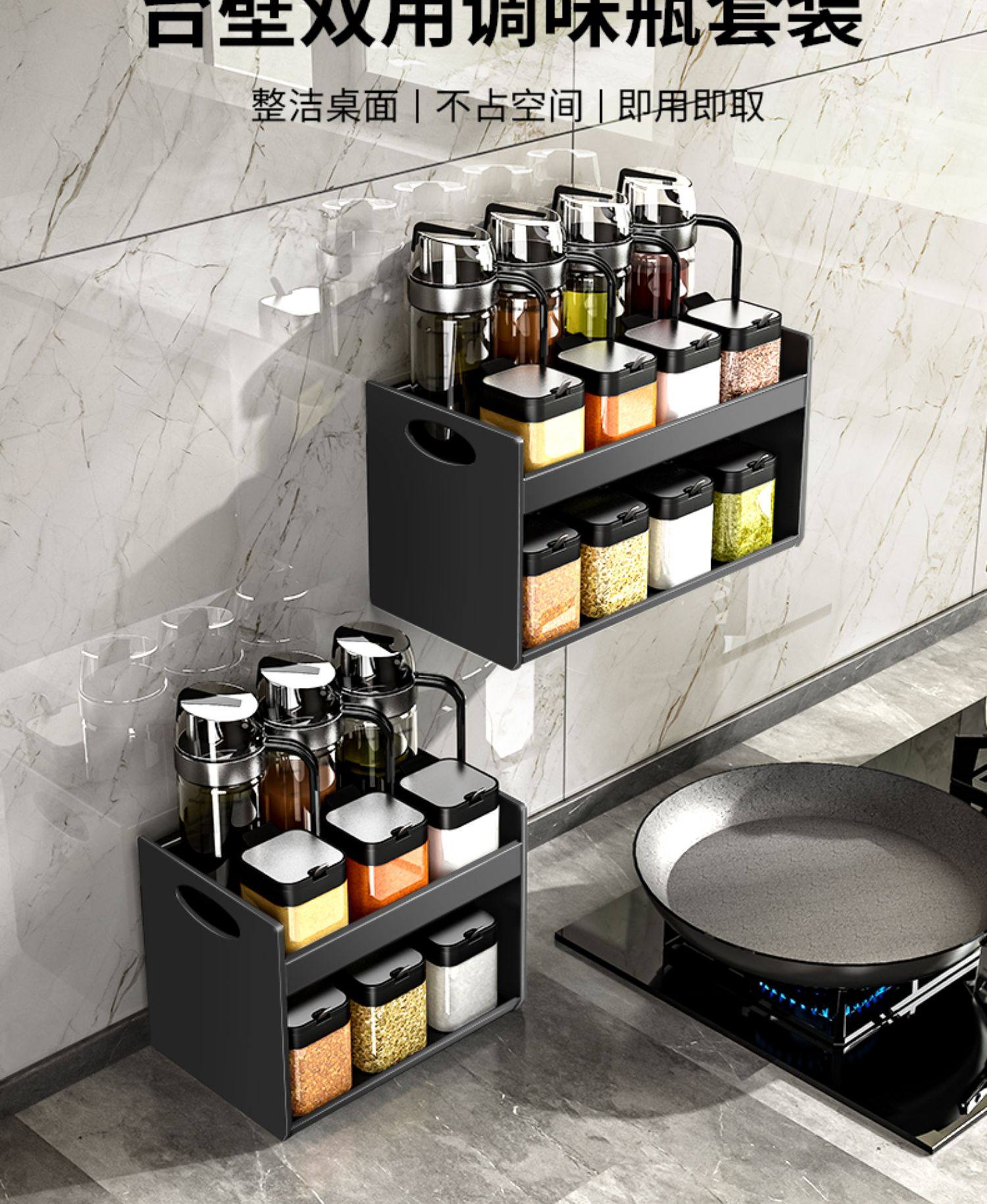 厨房盐调味罐收纳盒调料品置物架用品家用壁挂式佐料油盐酱醋瓶子